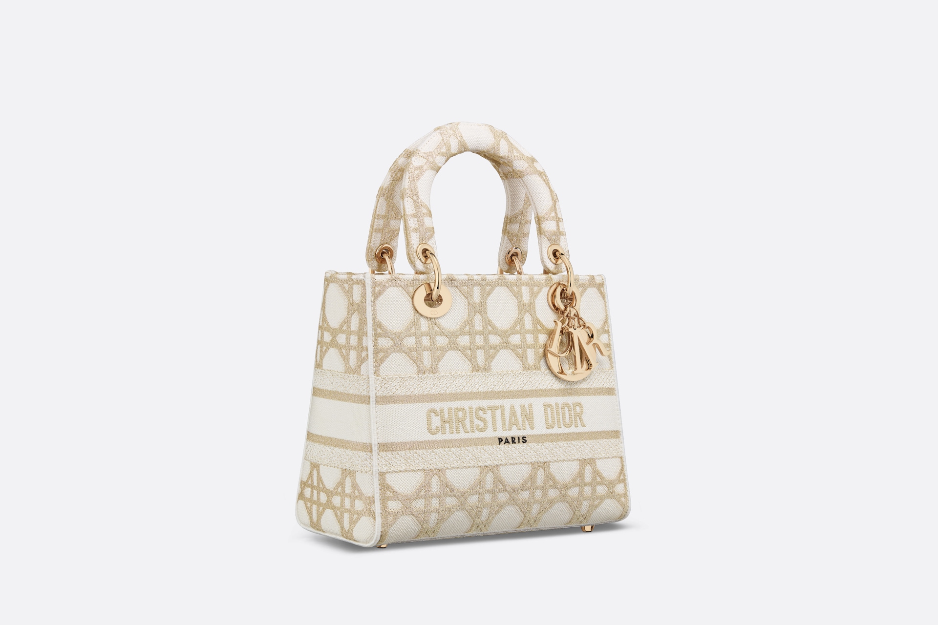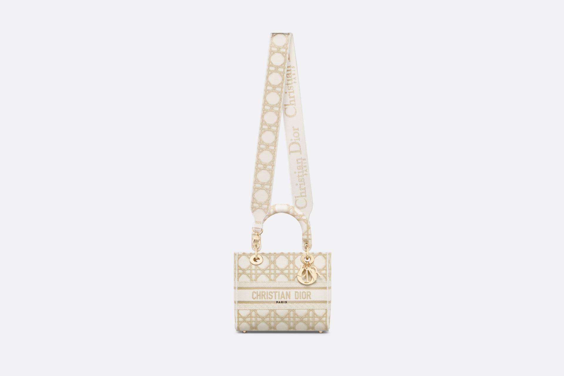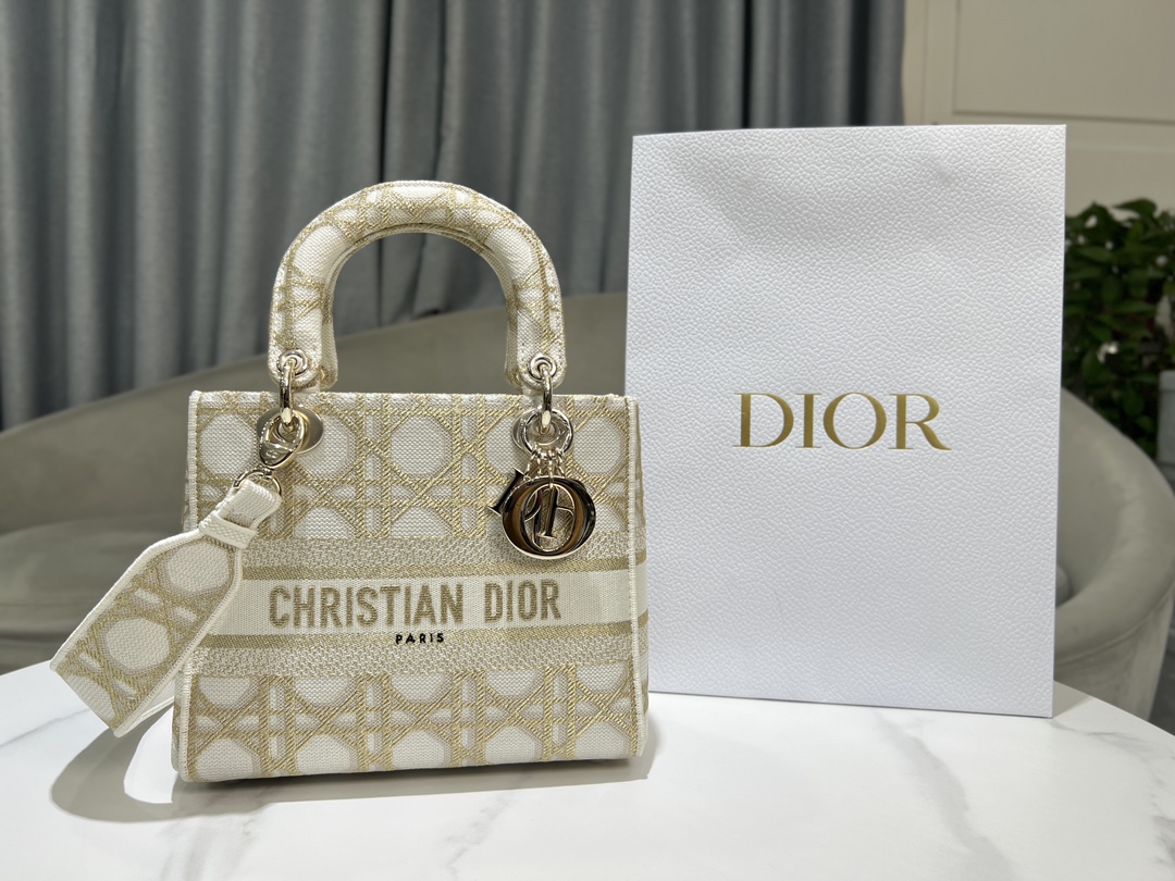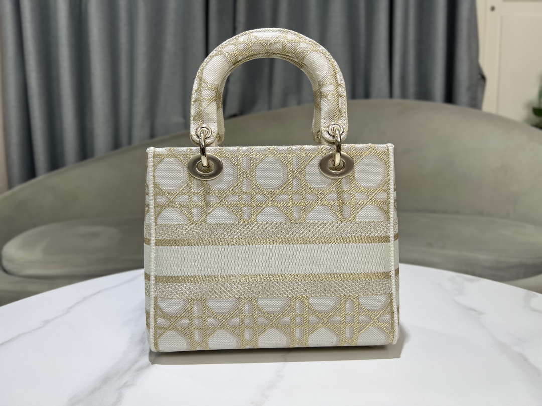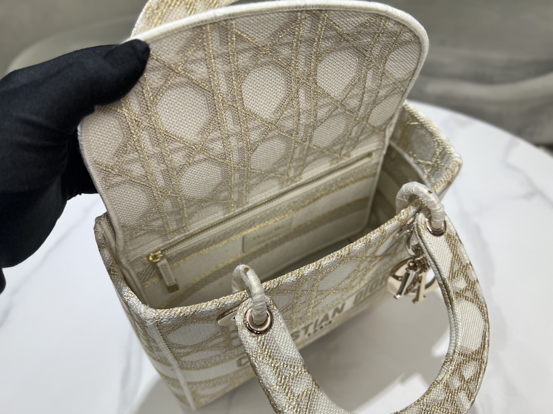 디올 레이디 D-Lite 화이트 골드 매크로까나쥬 자수 미디엄 백