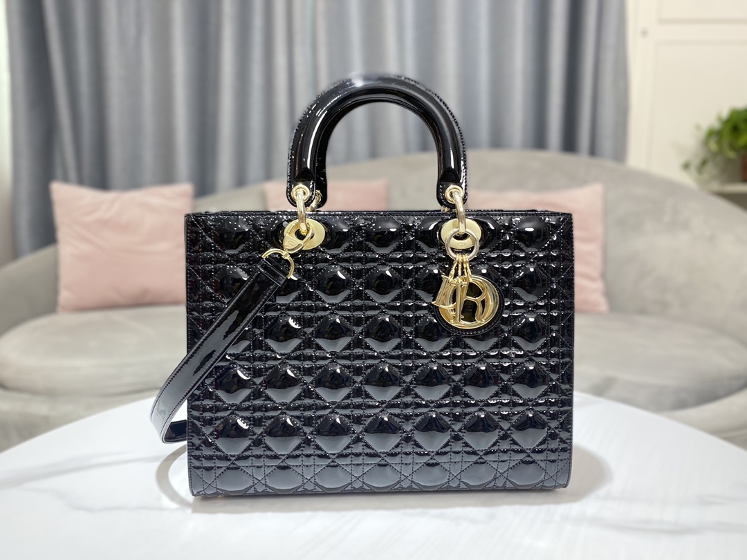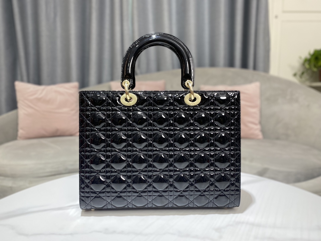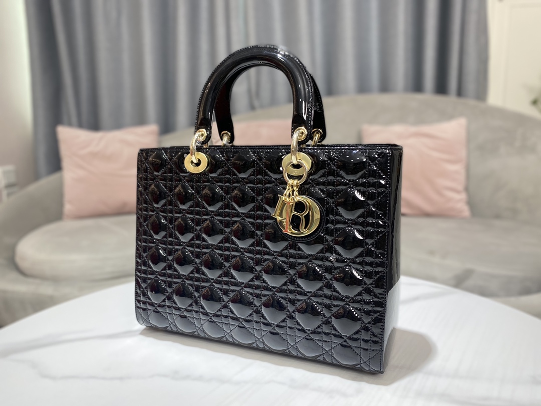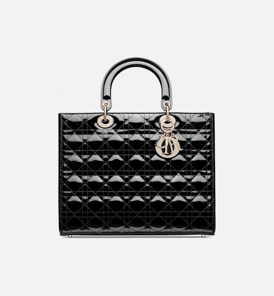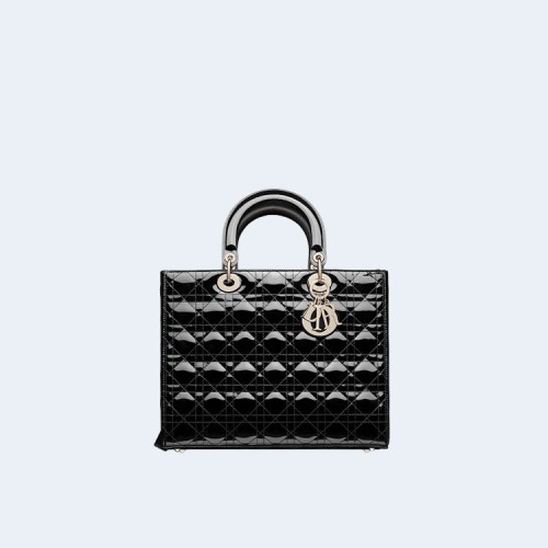 디올 레이디 라지 백 샤이니 블랙