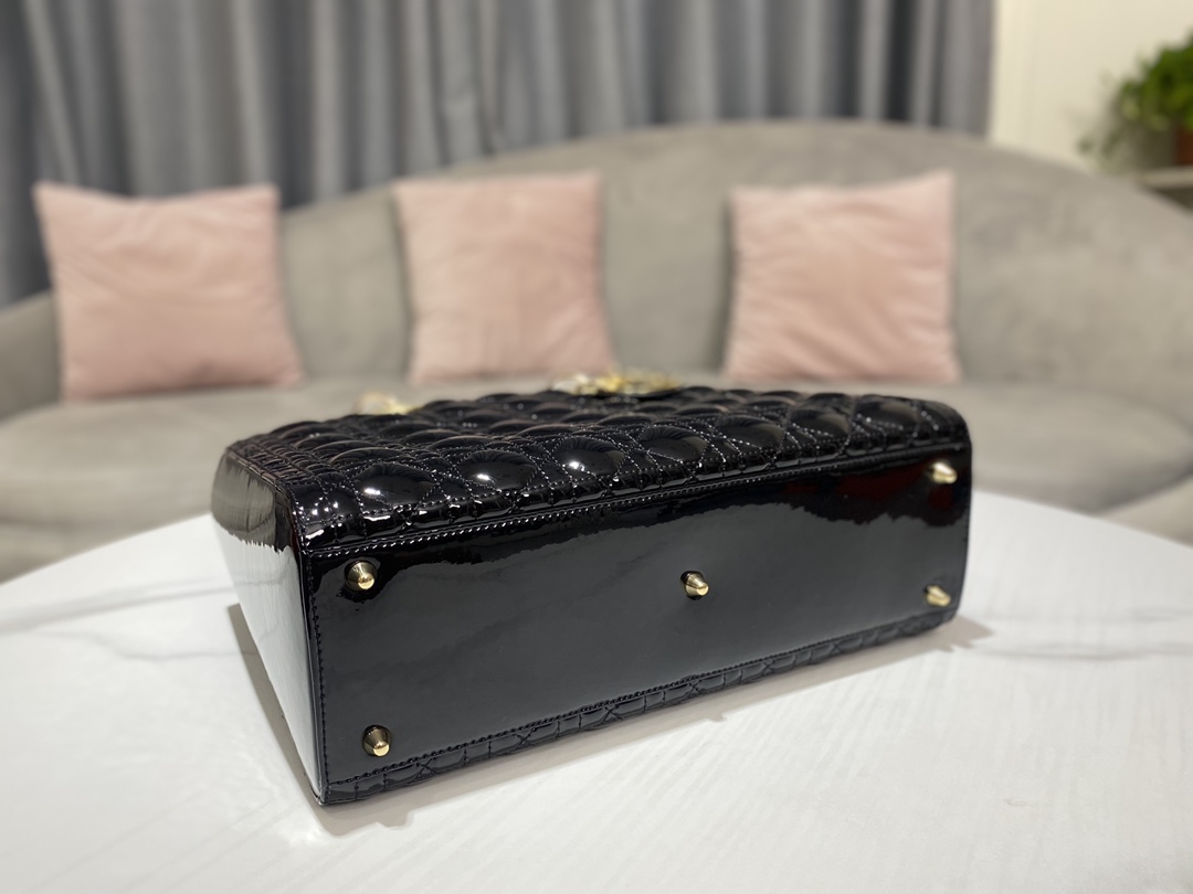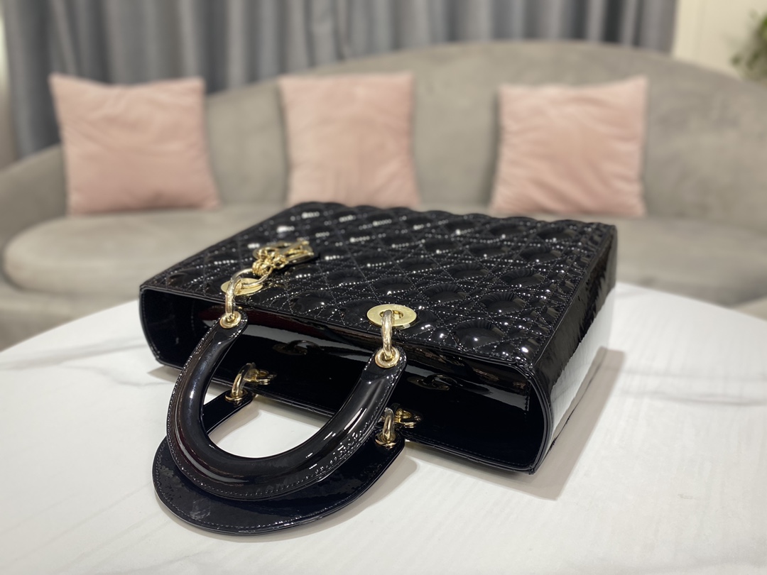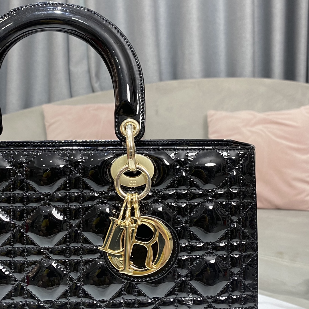 디올 레이디 라지 백 샤이니 블랙