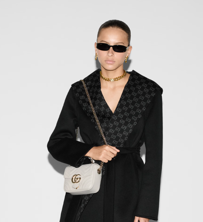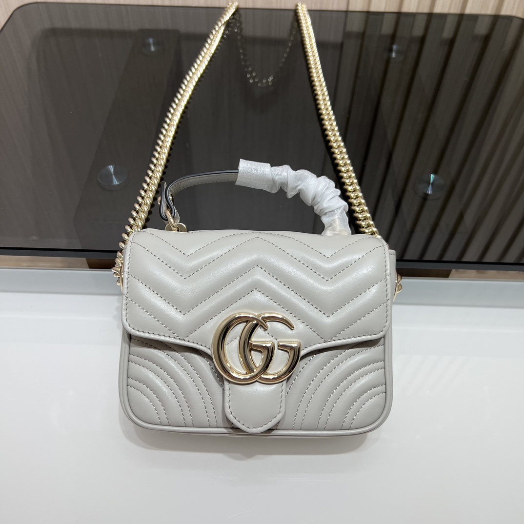 구찌 GG 마몽 미니 탑 핸들백 라이트그레이