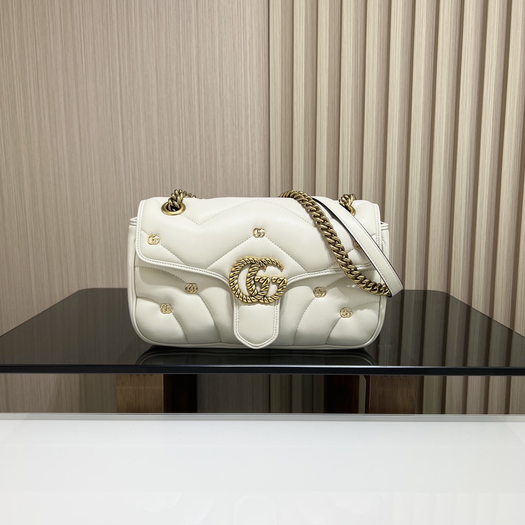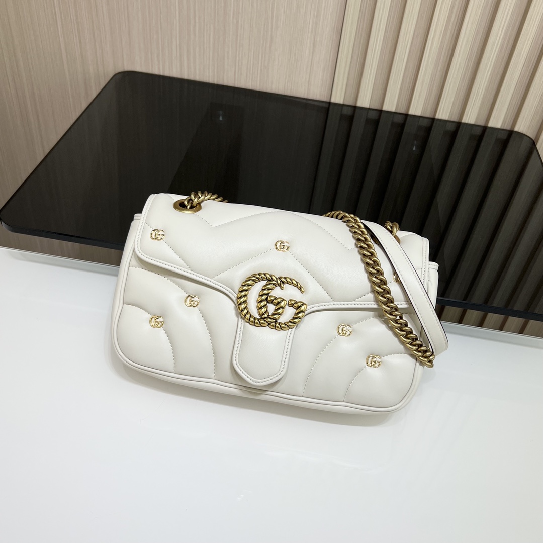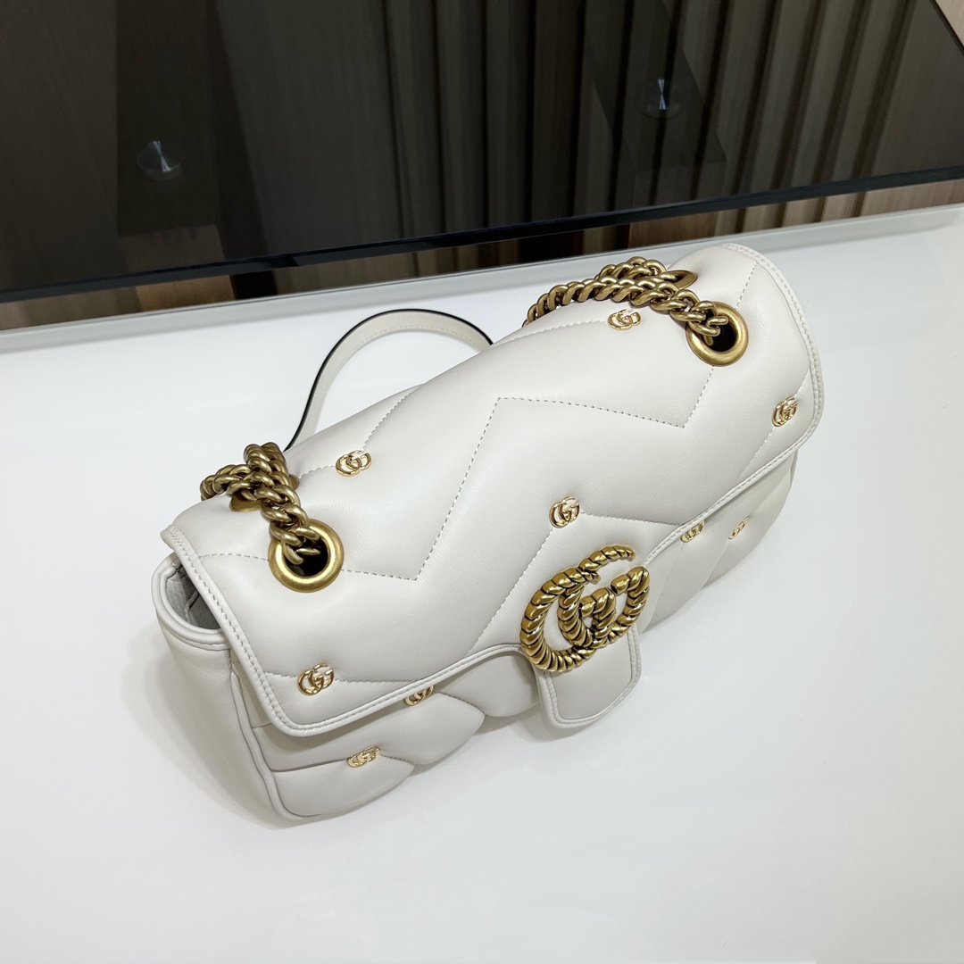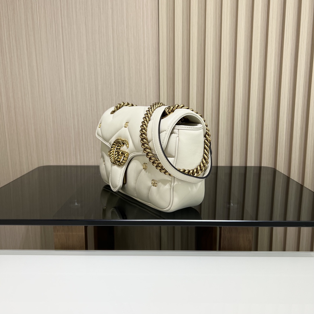 구찌 GG 마몽 마틀라세 스몰 숄더백 화이트