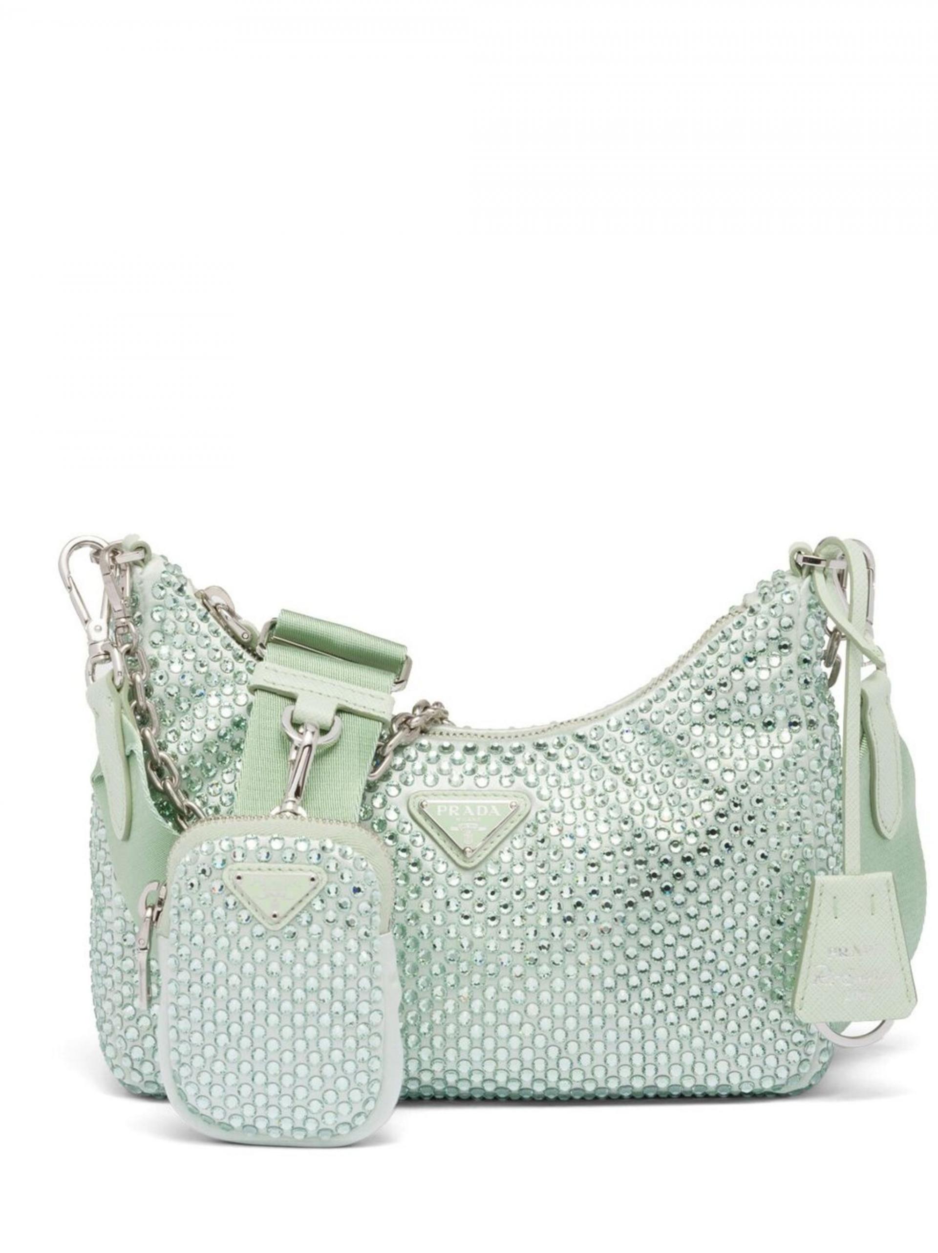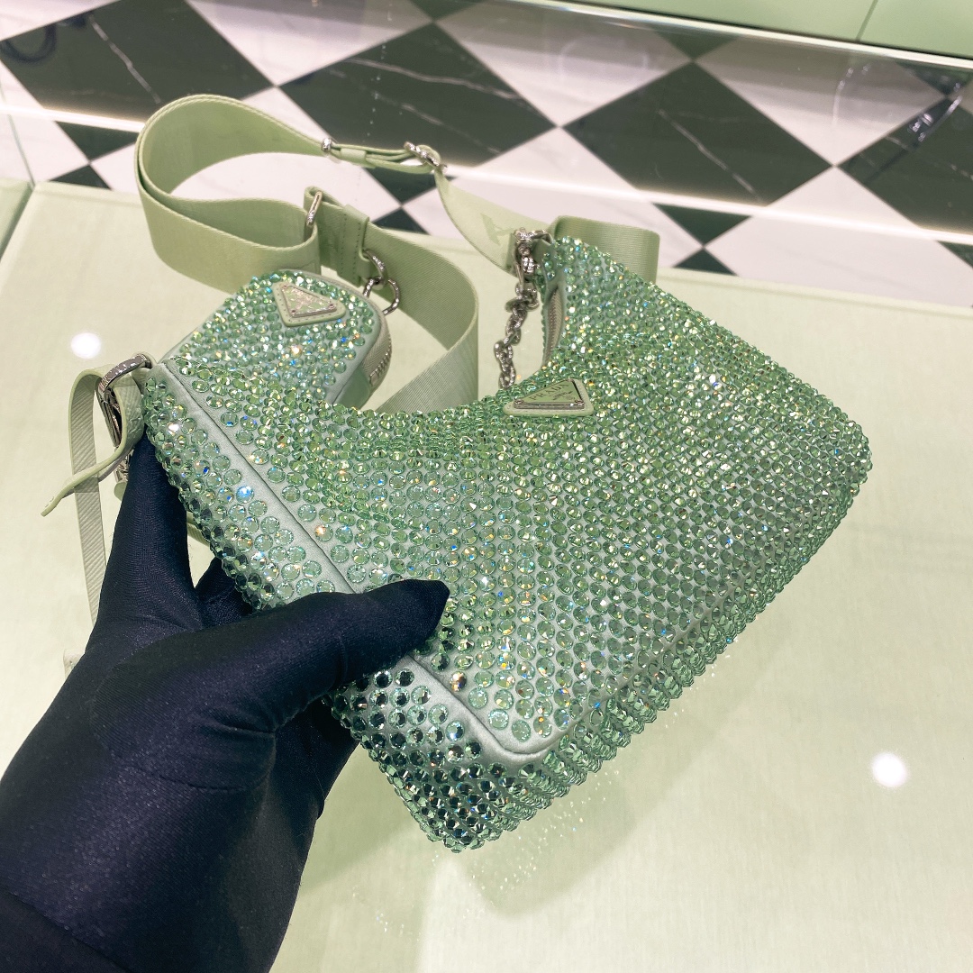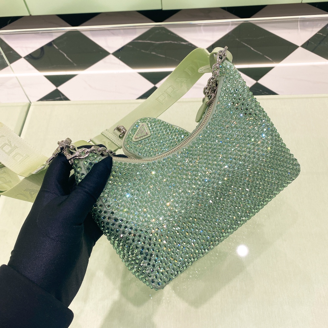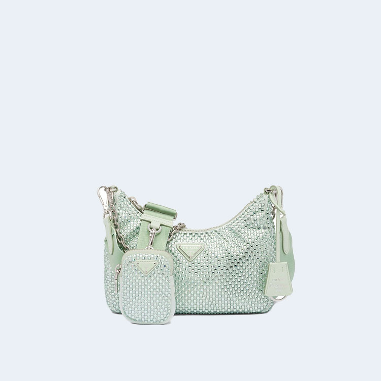 프라다 리에디션 2005 리나일론 크리스탈 숄더백 아쿠아