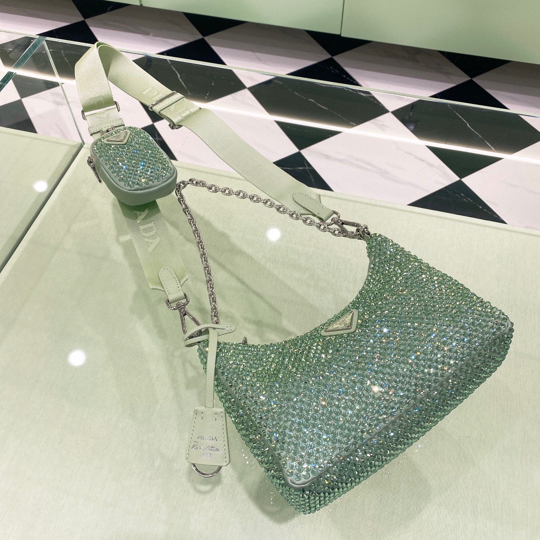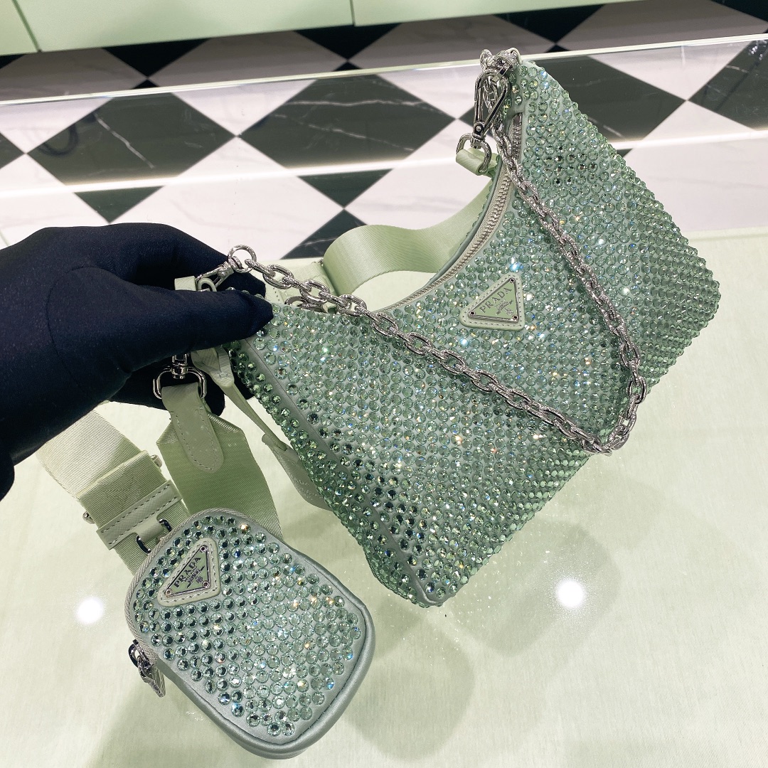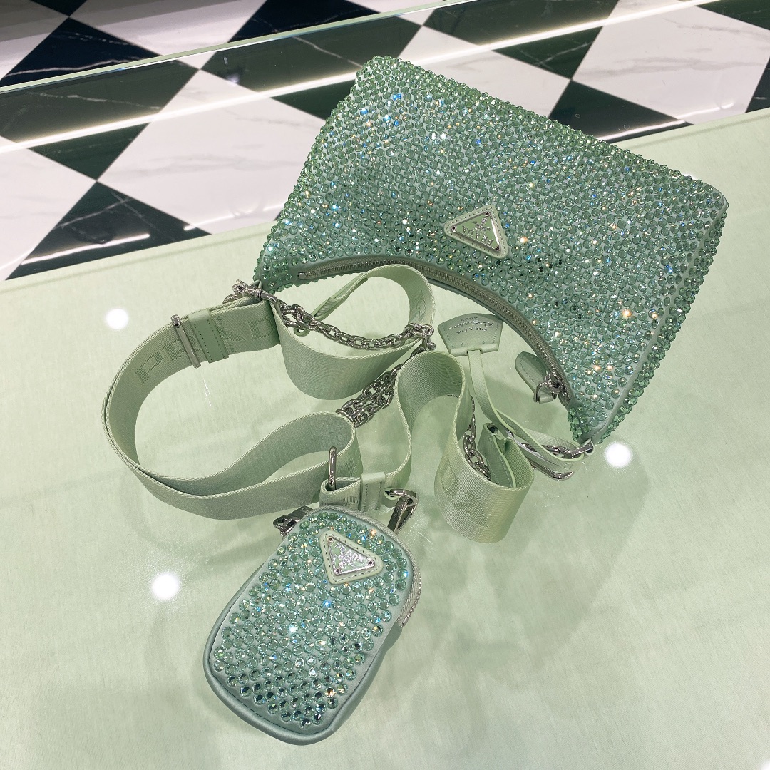 프라다 리에디션 2005 리나일론 크리스탈 숄더백 아쿠아