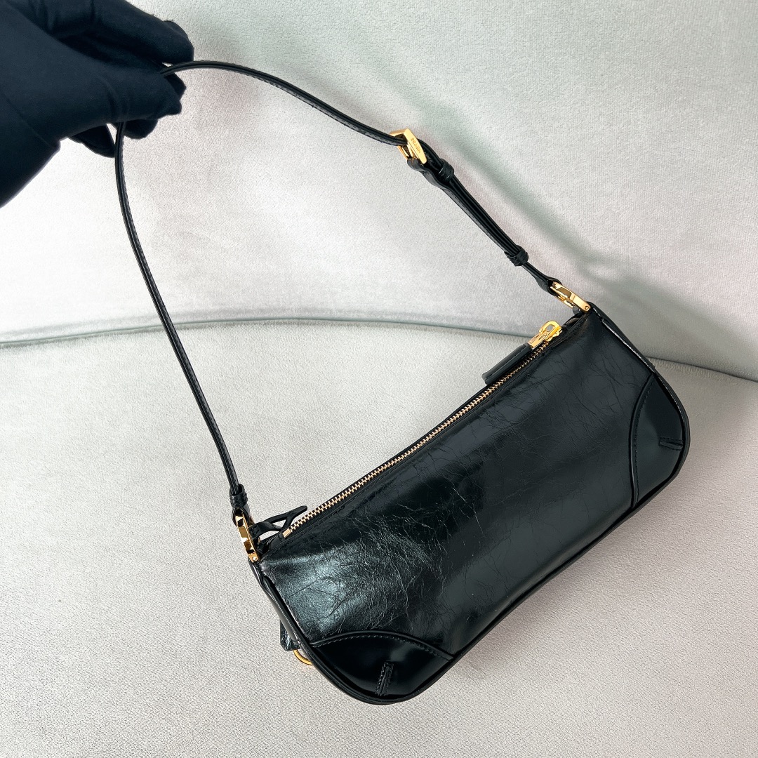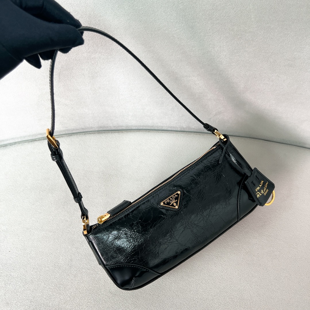 프라다 리에디션 2002 브러쉬드 레더 숄더백 블랙