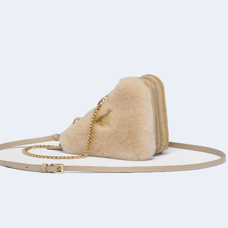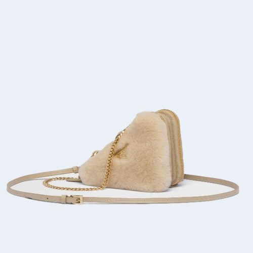프라다 트라이앵글 시어링 레더 미니 파우치 베이지