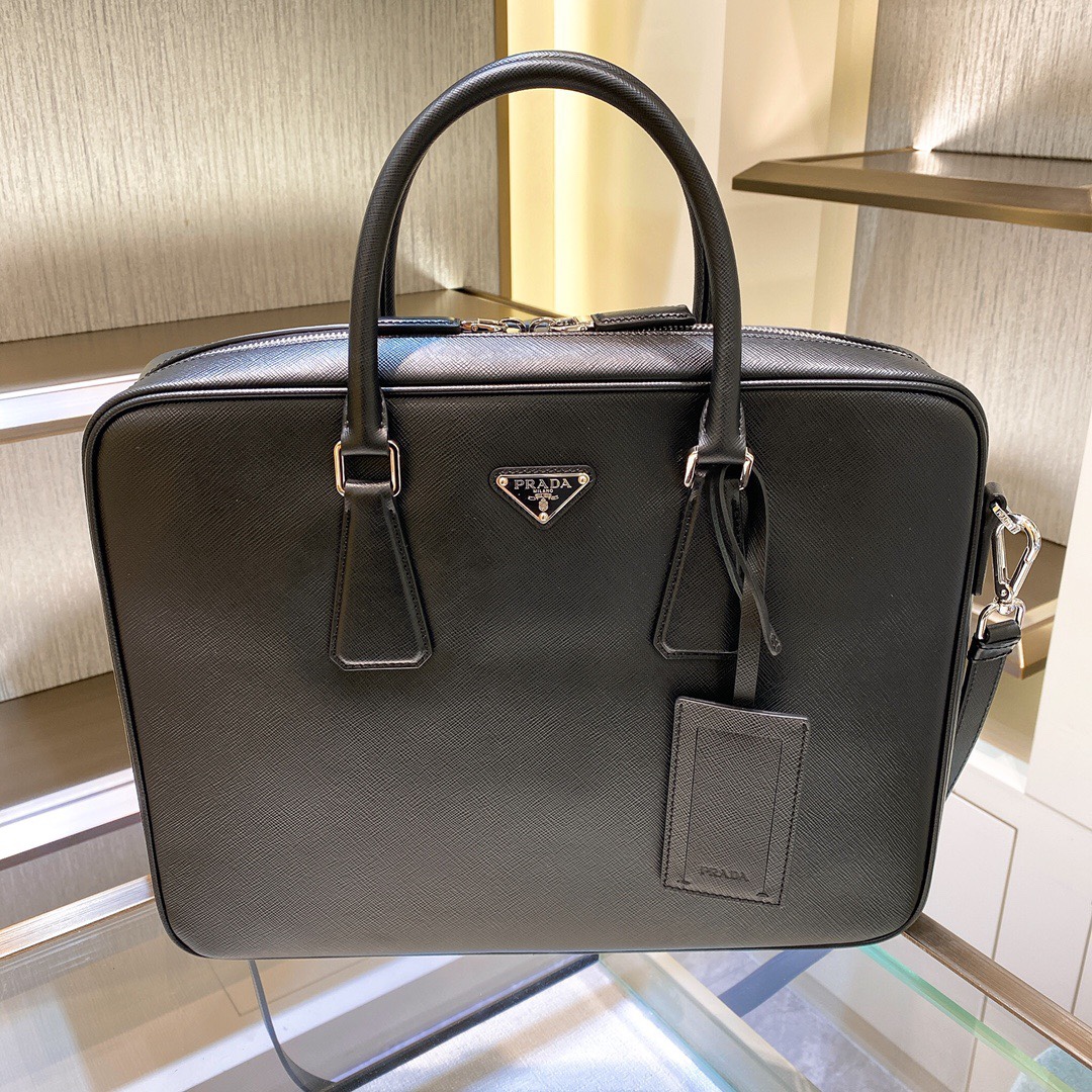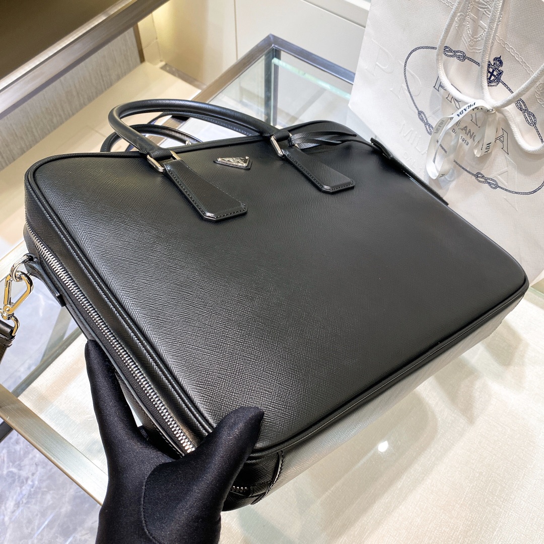 프라다 사피아노 삼각로고 레더 투지퍼 브리프케이스