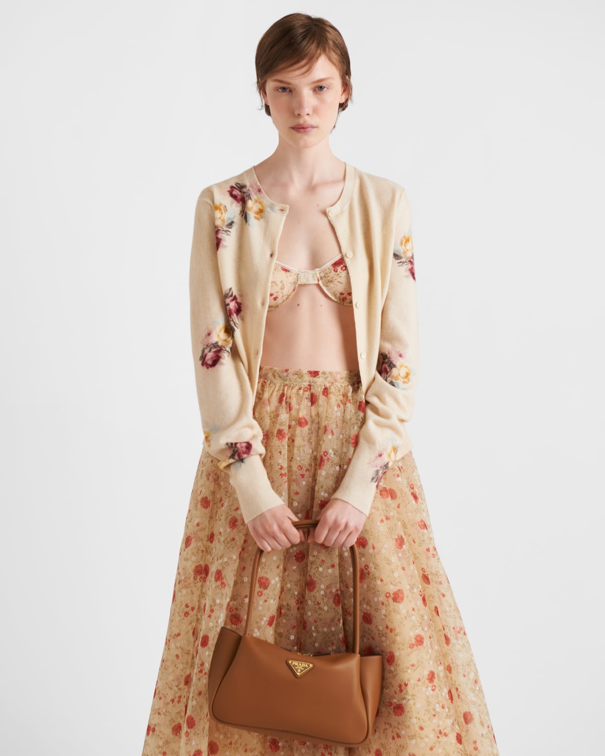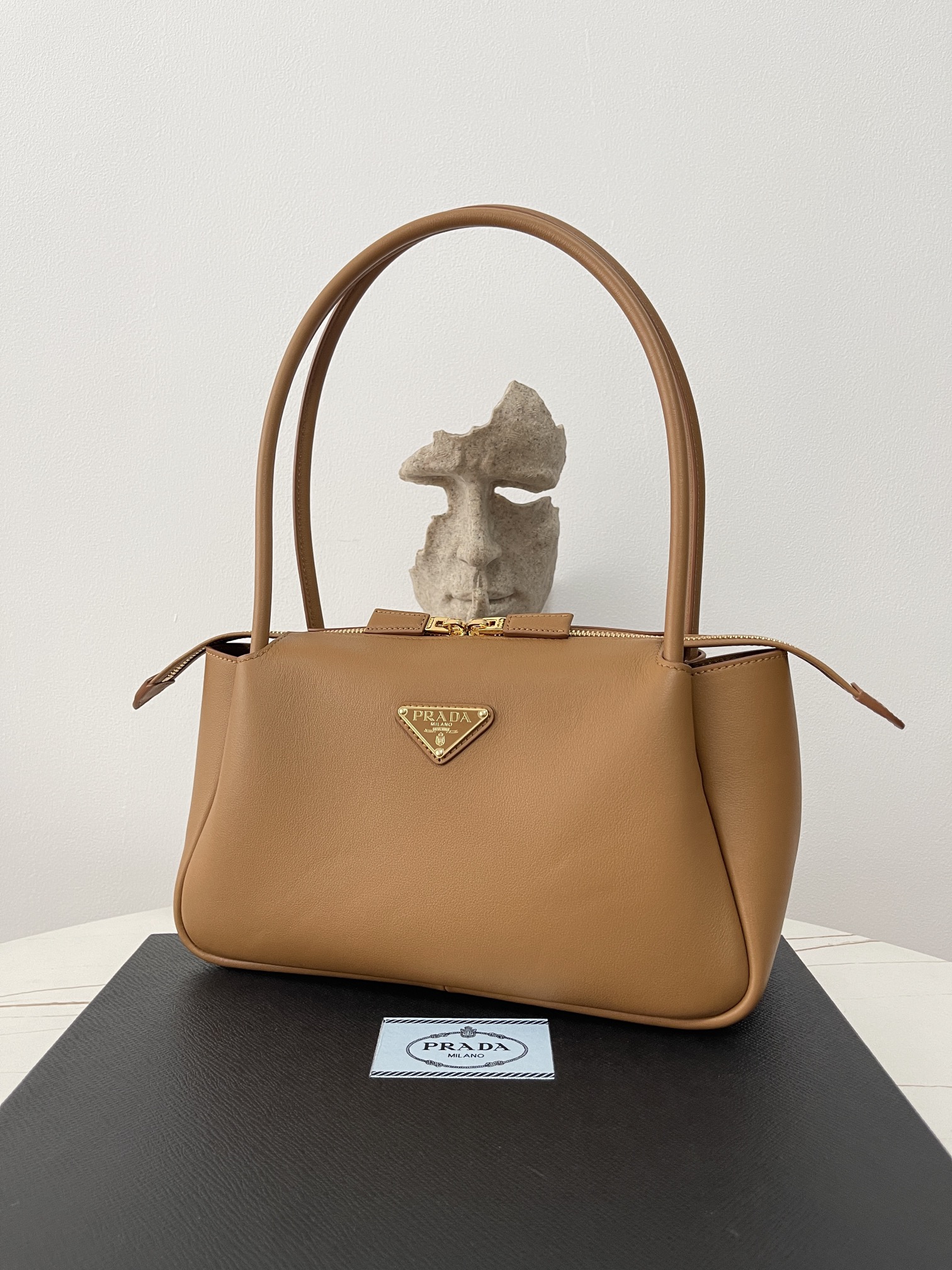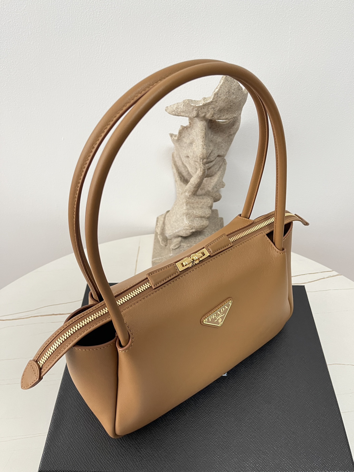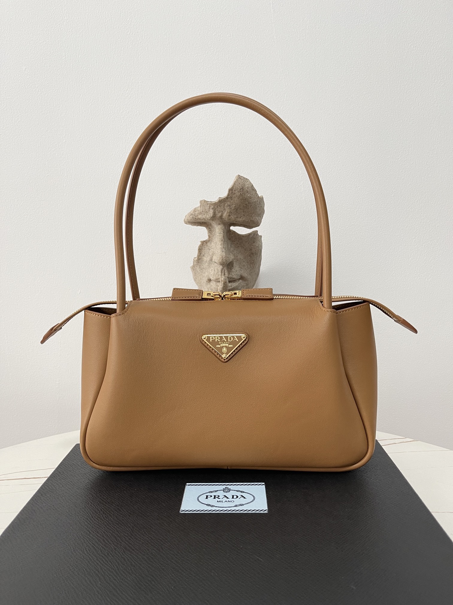 프라다 미디엄 브러쉬드 레더 핸드백 블랙
