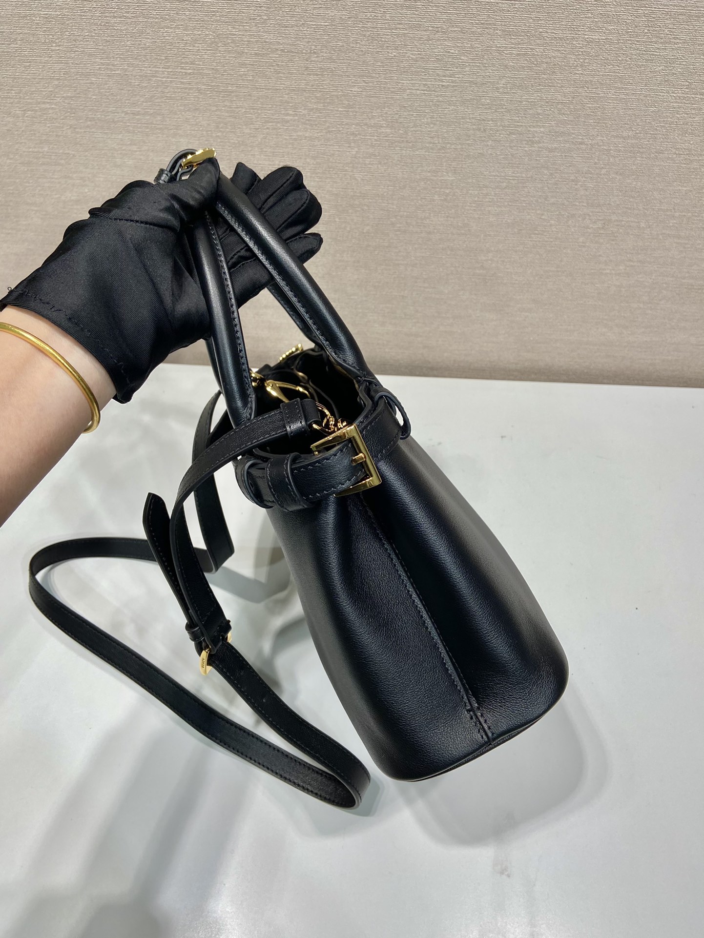 프라다 버클 스몰 레더 더블벨트 핸드백 블랙