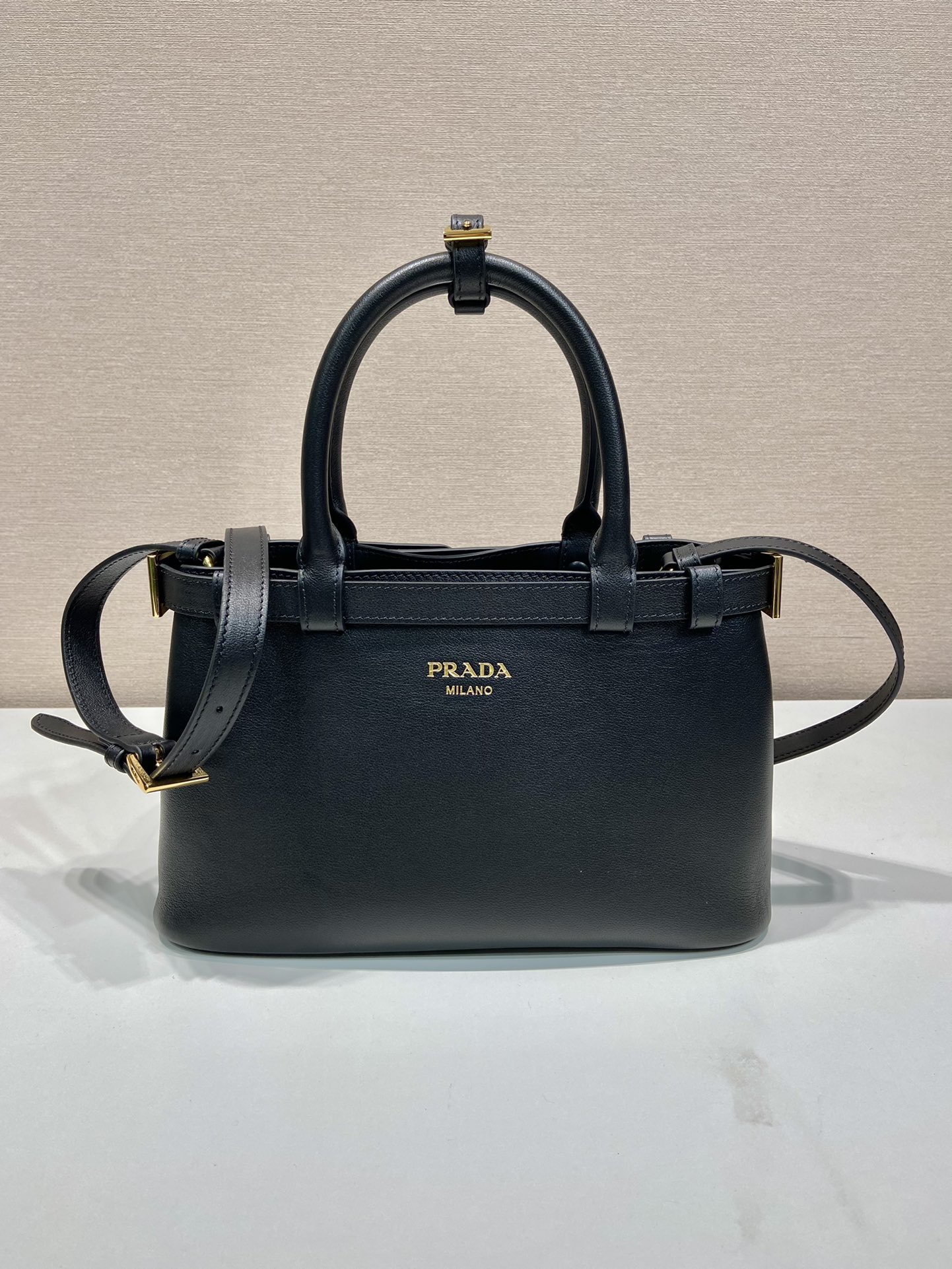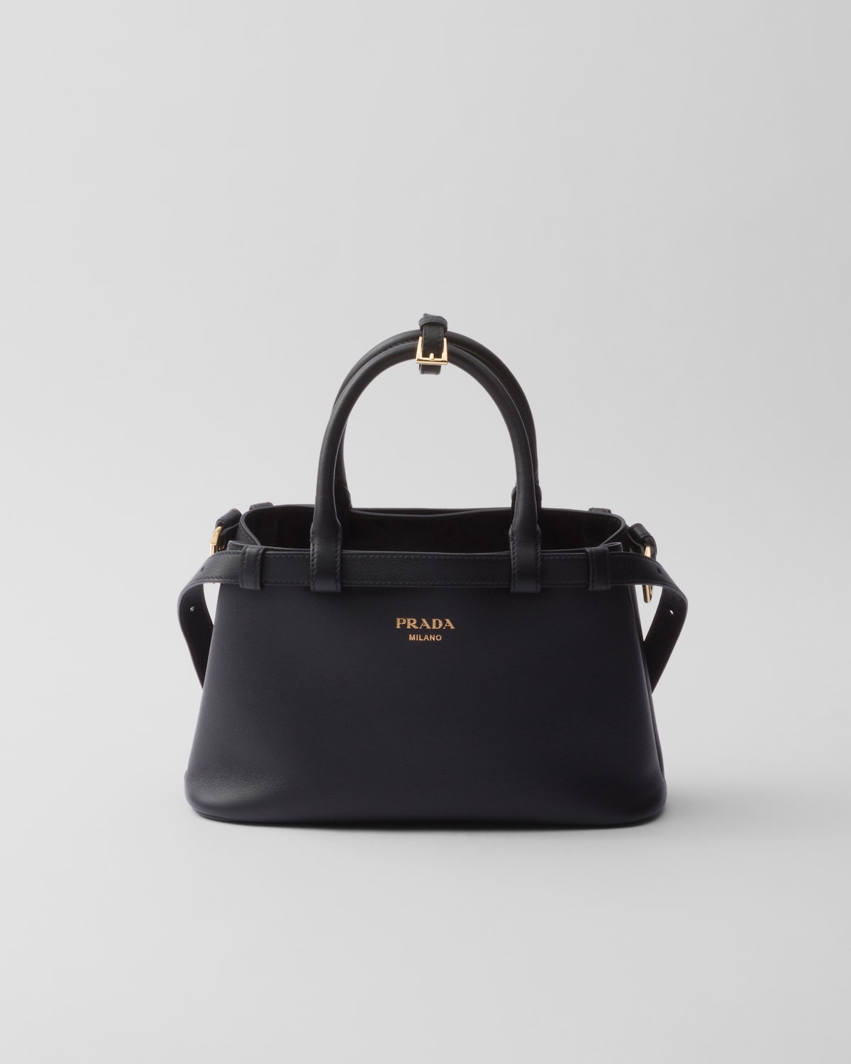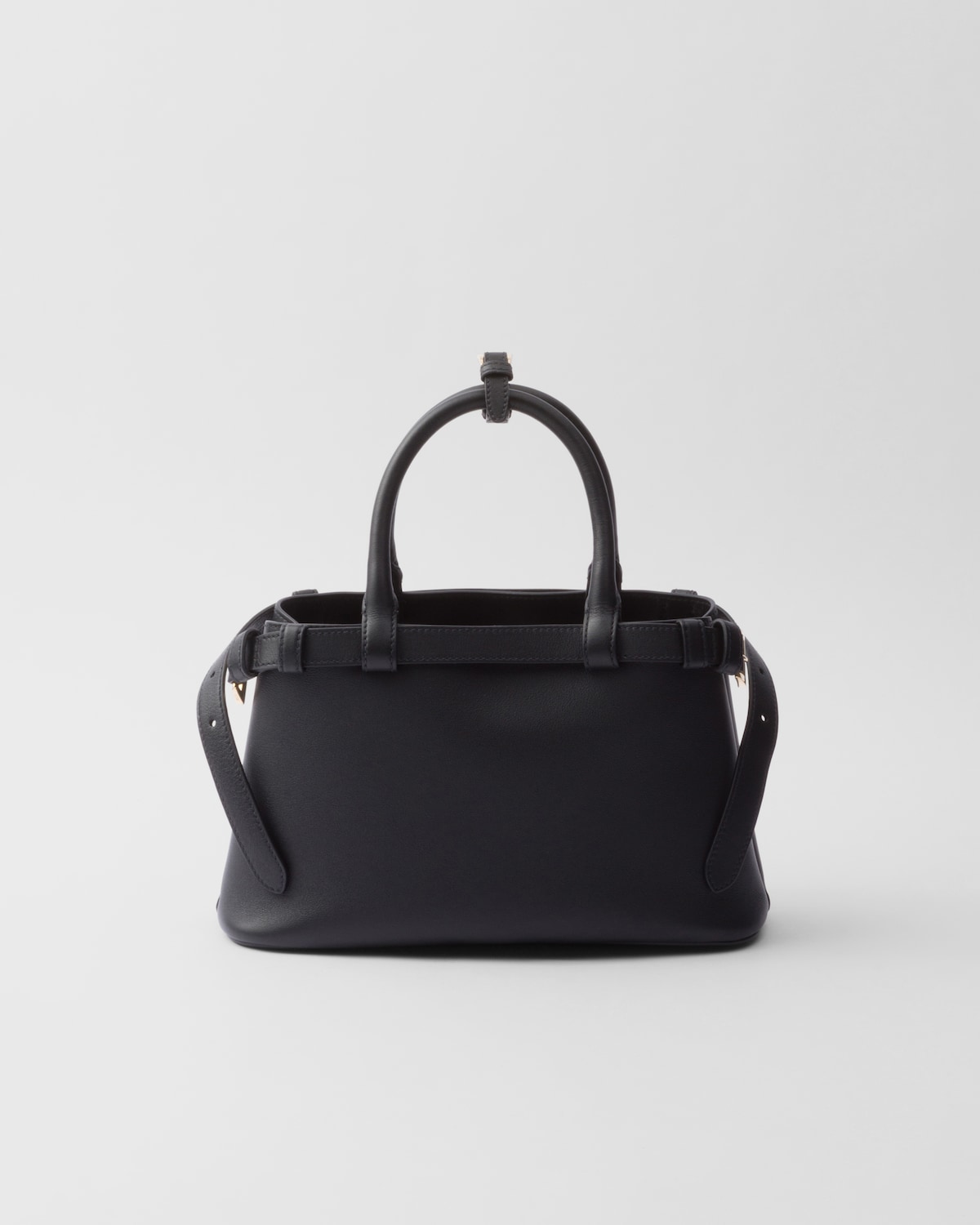 프라다 버클 미디엄 레더 더블벨트 핸드백 블랙