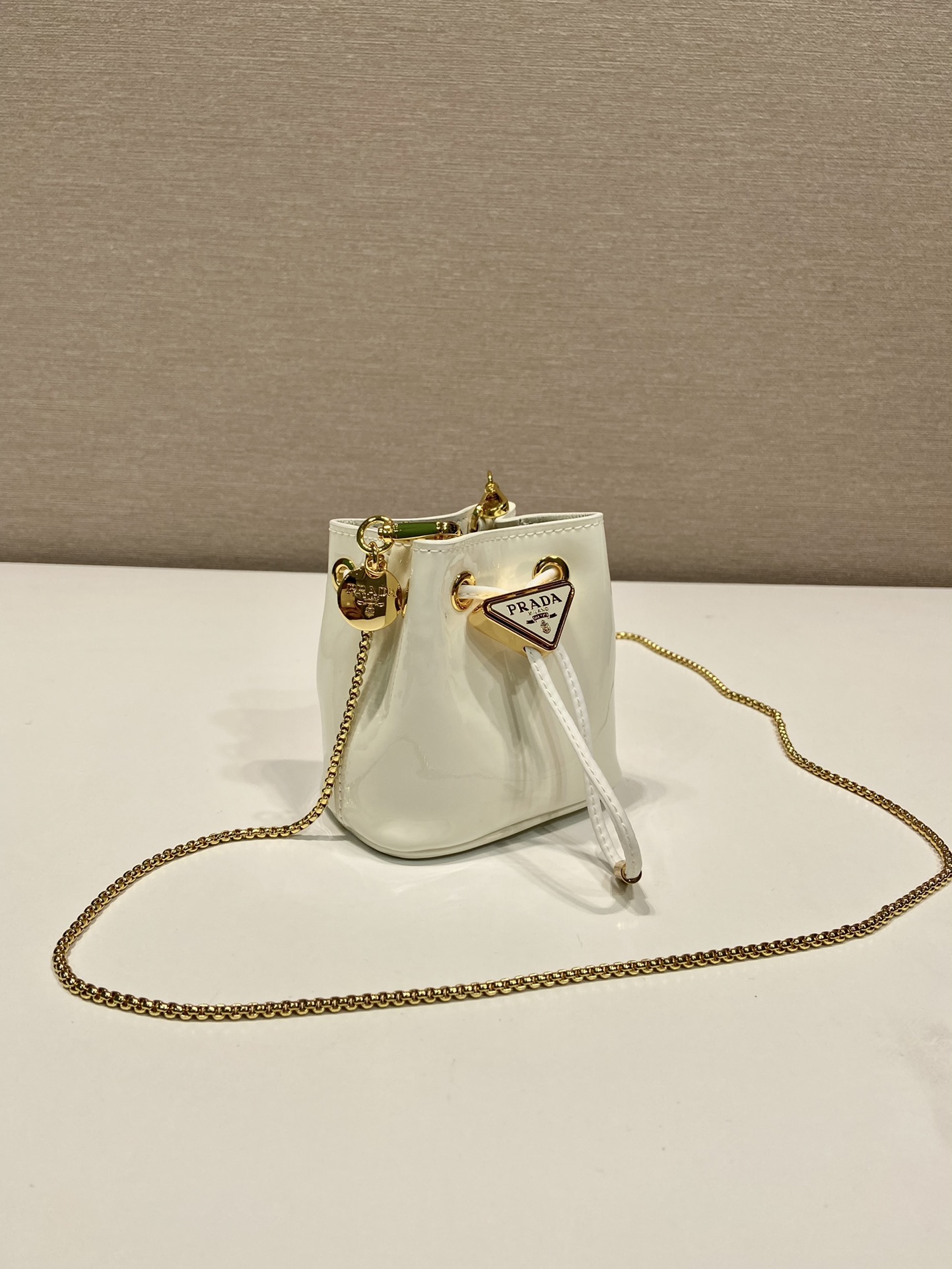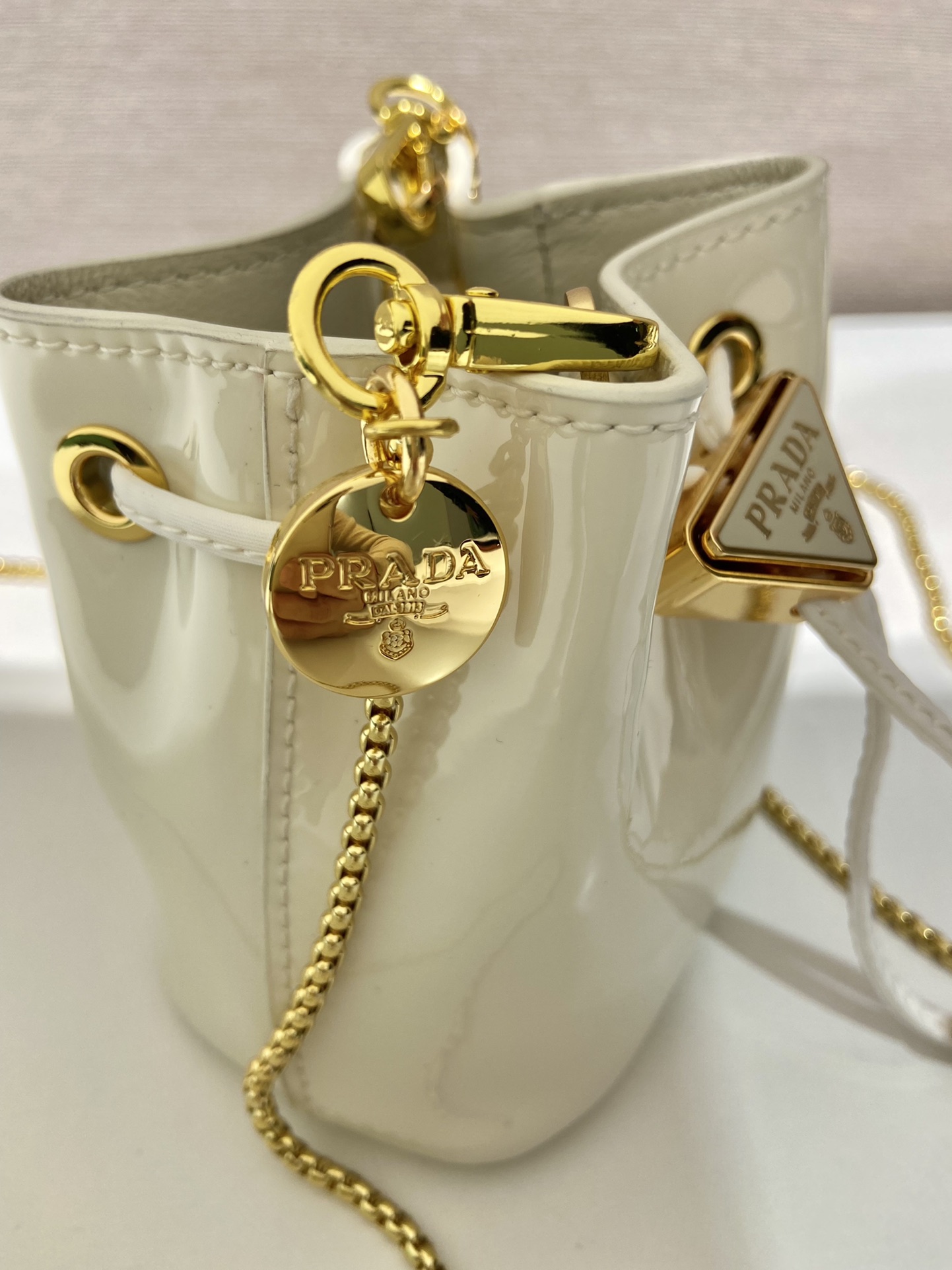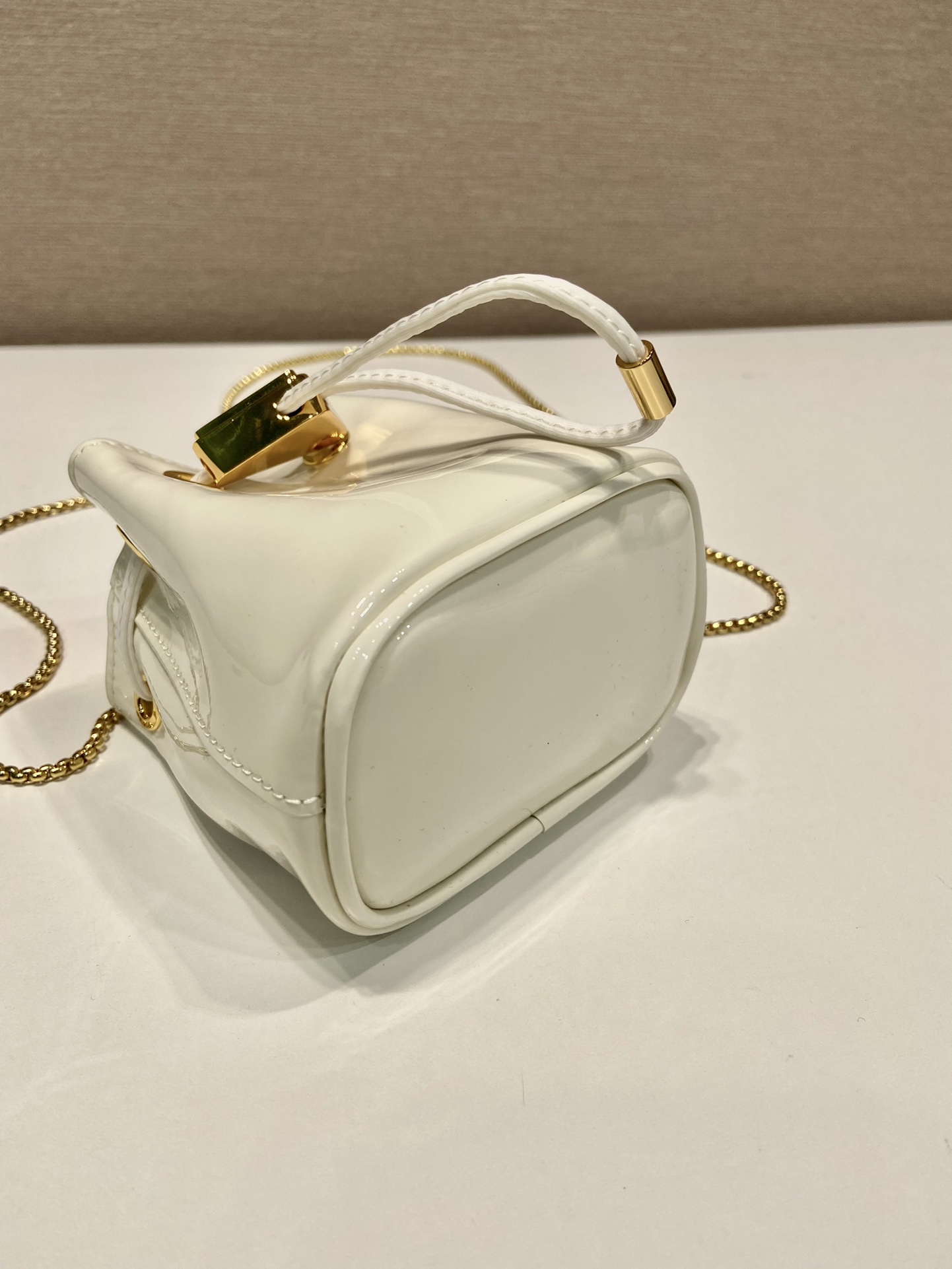 프라다 페이턴트 레더 미니 파우치 아이보리