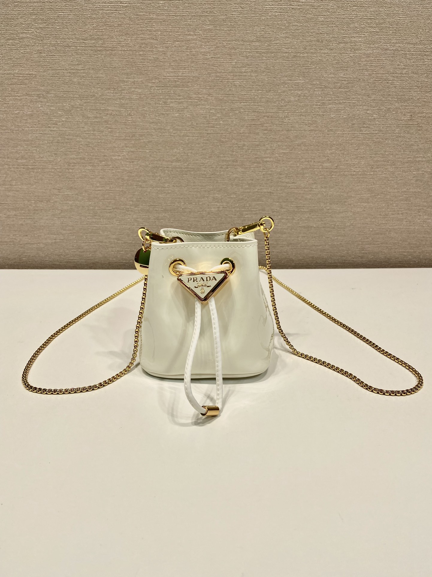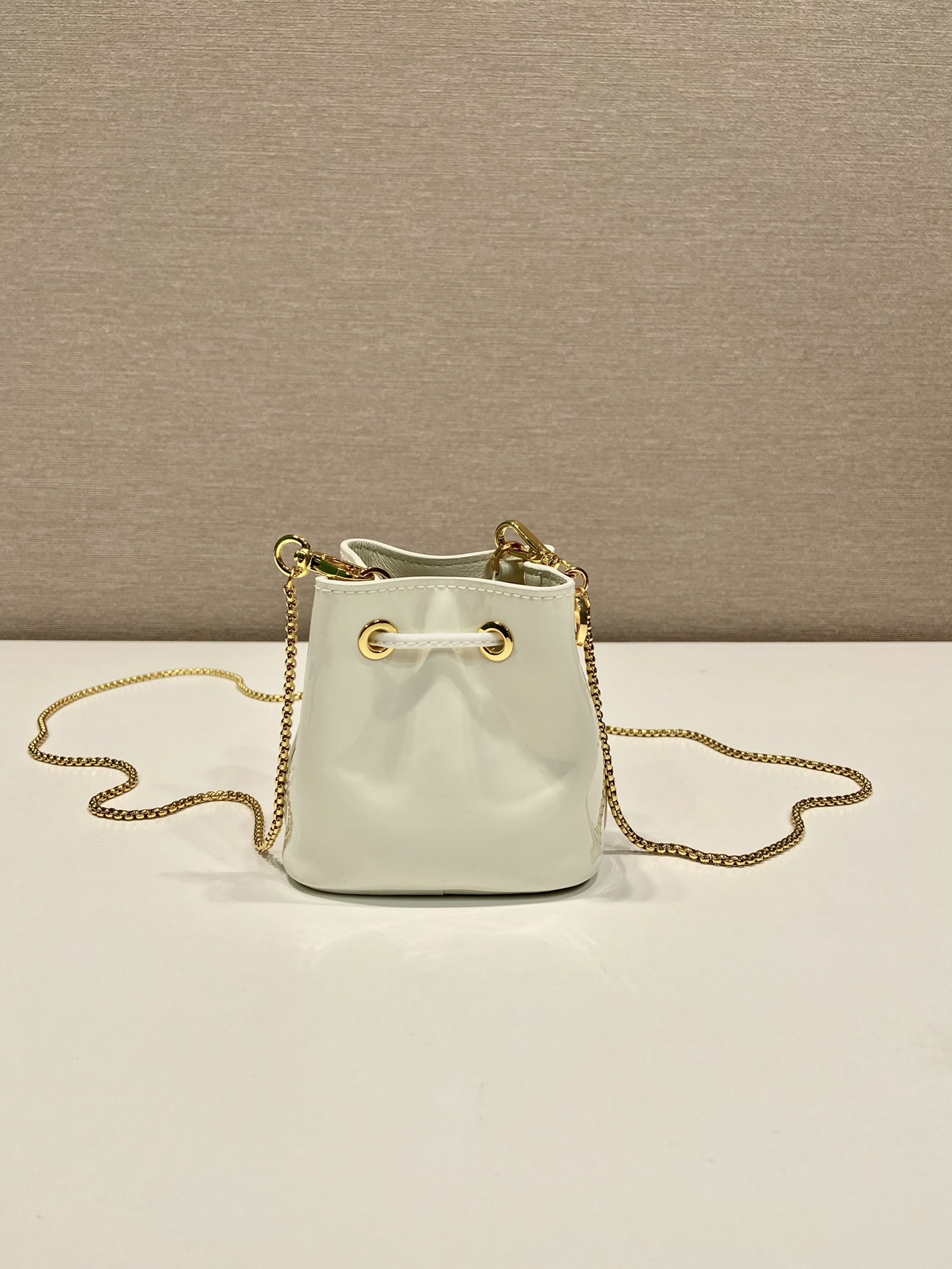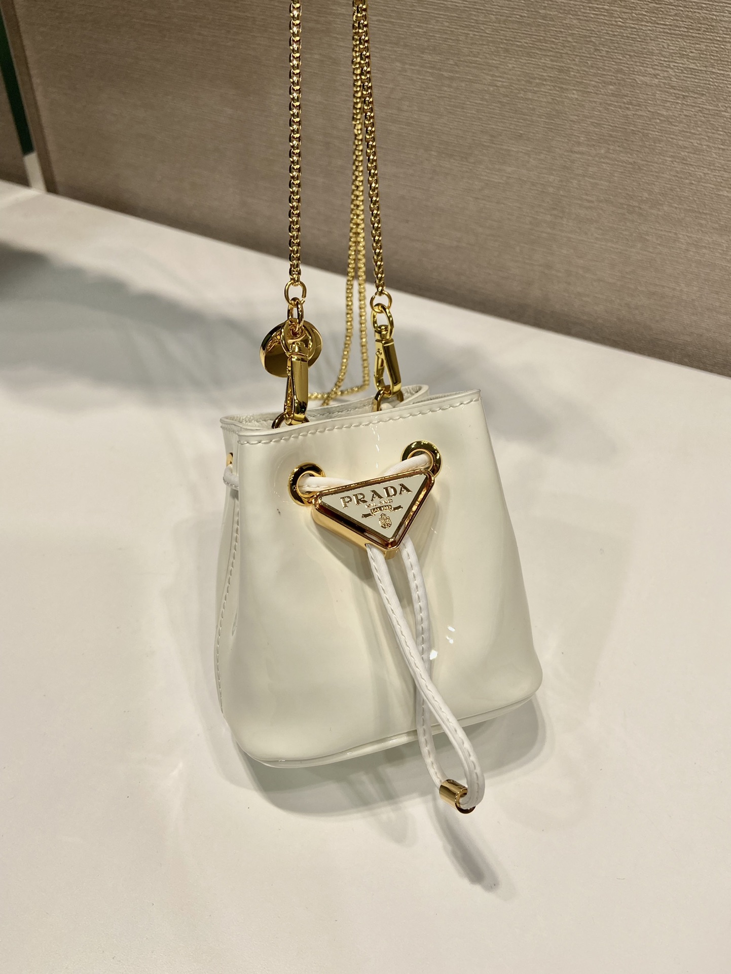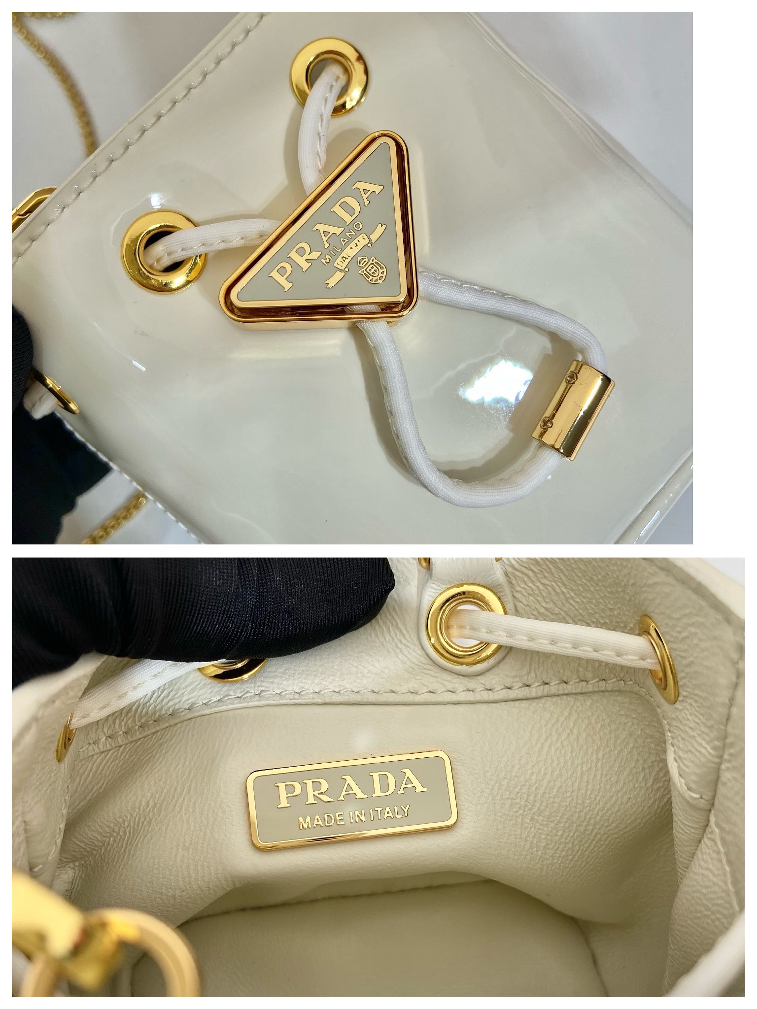 프라다 페이턴트 레더 미니 파우치 아이보리