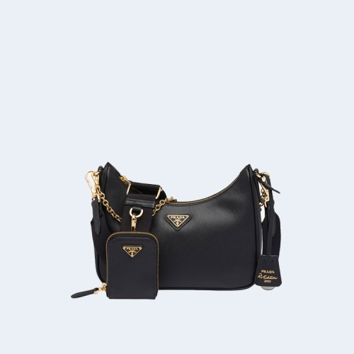 프라다 리에디션 2005 사피아노 레더 숄더백 블랙