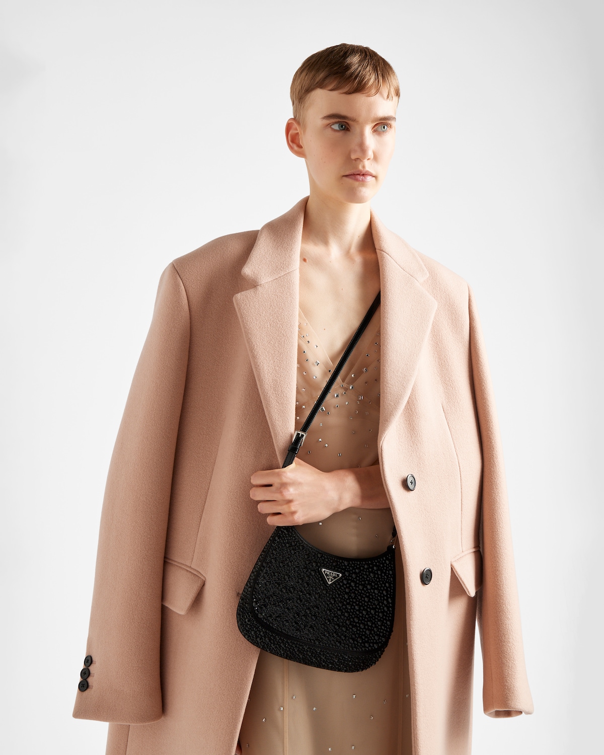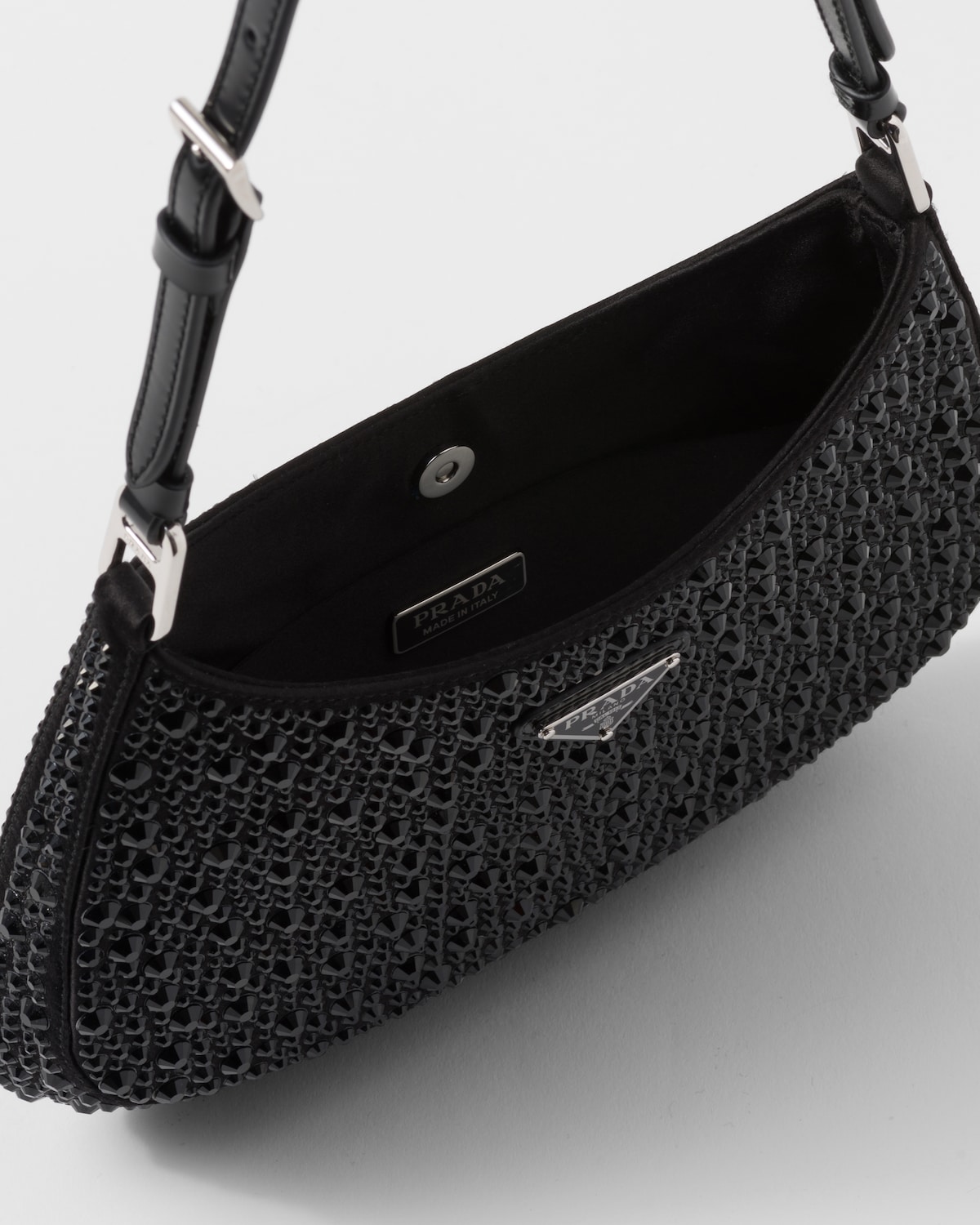 프라다 클레오 크리스탈 새틴 숄더백 블랙