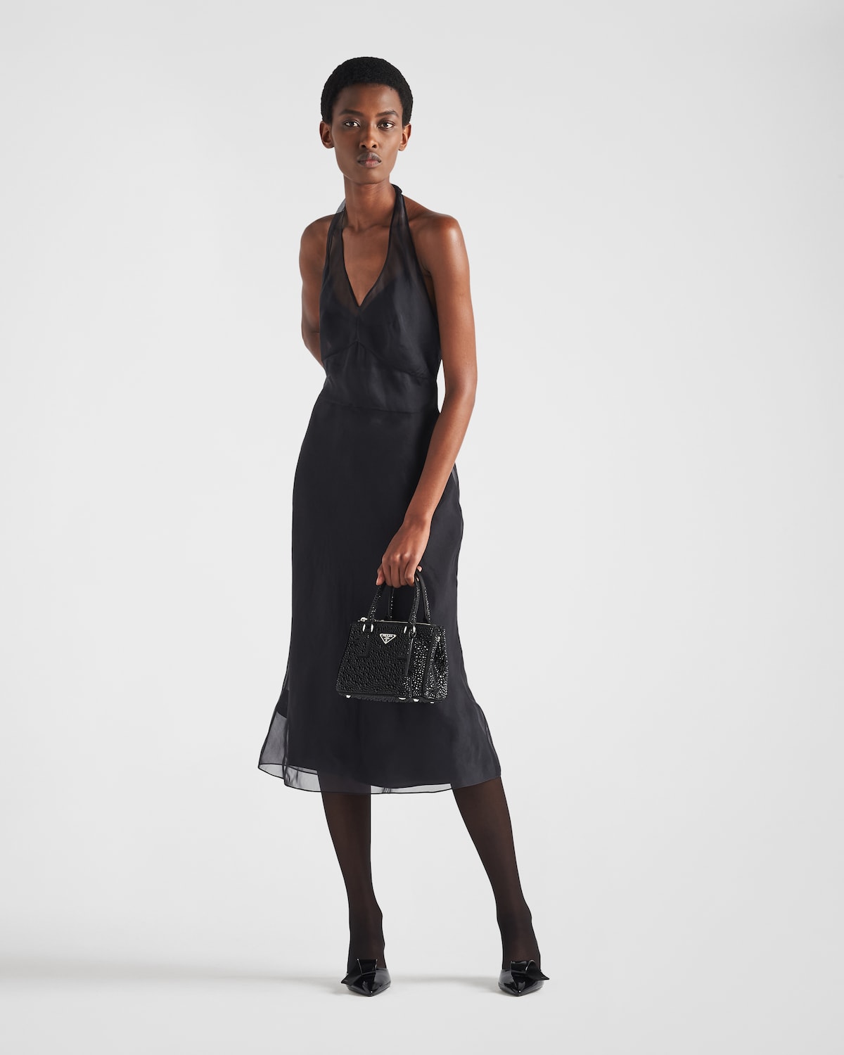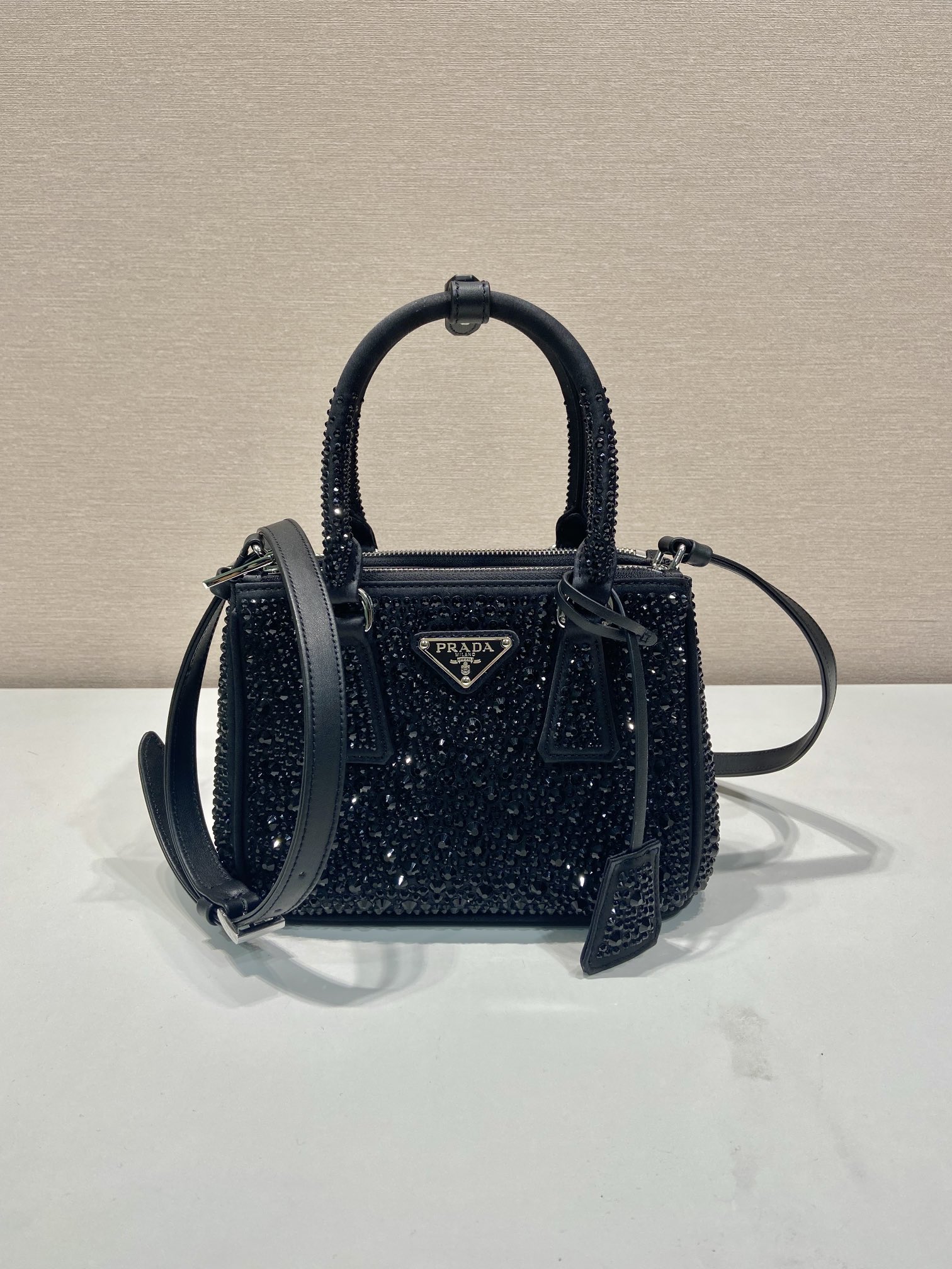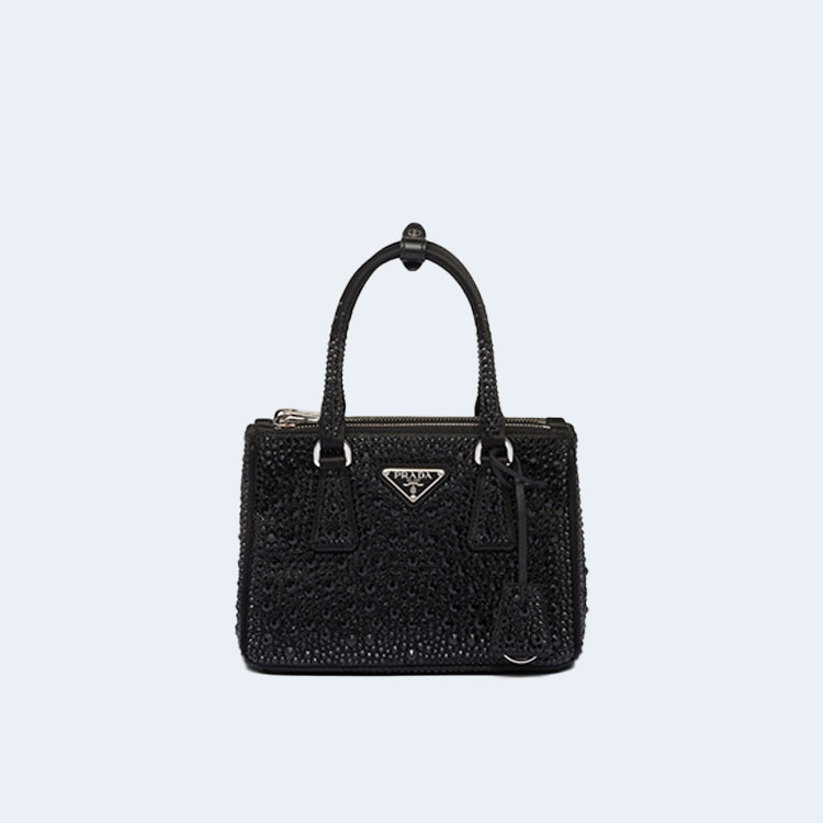 프라다 크리스탈 새틴 미니 파우치 블랙