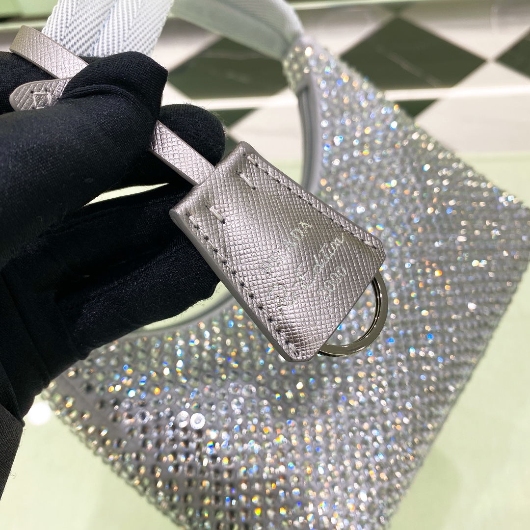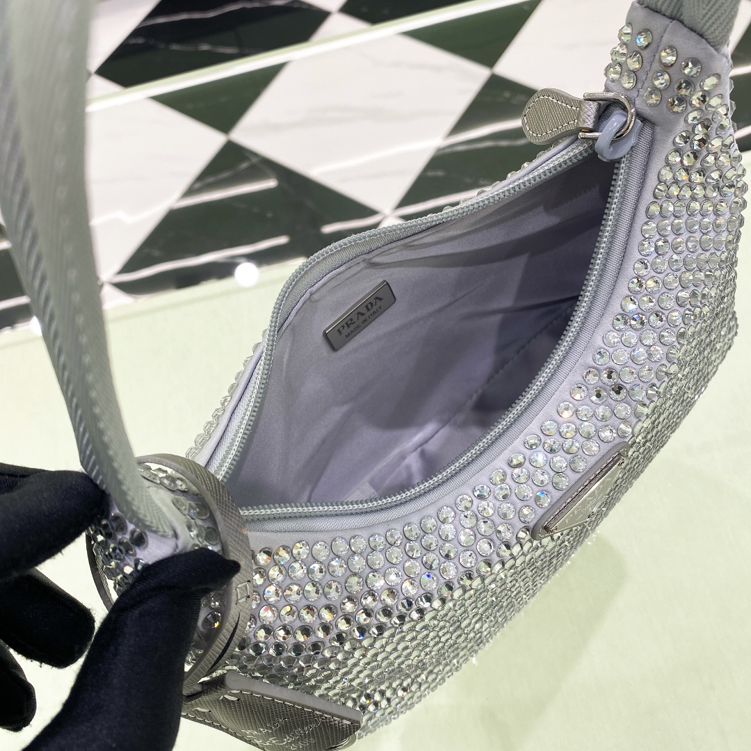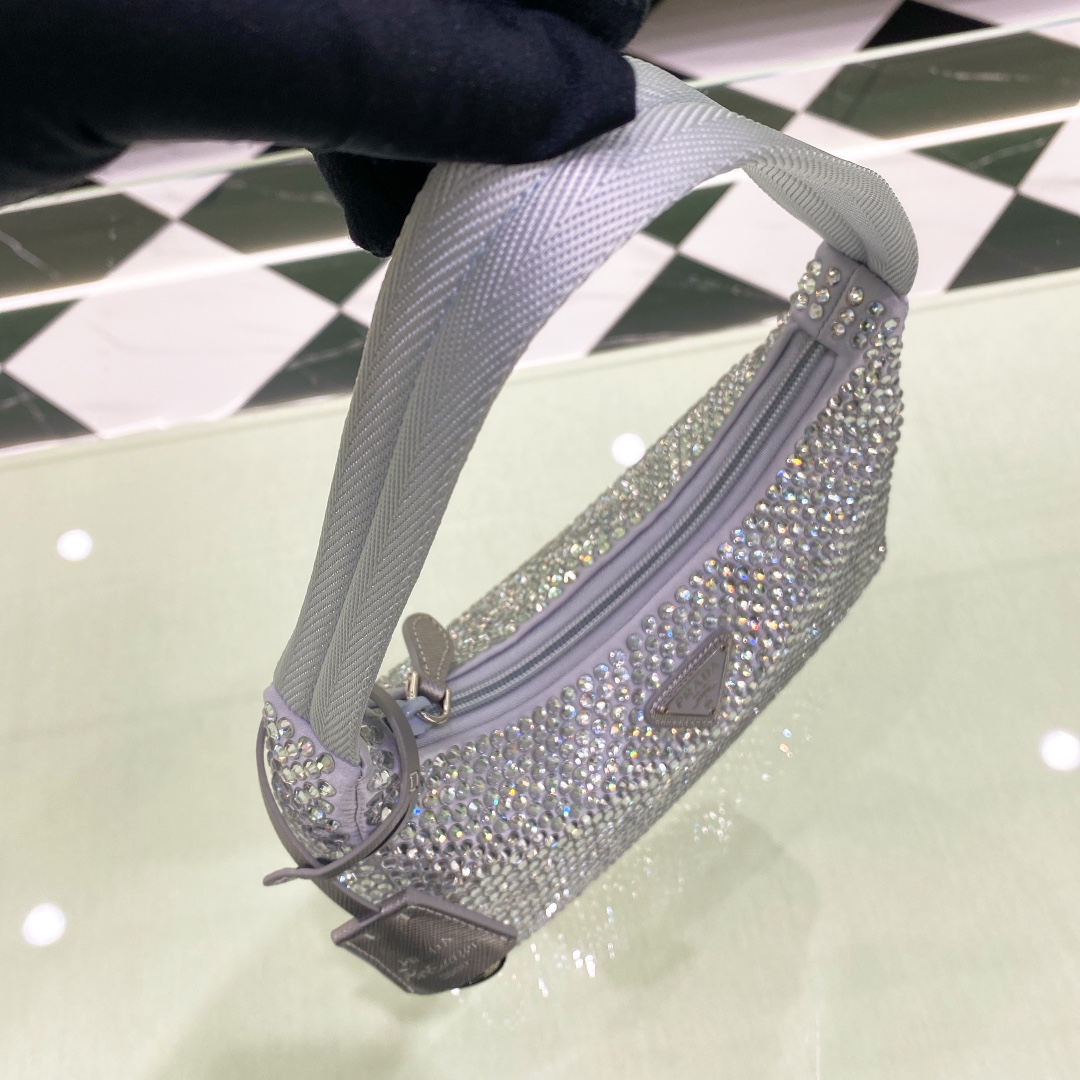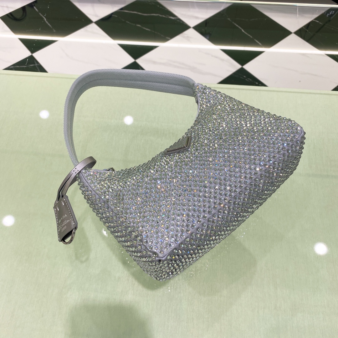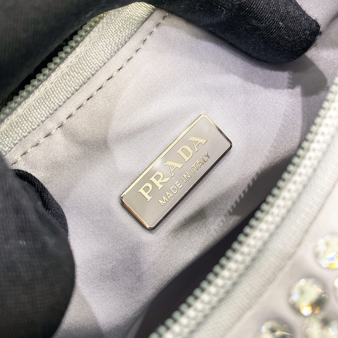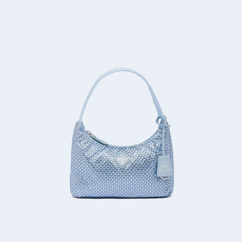 프라다 크리스탈 새틴 미니백 라이트블루