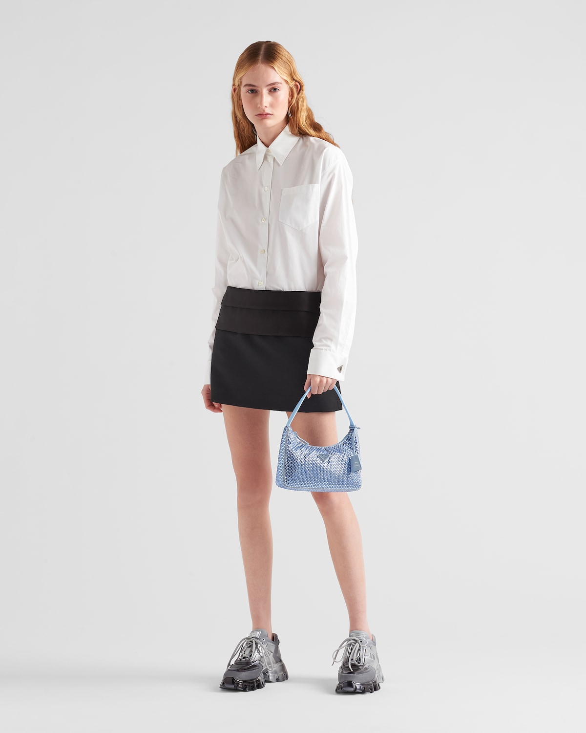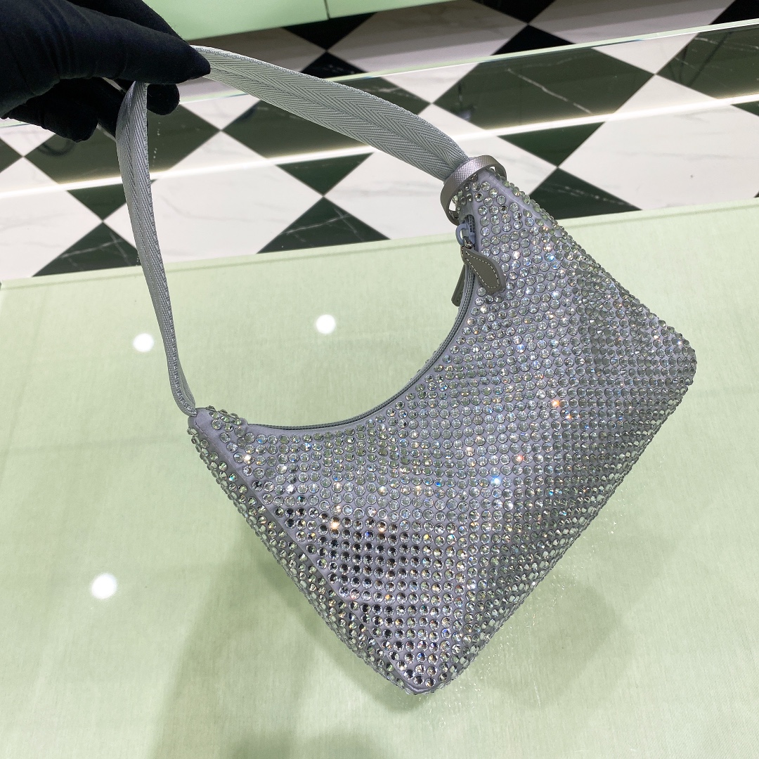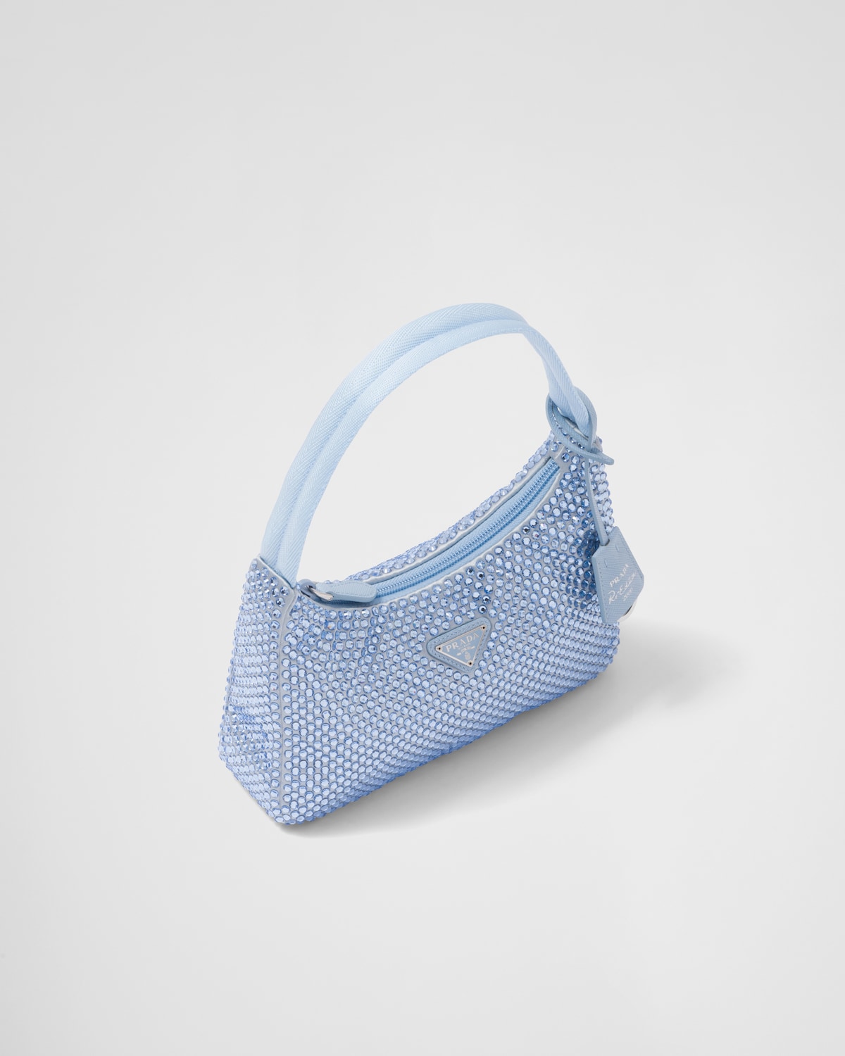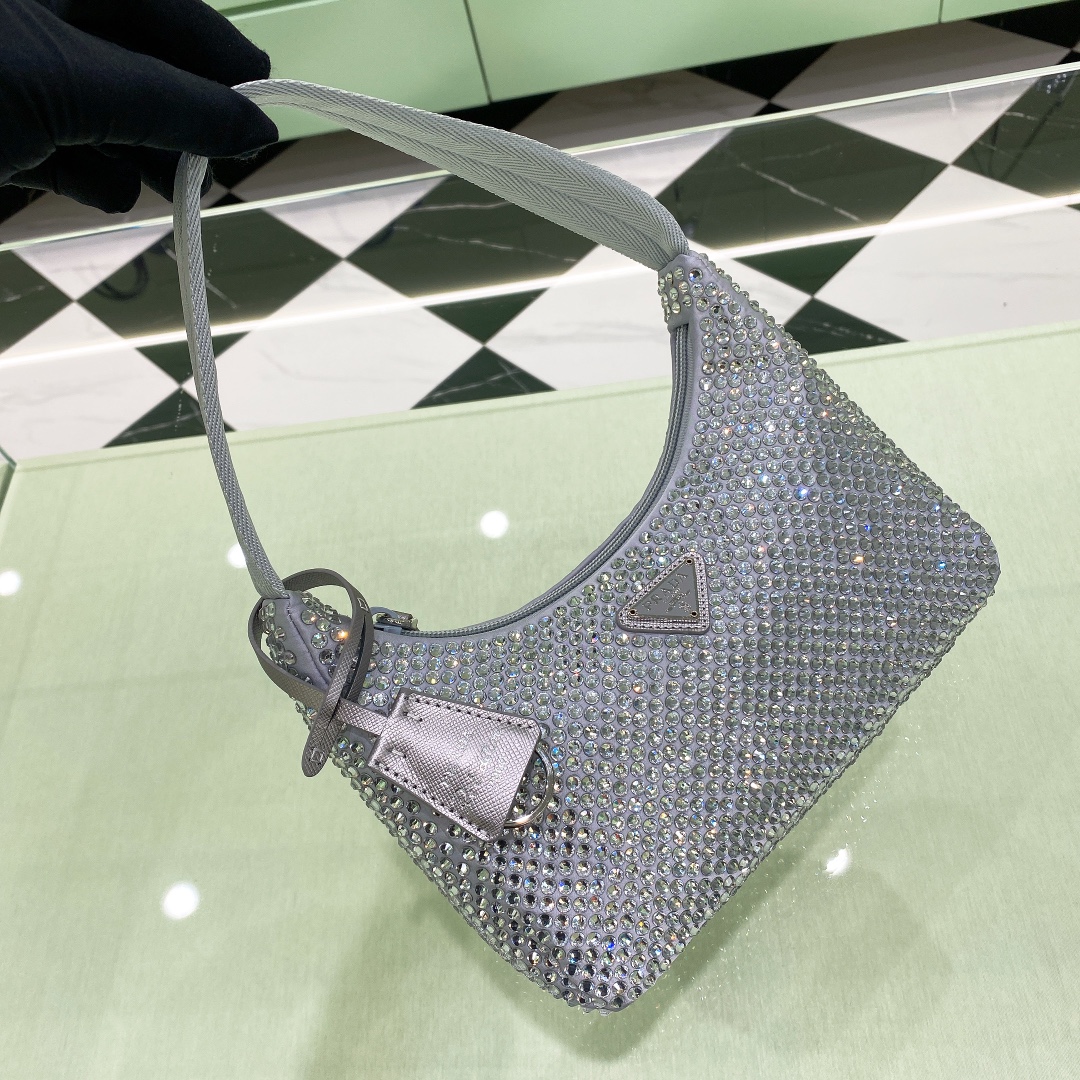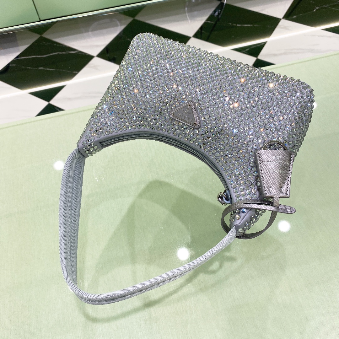 프라다 크리스탈 새틴 미니백 라이트블루