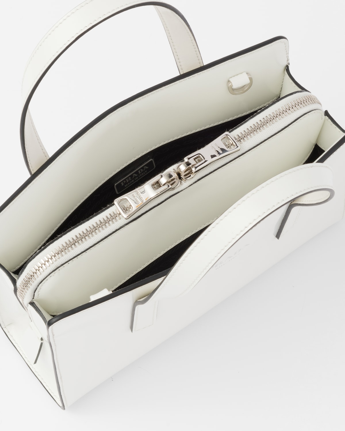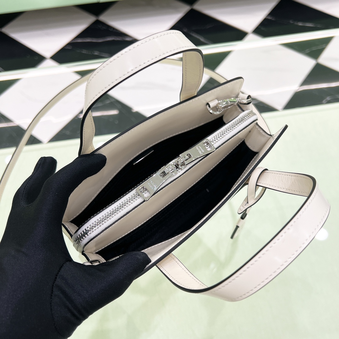 프라다 리에디션 1995 브러쉬드 레더 미니 핸드백 화이트