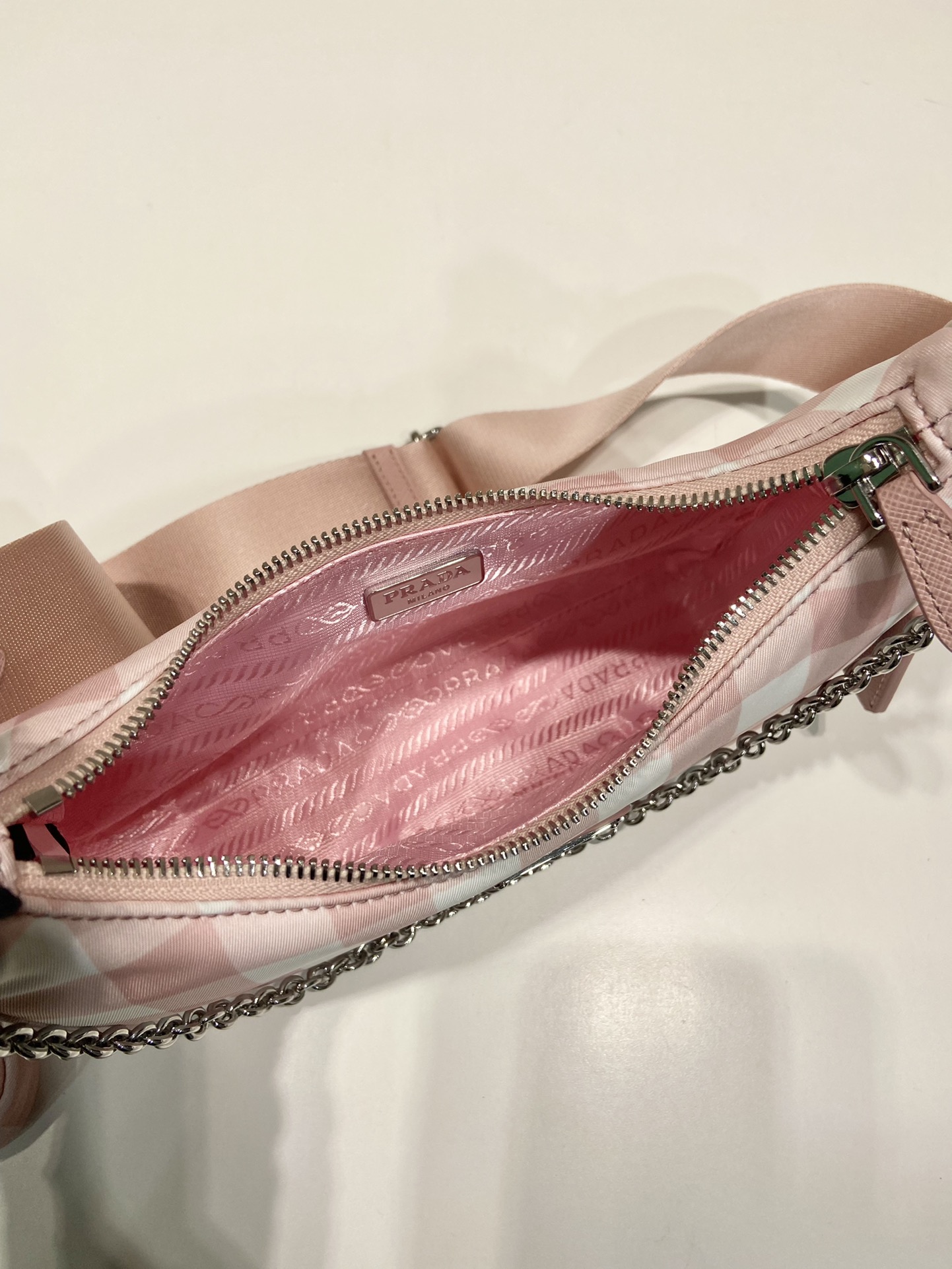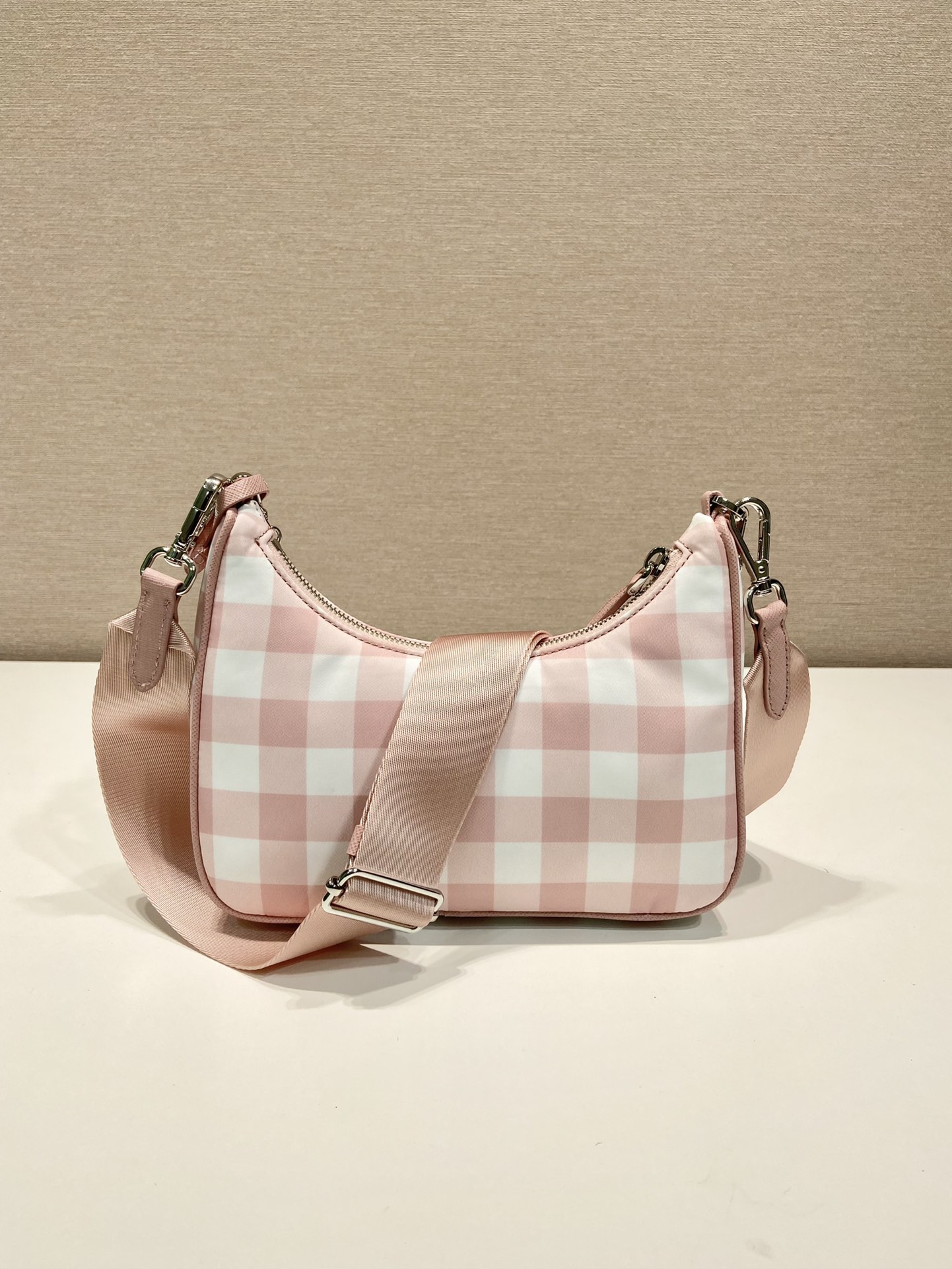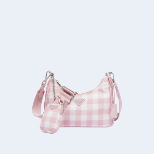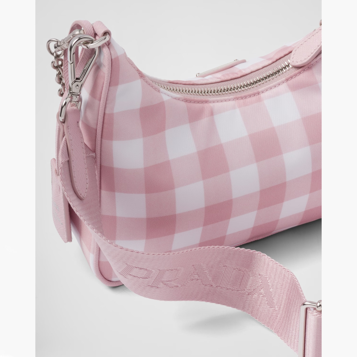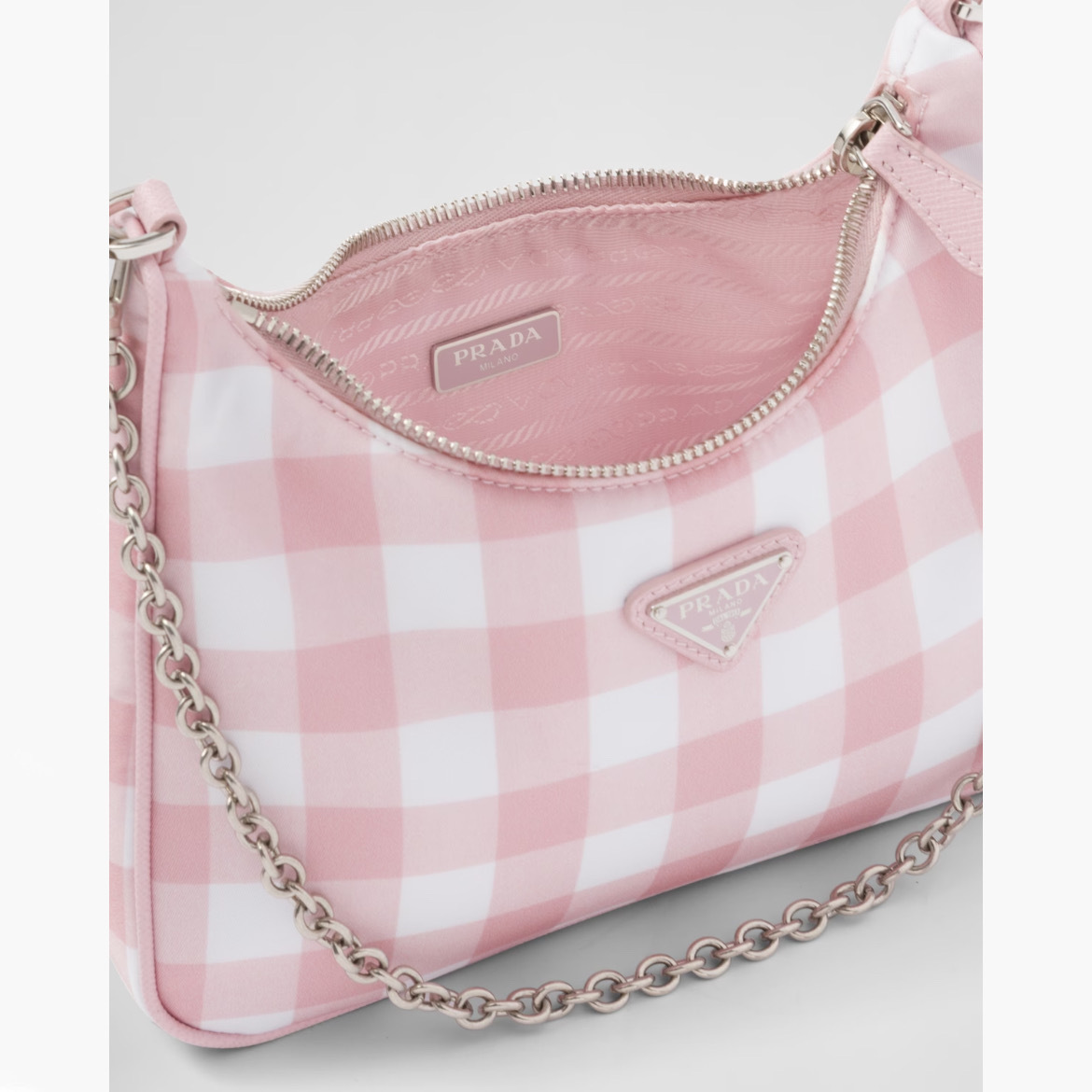 프라다 리에디션 2005 리나일론 체크 숄더백 핑크