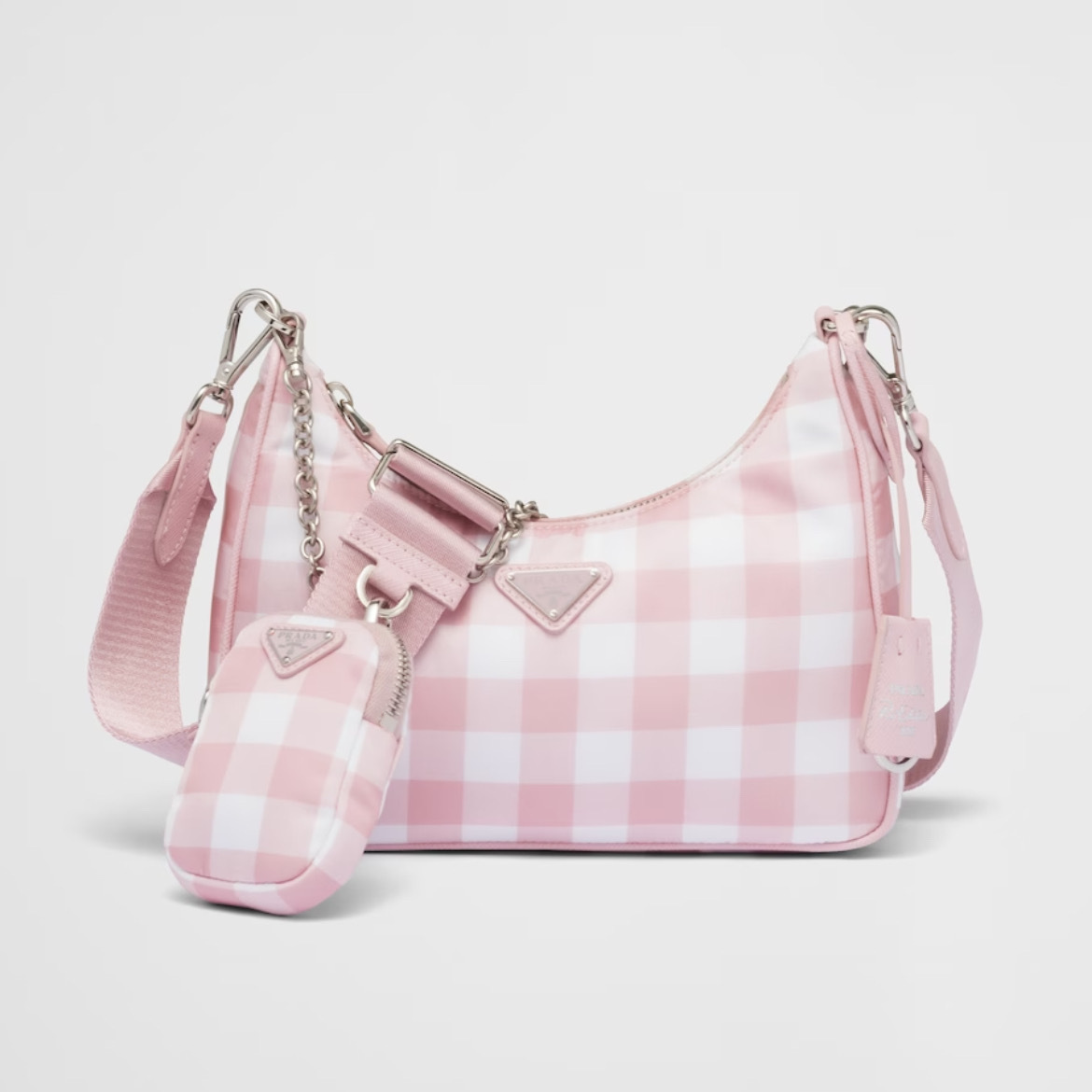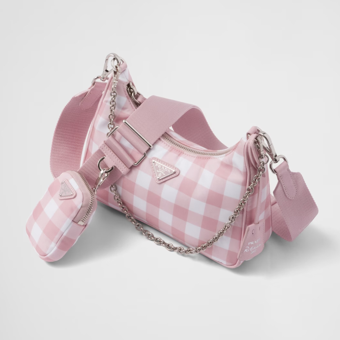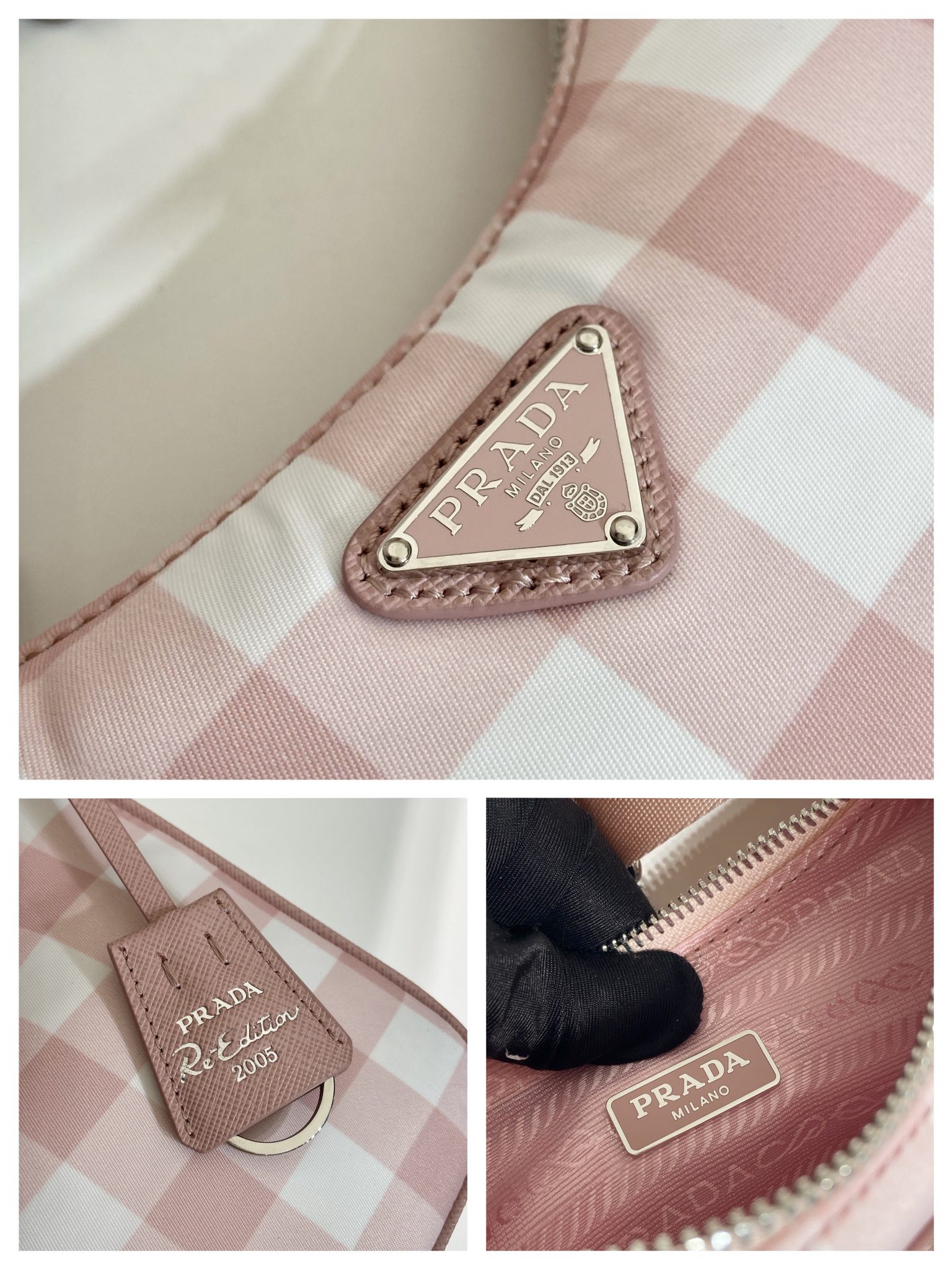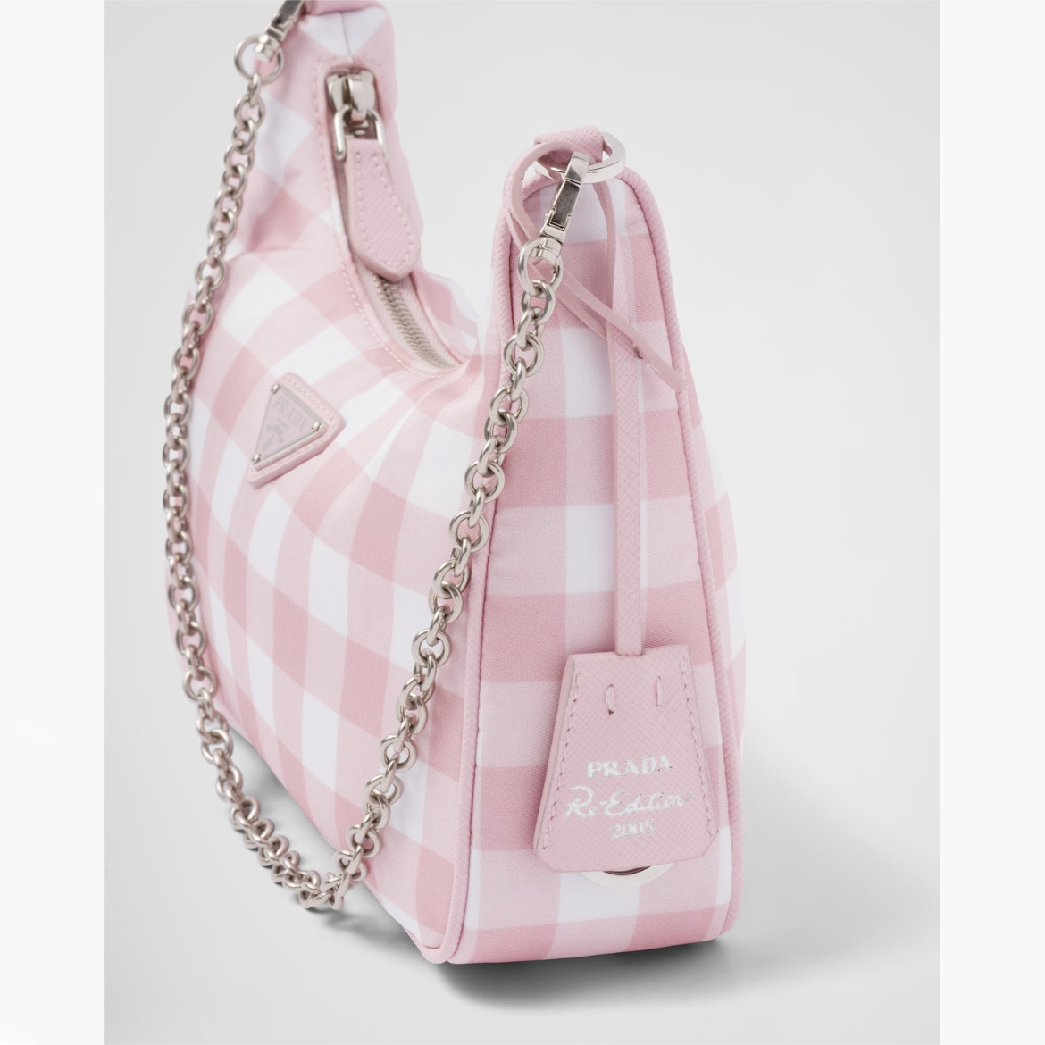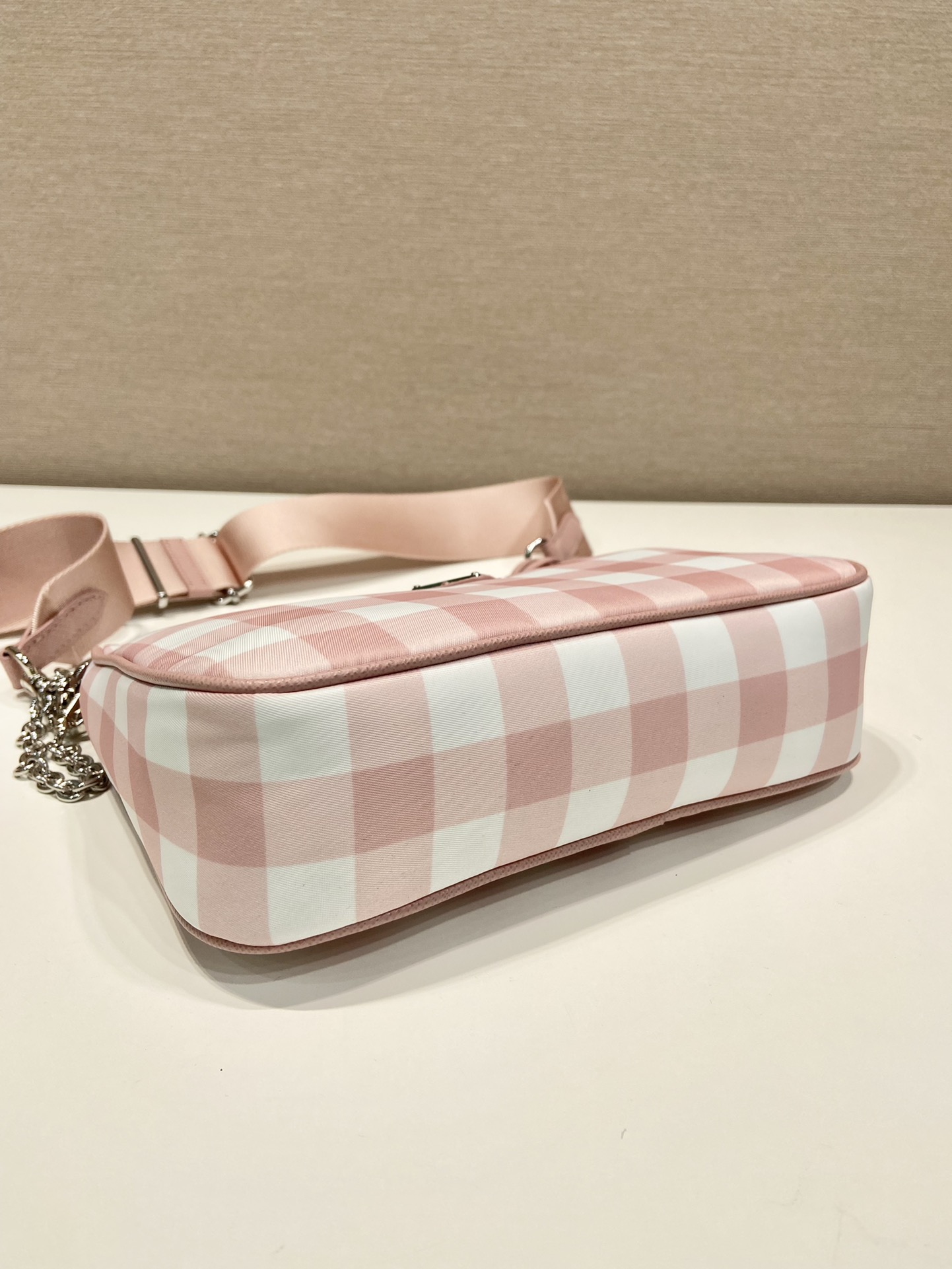 프라다 리에디션 2005 리나일론 체크 숄더백 핑크
