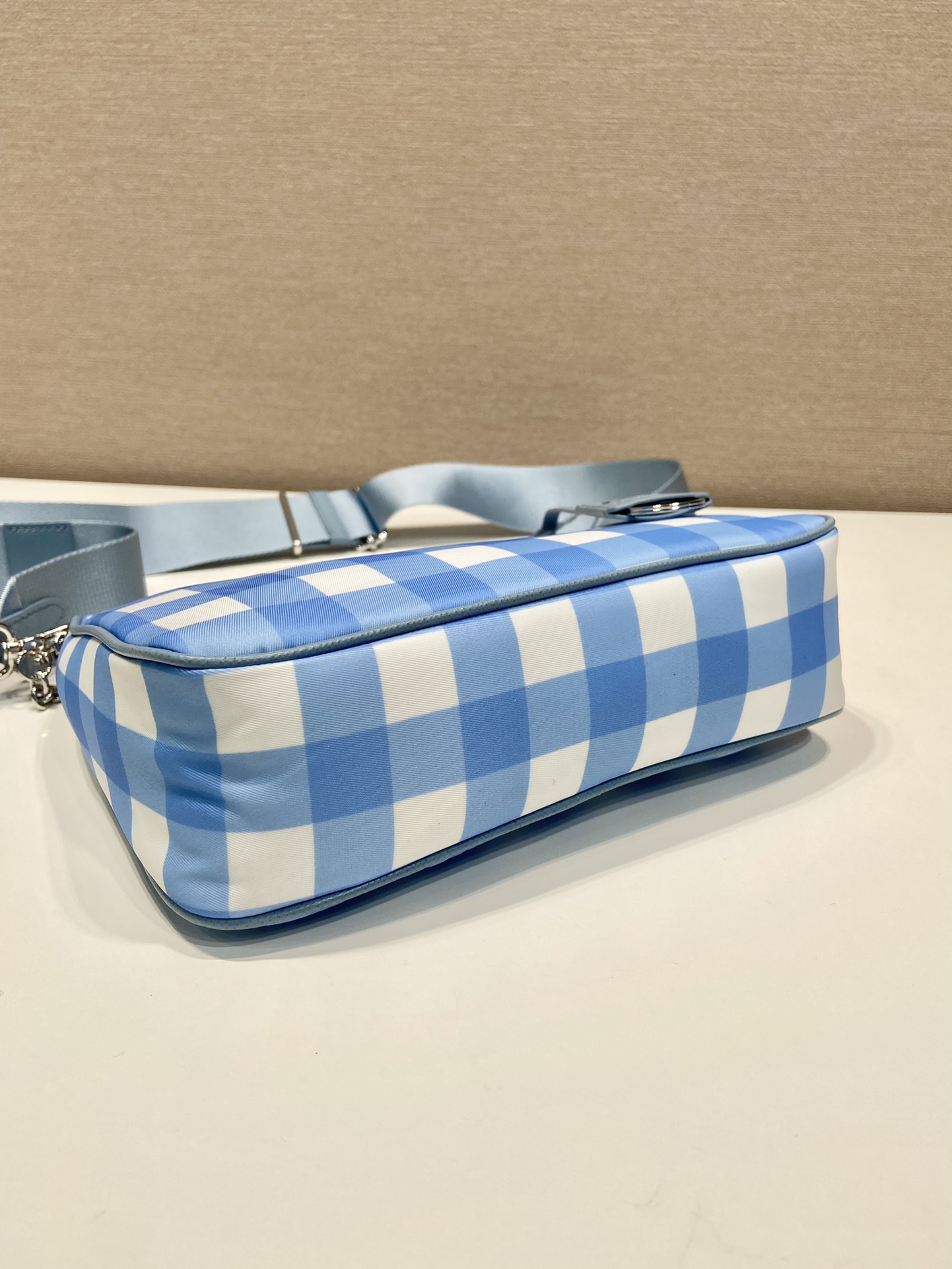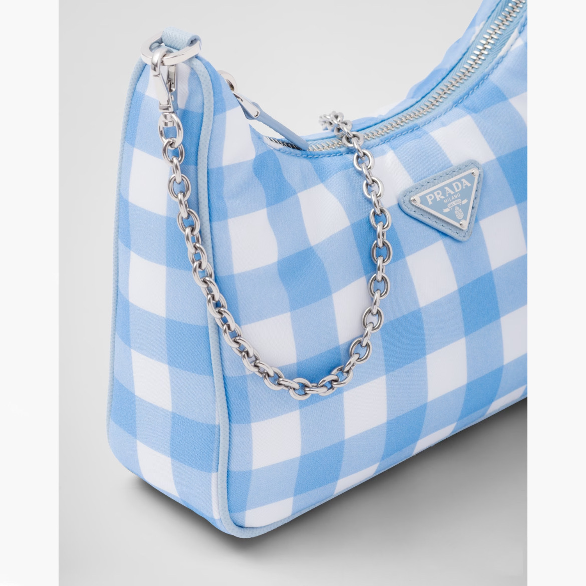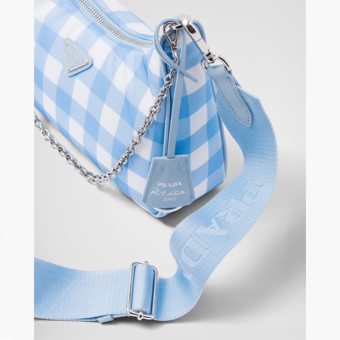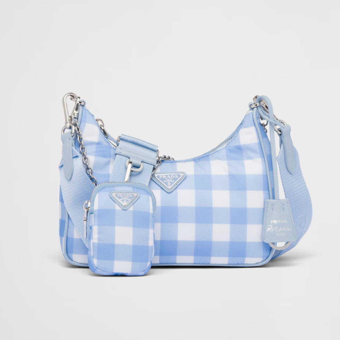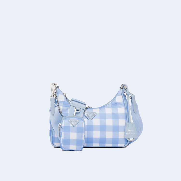 프라다 리에디션 2005 리나일론 체크 숄더백 라이트블루