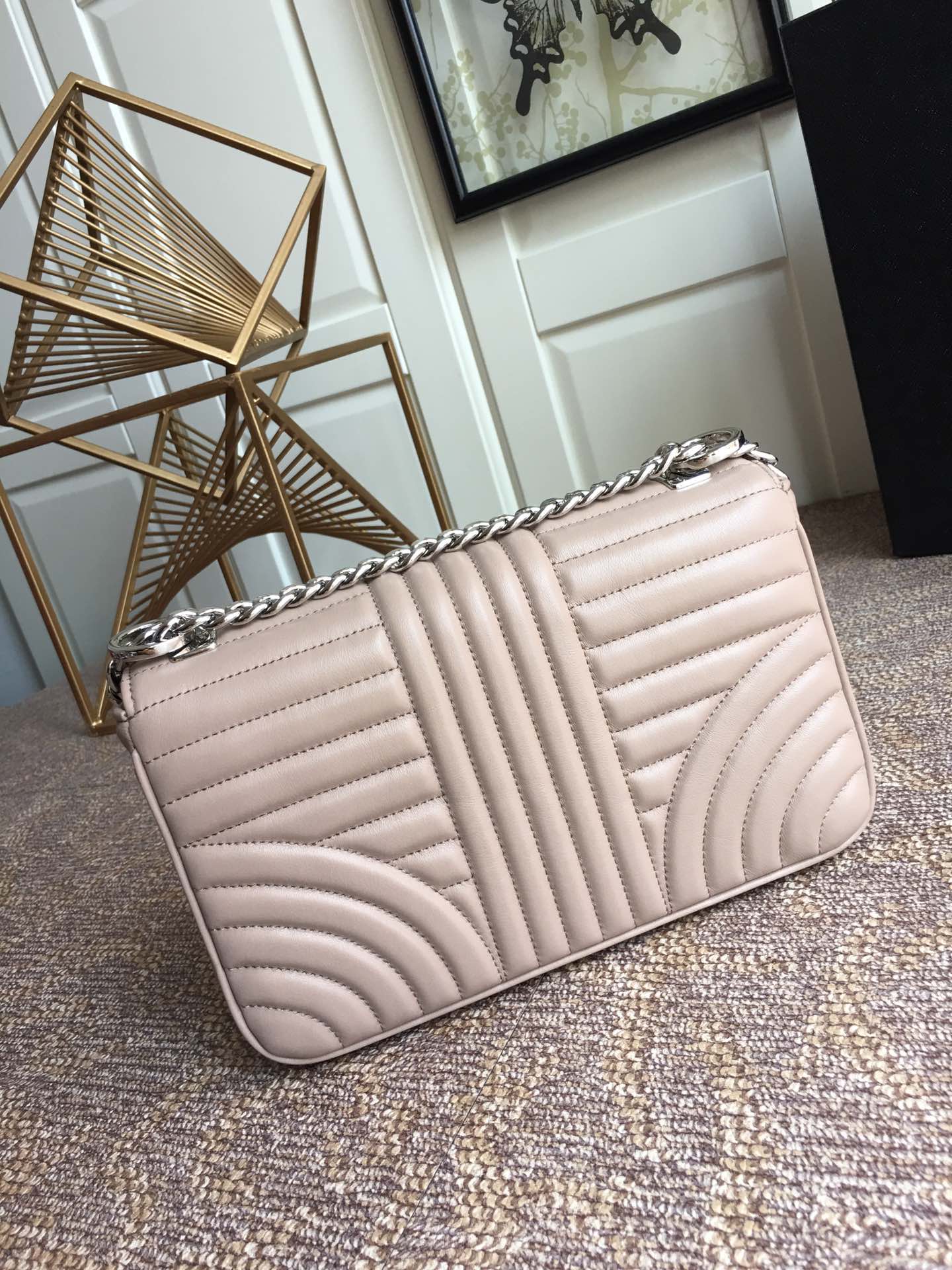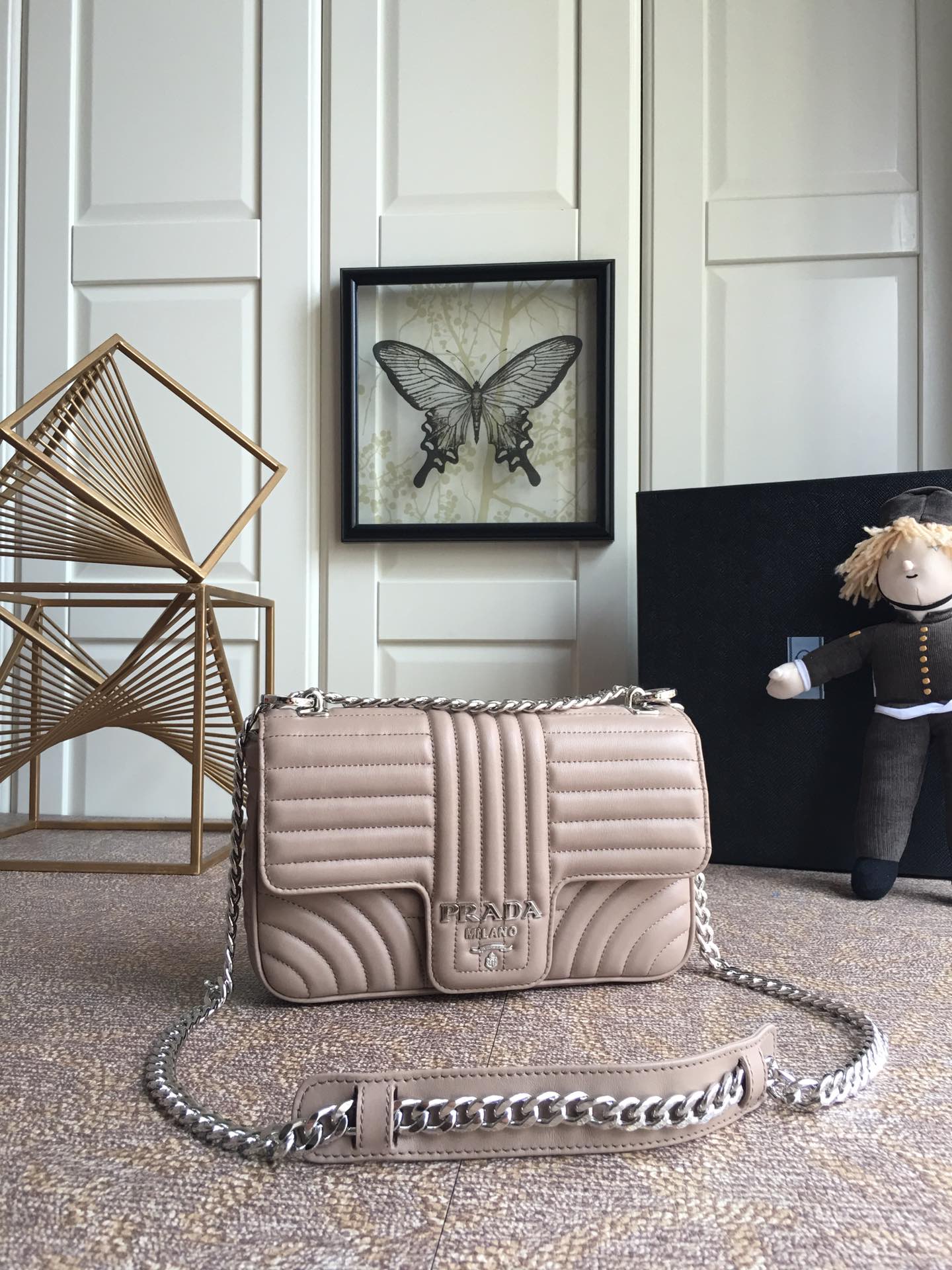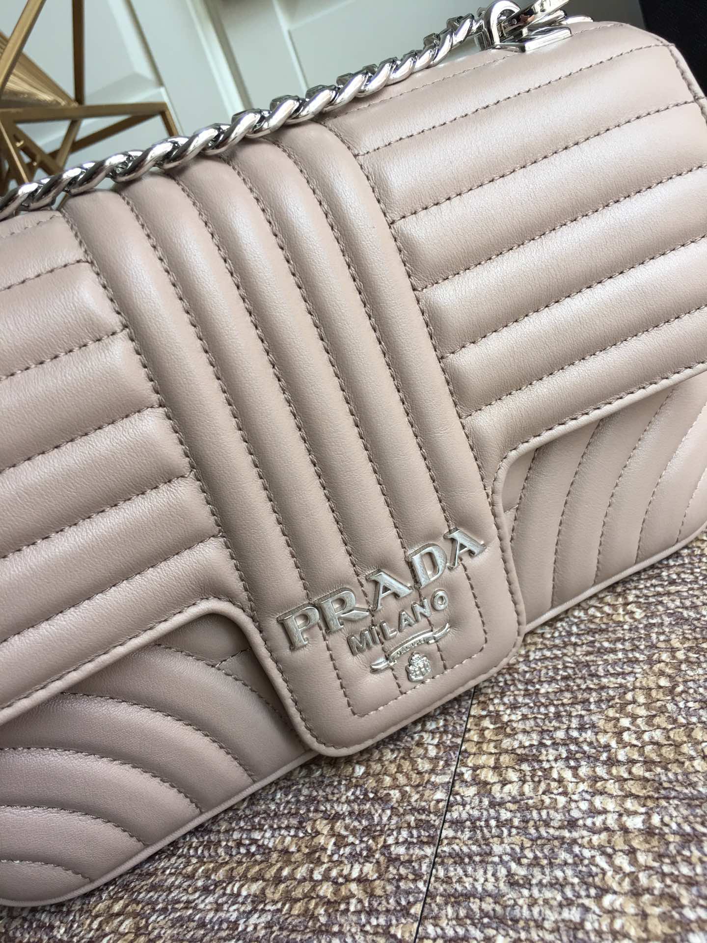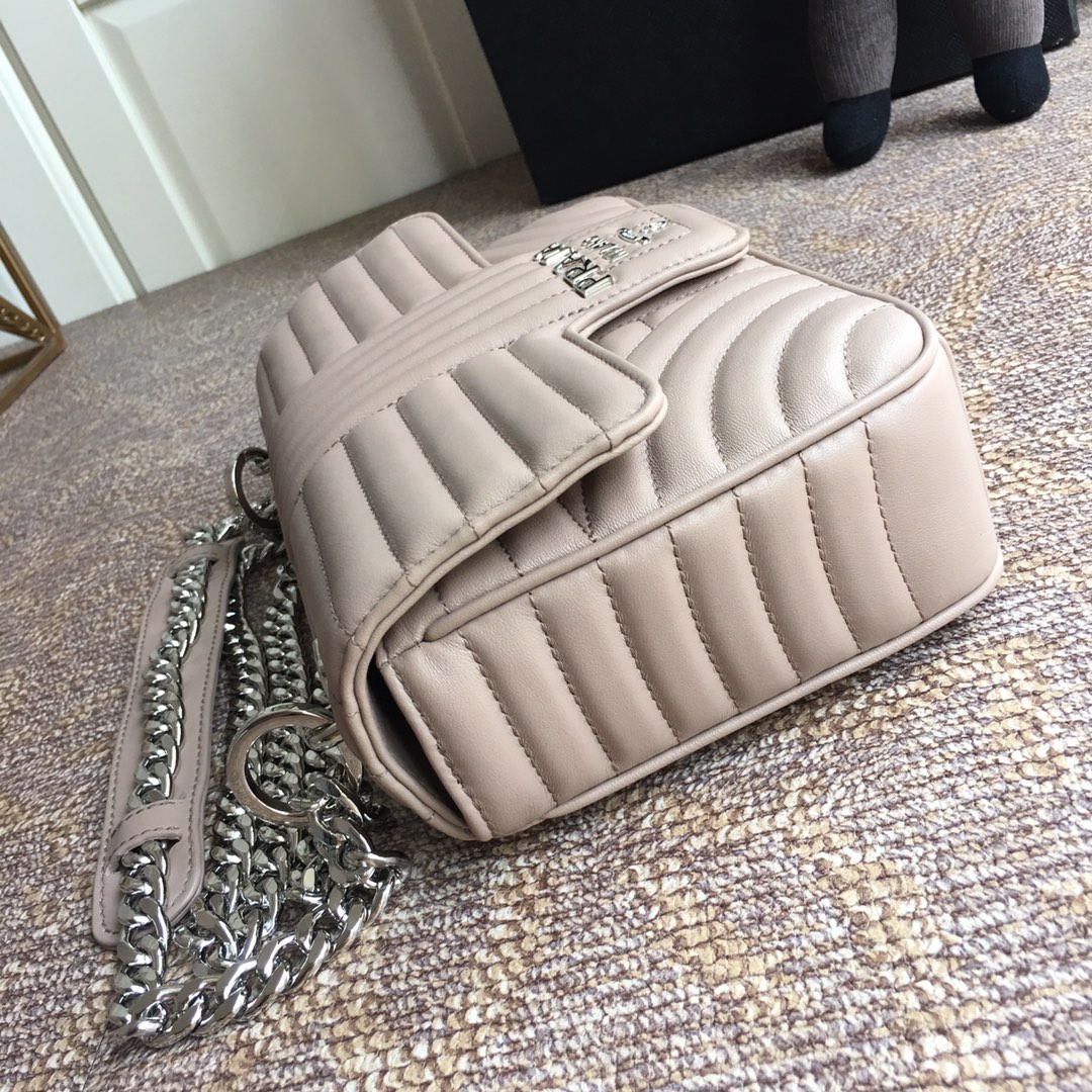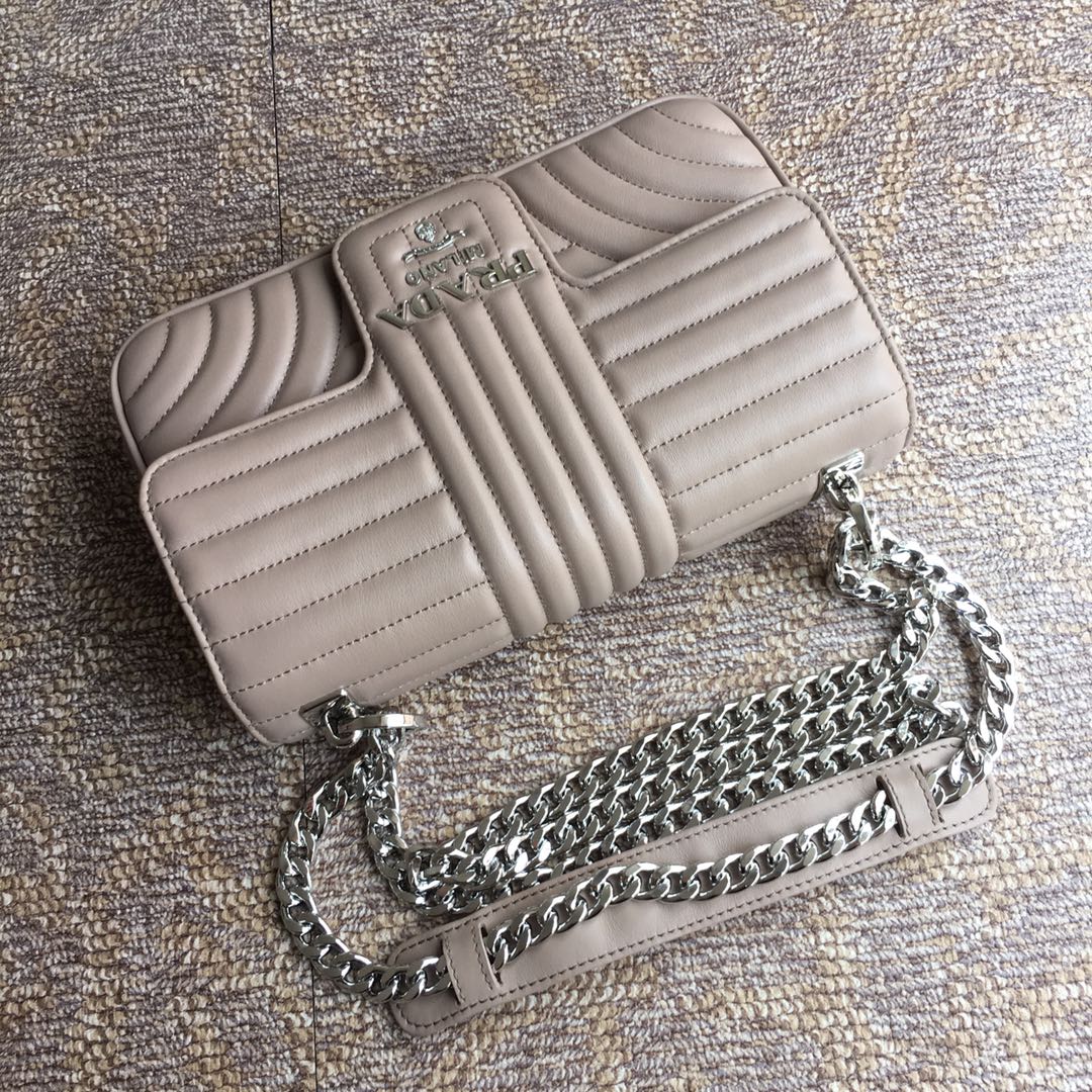 프라다 베이지 다이어그램 플랩 체인 숄더백