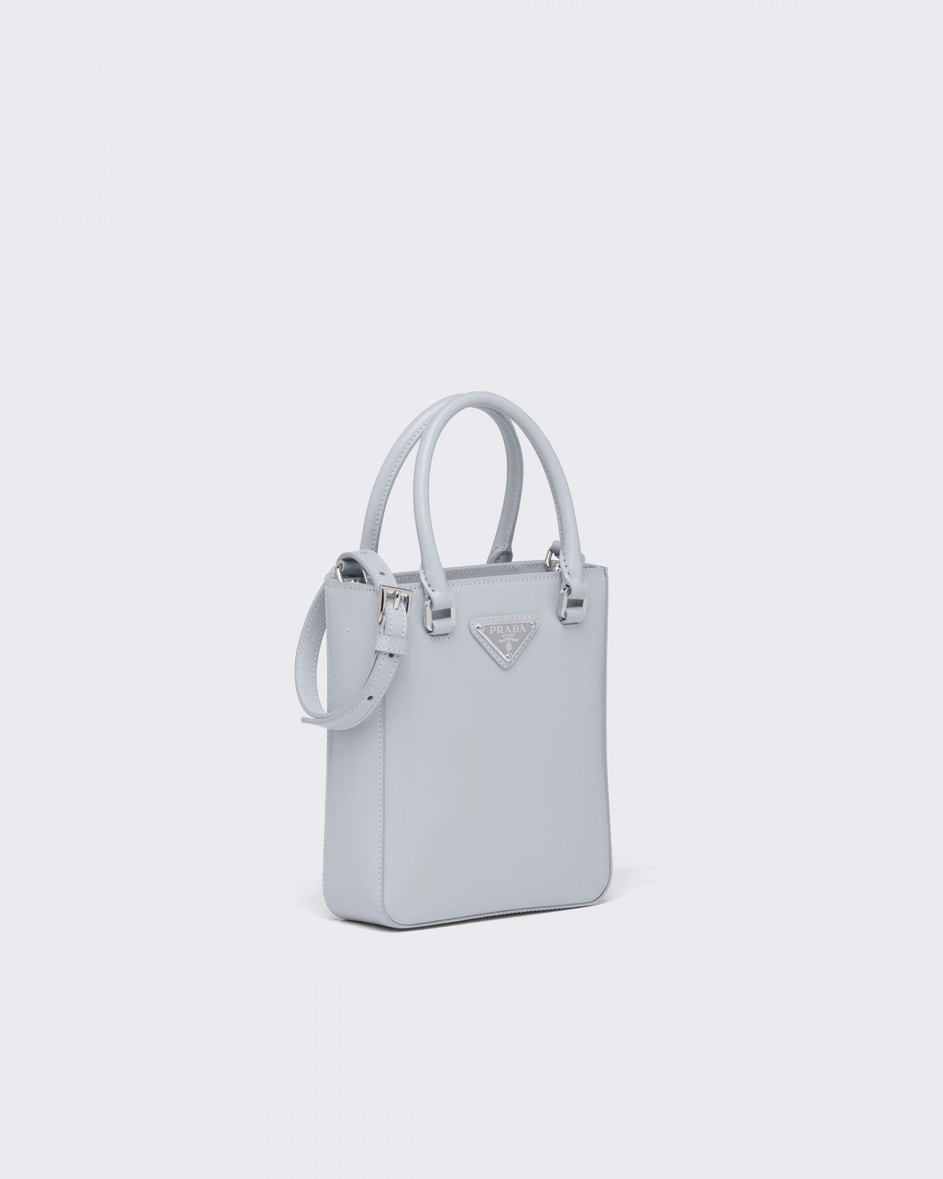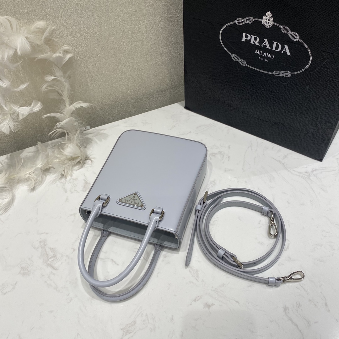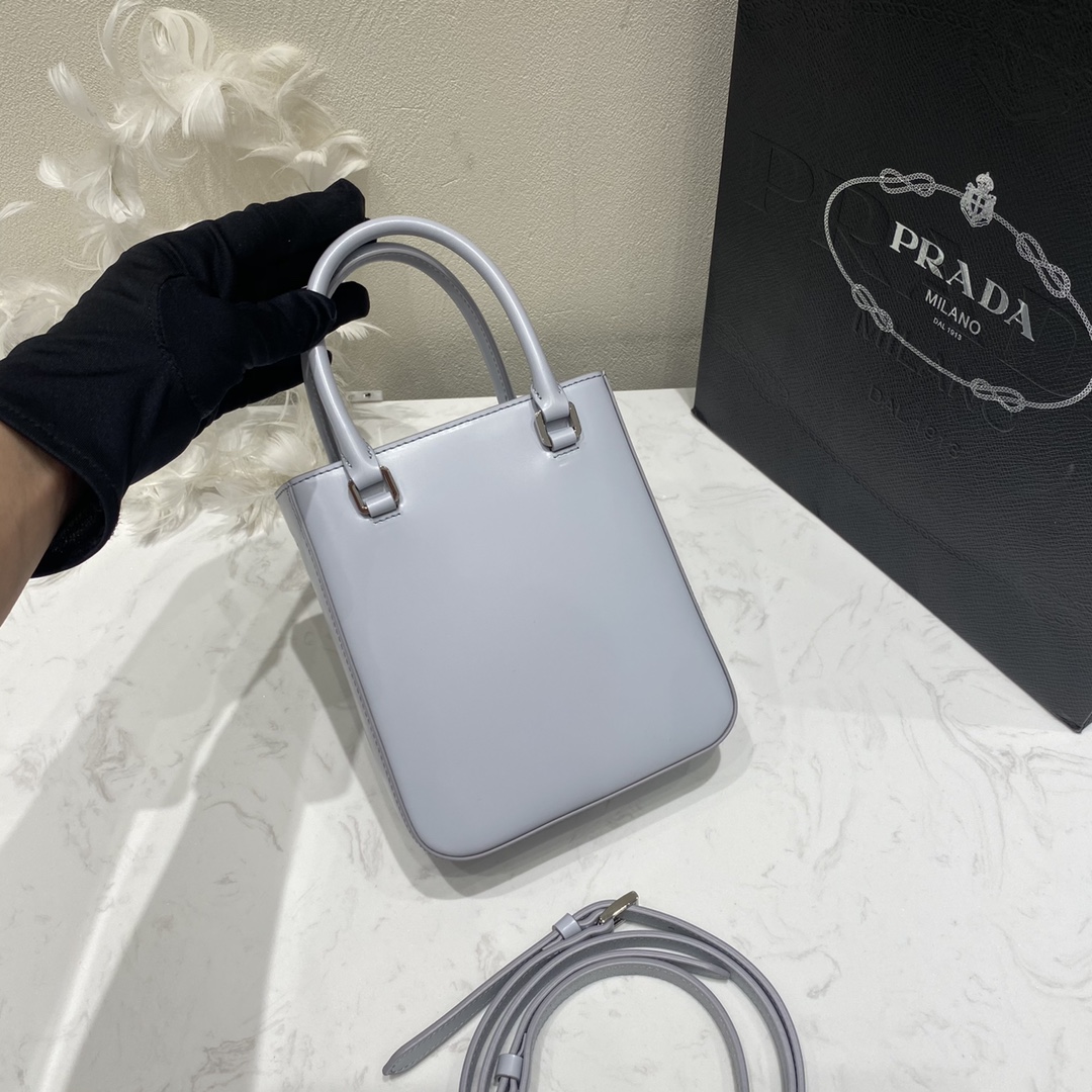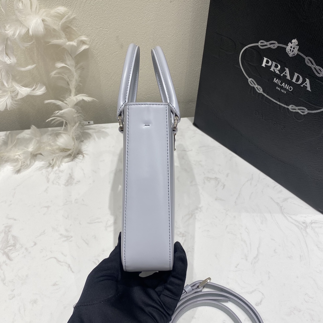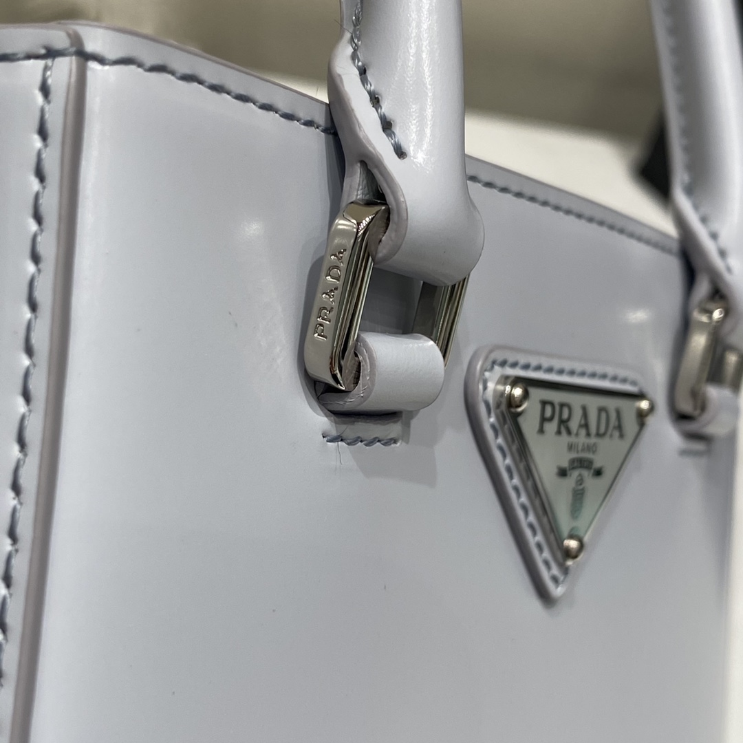프라다 브러쉬드 가죽 스몰 토트 백 스카이 블루