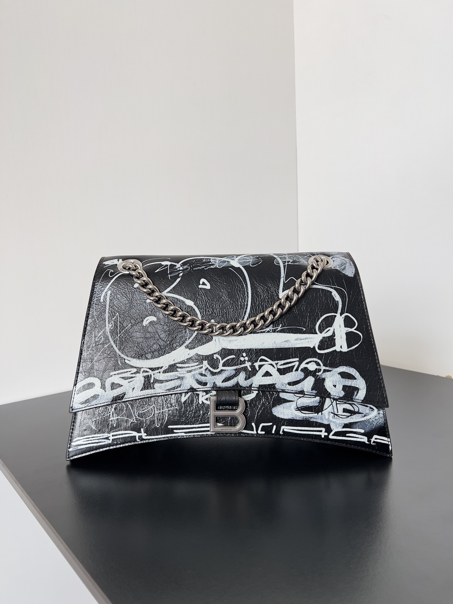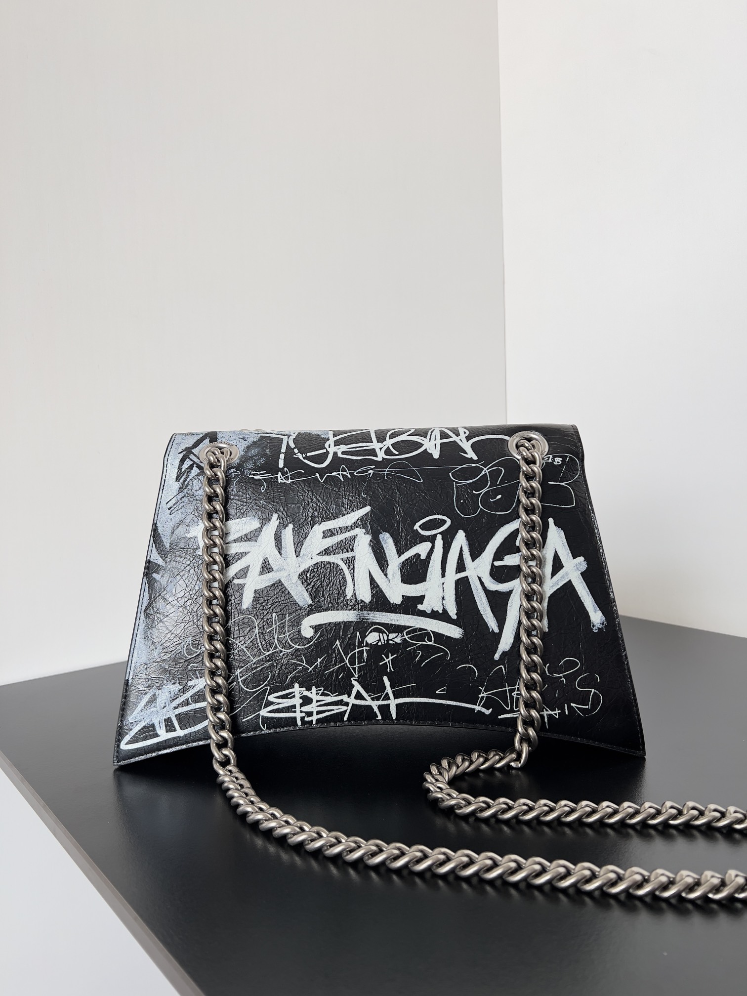 발렌시아가 그래피티 프린트 크러쉬 핸드백