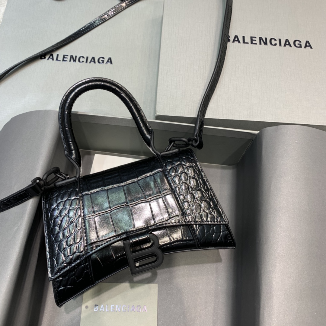 발렌시아가 아워글래스 미니 탑 핸들백 블랙