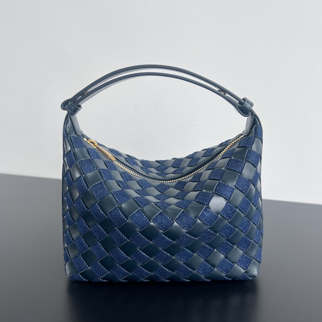 보테가 베네타 인트레치아토 미니 윌리스 숄더백 데님 블루