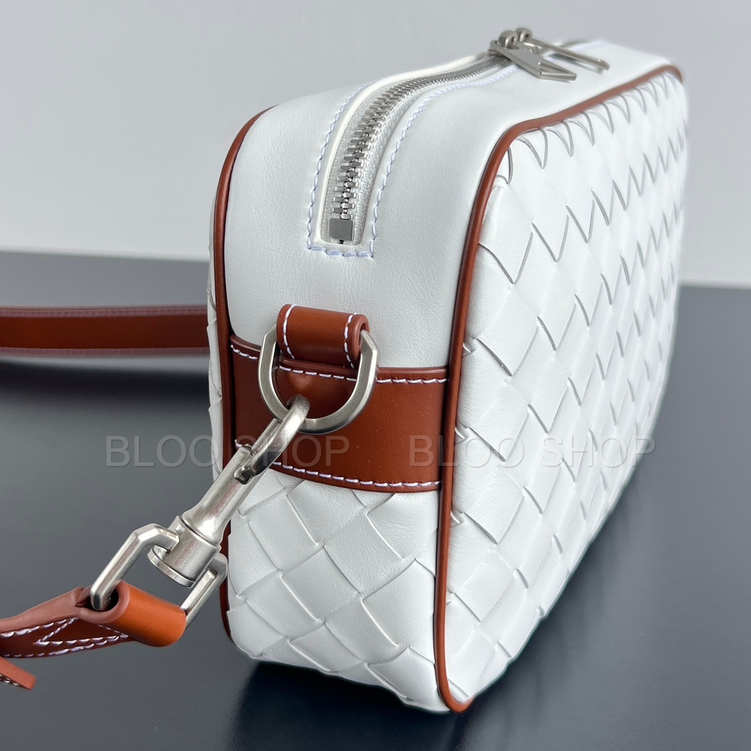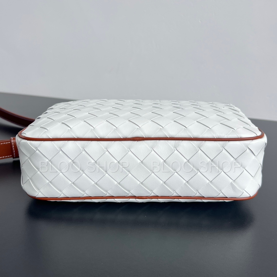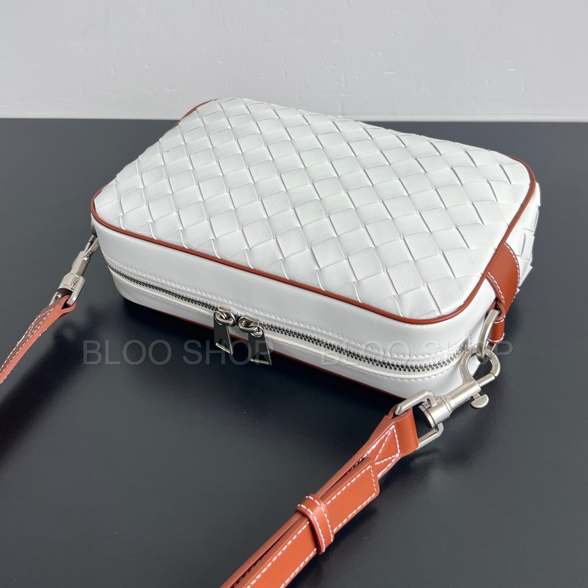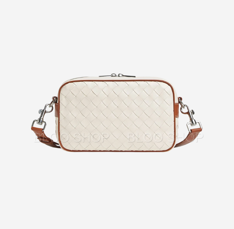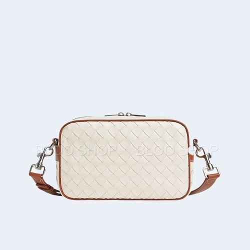보테가 베네타 스몰 인트레치아토 카메라 백 화이트 라이트 우드