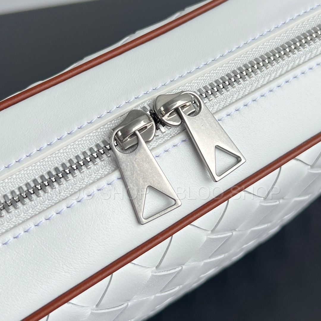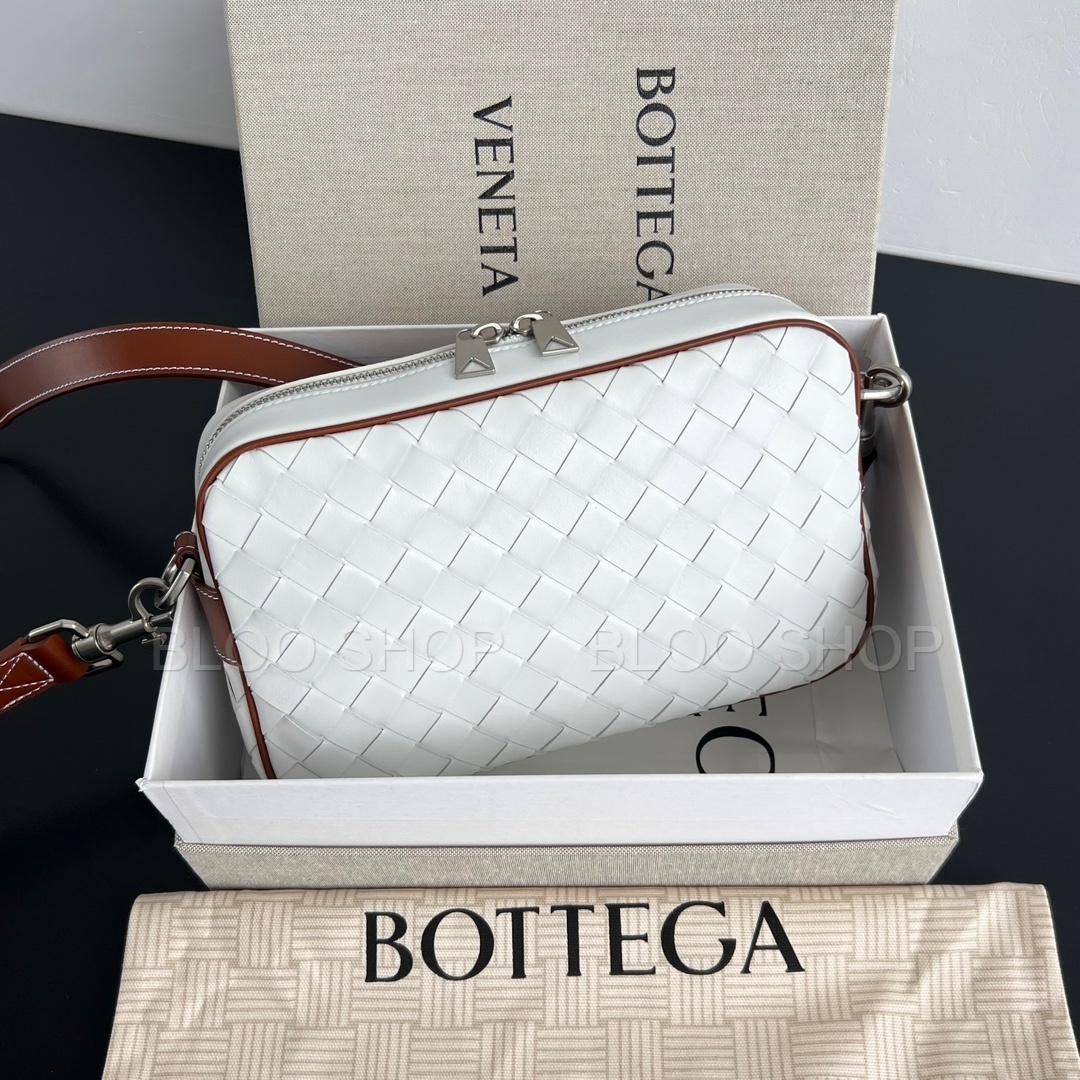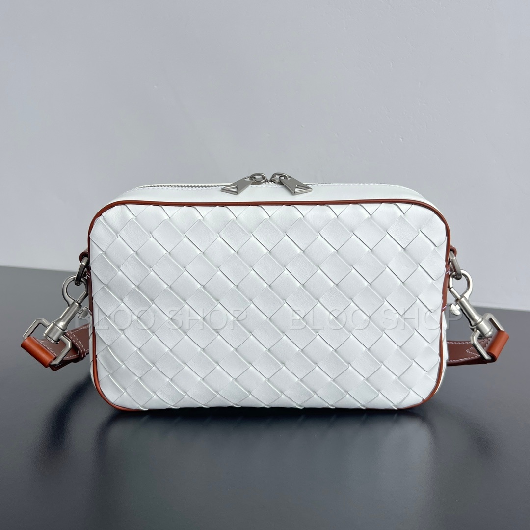 보테가 베네타 스몰 인트레치아토 카메라 백 화이트 라이트 우드