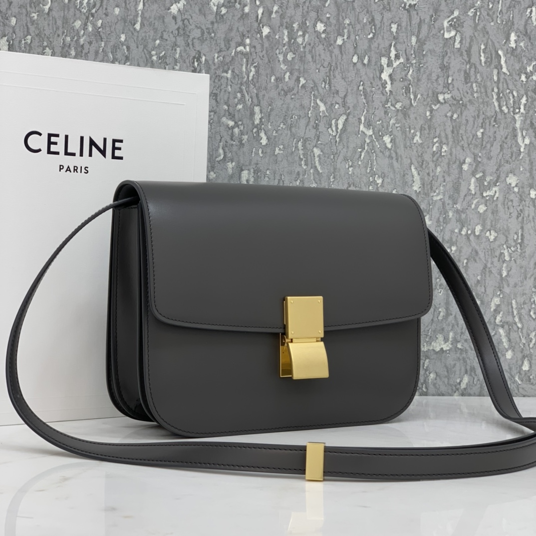 셀린느 클래식 박스 미디움 숄더백 딥그레이