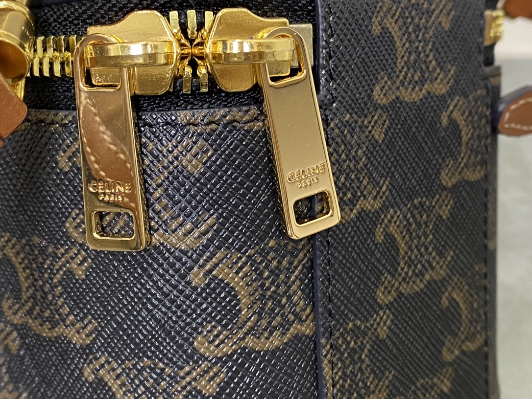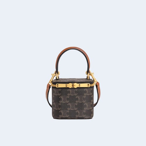 셀린느 트리옹프 캔버스 & 카프스킨 미니 베니티 케이스 탄