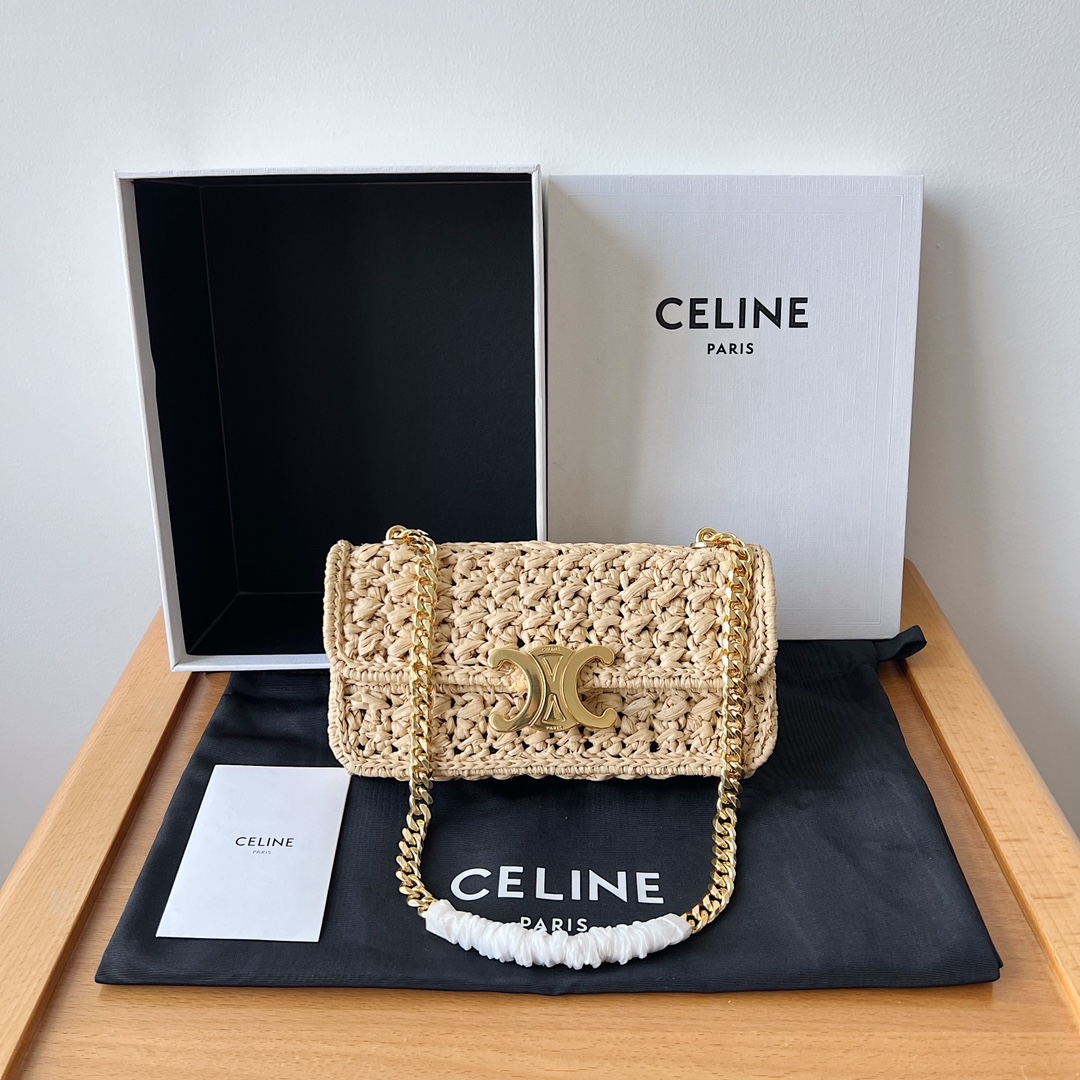 셀린느 체인 숄더백 클로드 라피아 내추럴