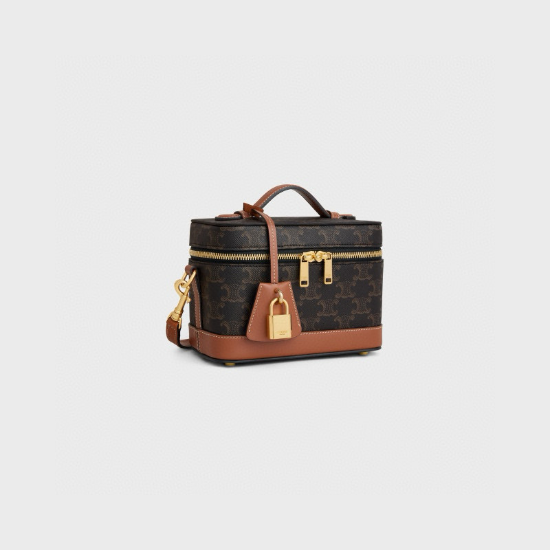 셀린느 베니티 클레아 백 트리옹프 캔버스 카프스킨 탄