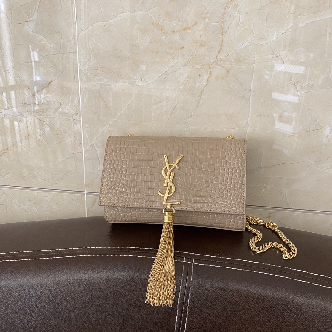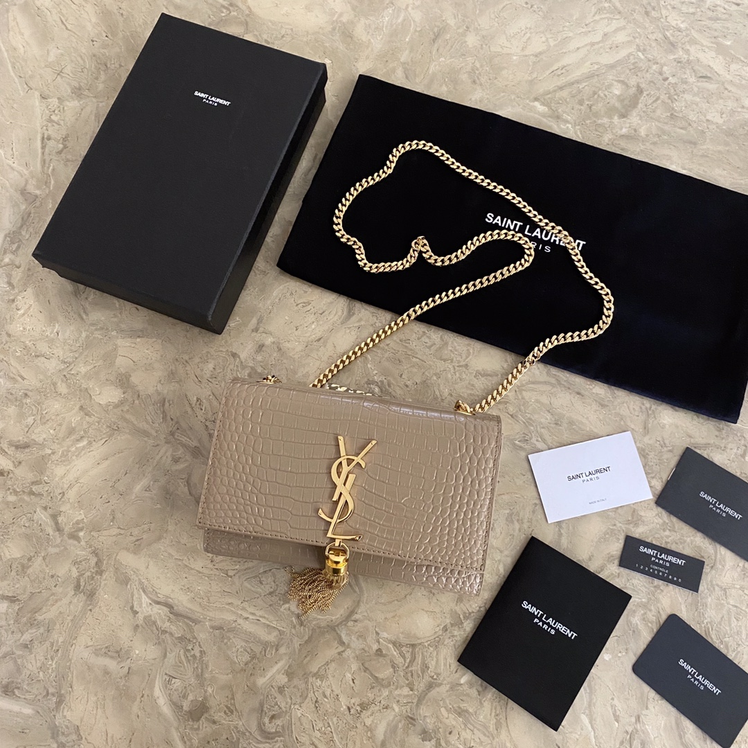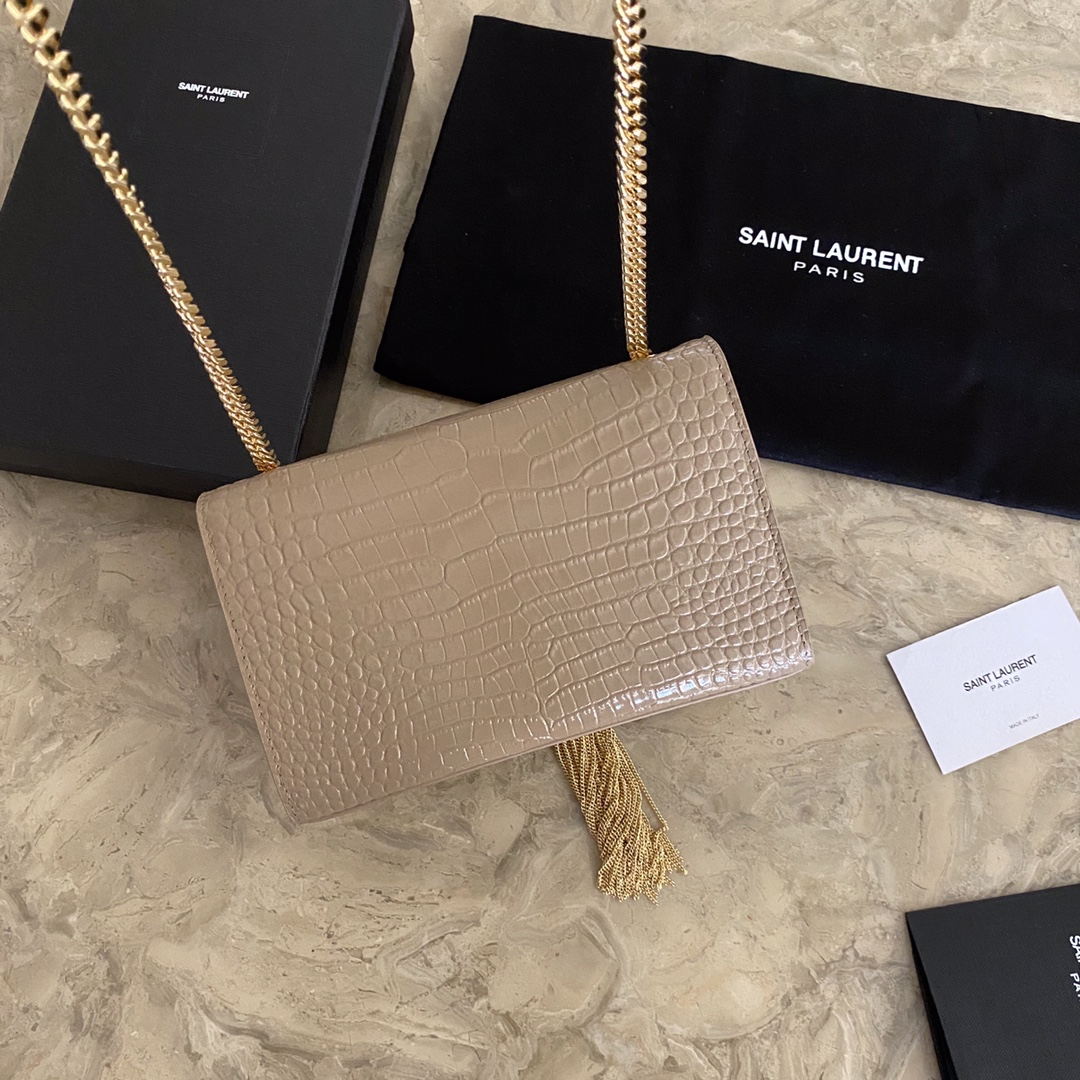 생로랑 크로커다일 케이트 스몰 태슬백 베이지 골드
