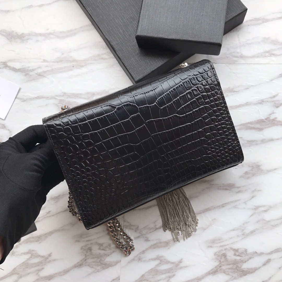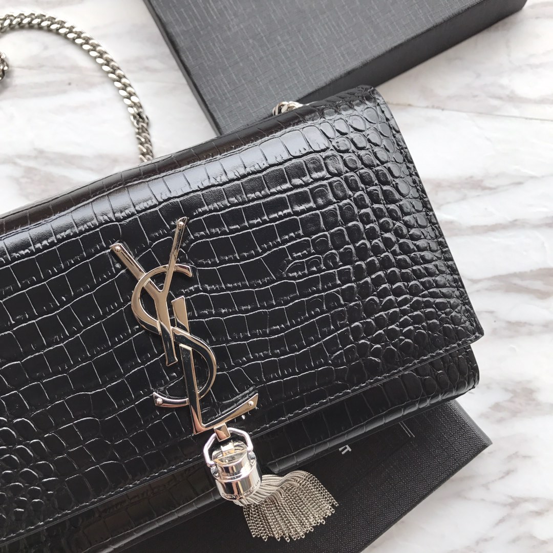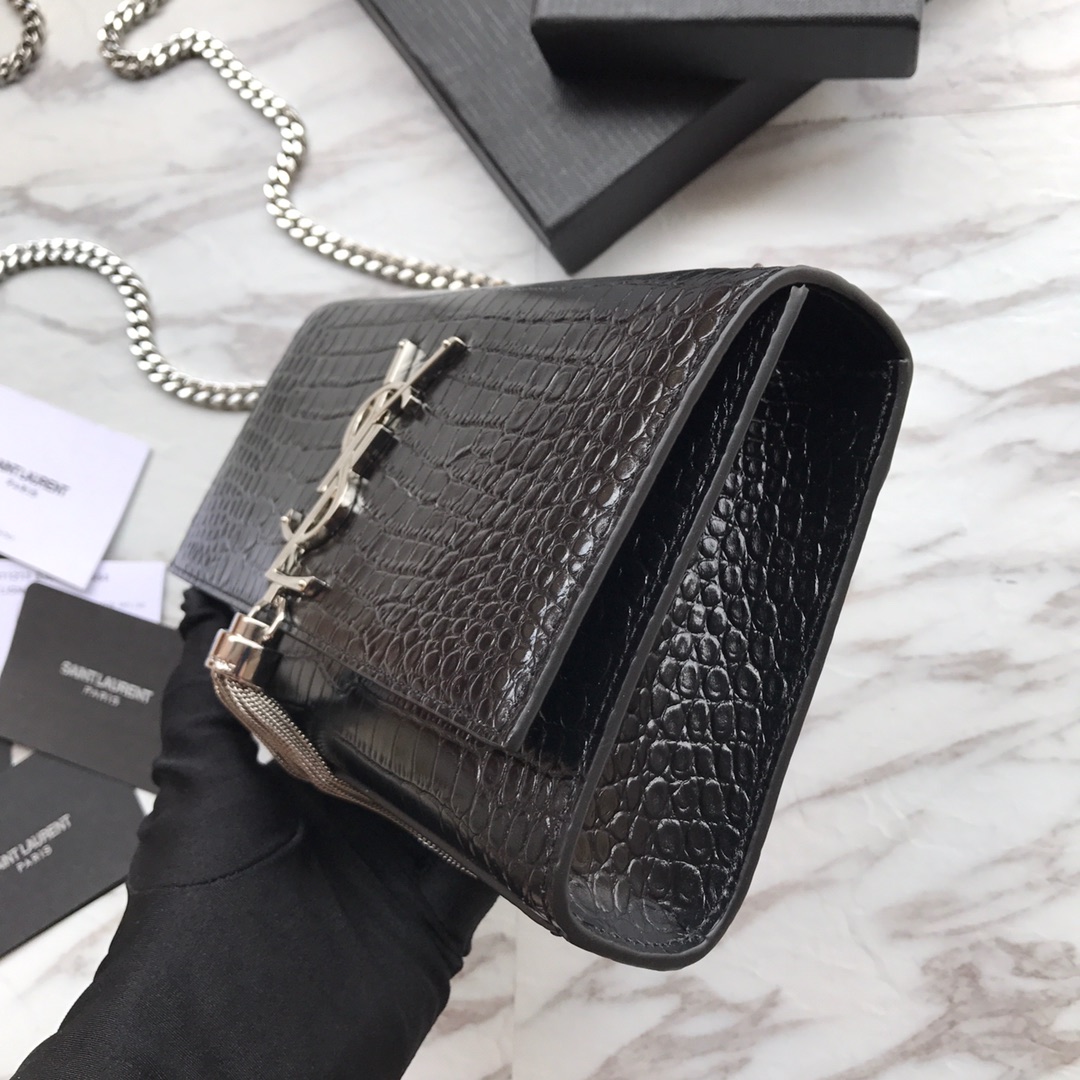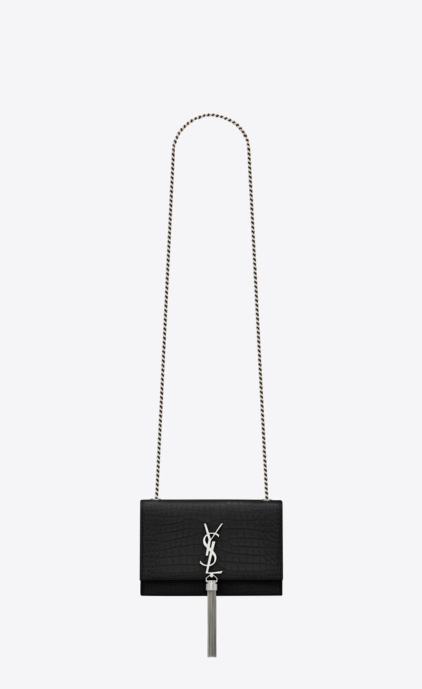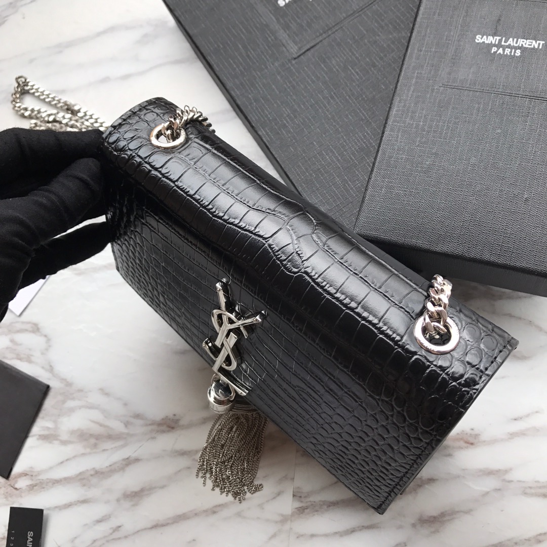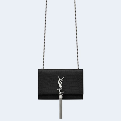 생로랑 크로커다일 케이트 스몰 태슬백 블랙 실버
