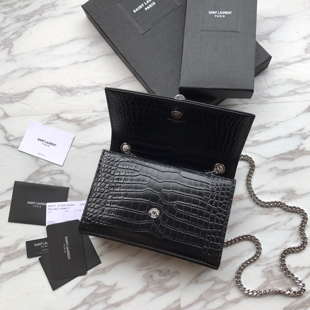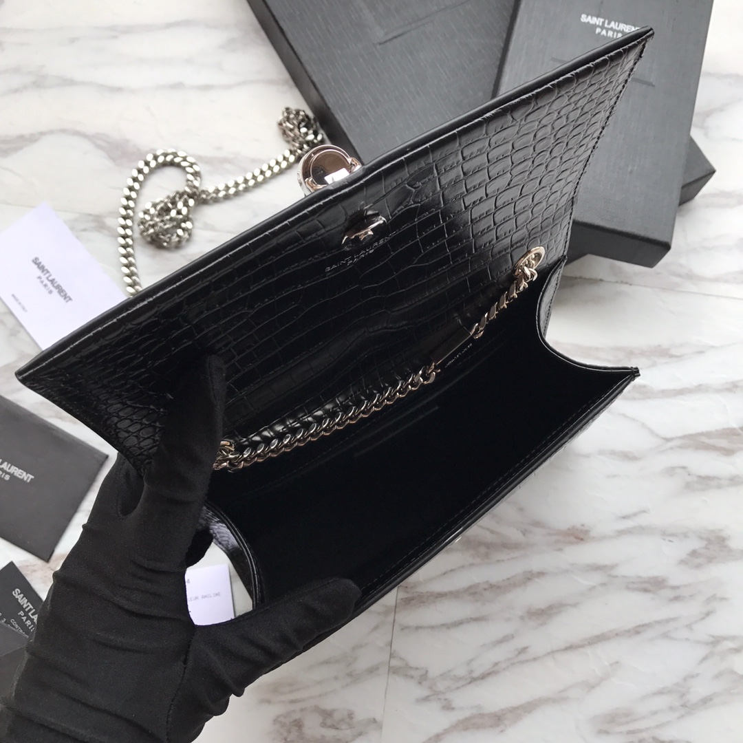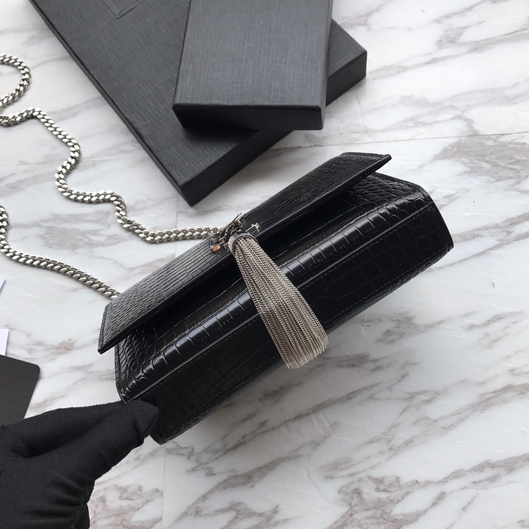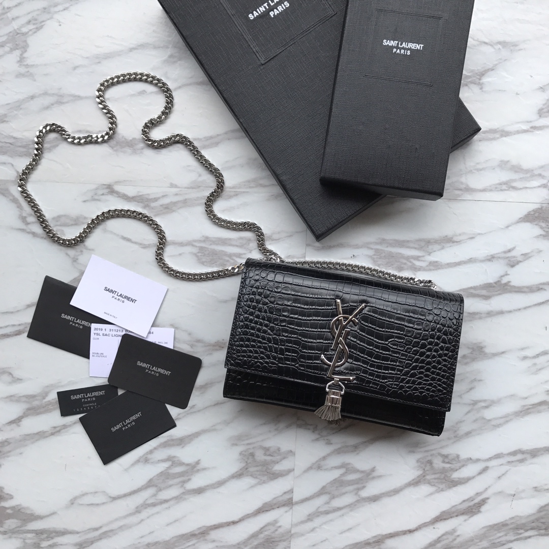 생로랑 크로커다일 케이트 스몰 태슬백 블랙 실버