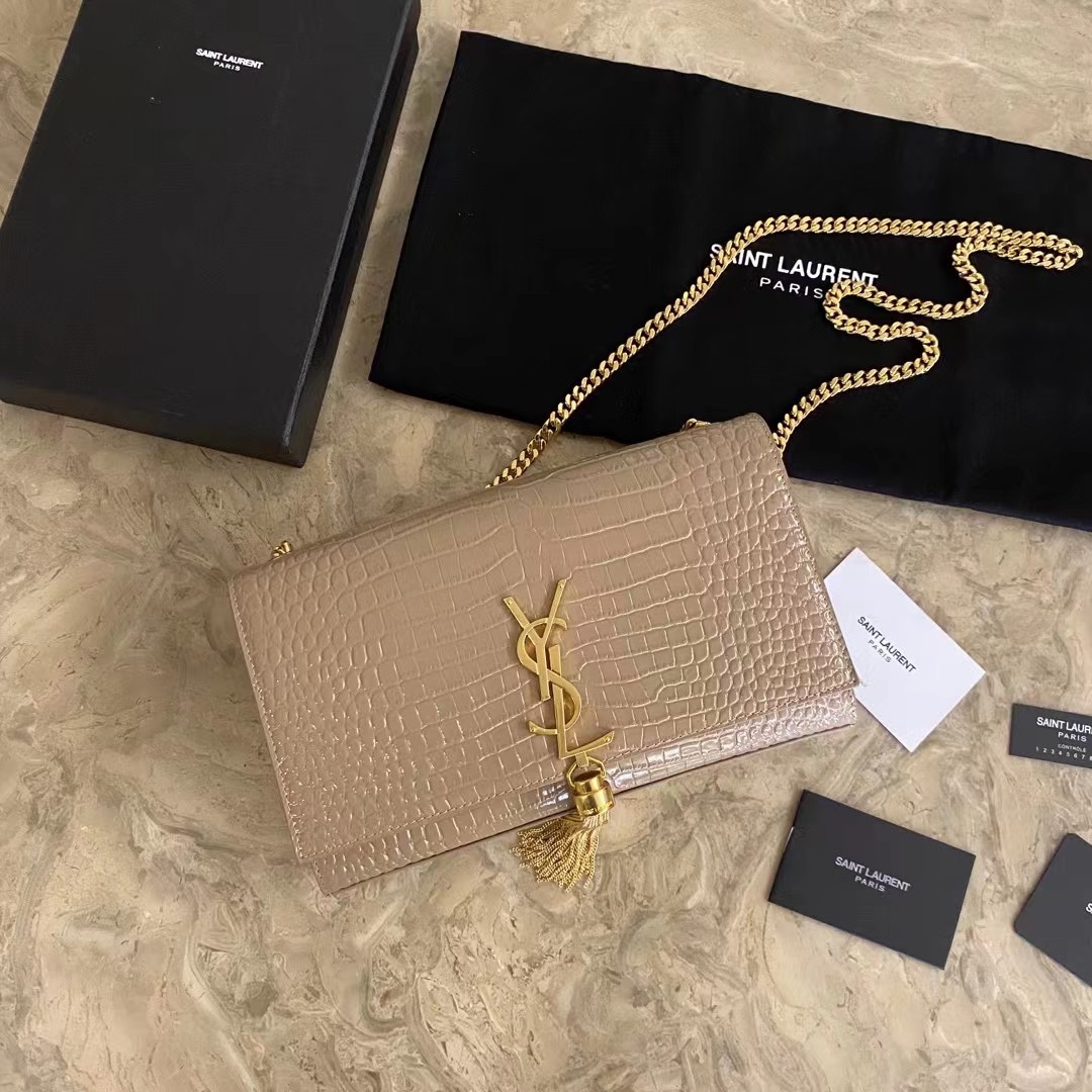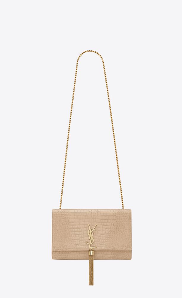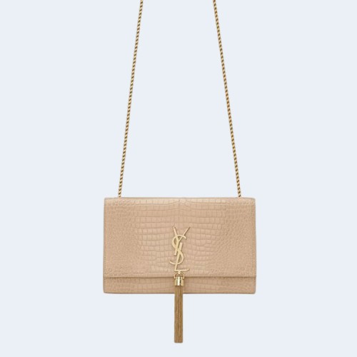 생로랑 크로커다일 케이트 미디엄 태슬 백 베이지