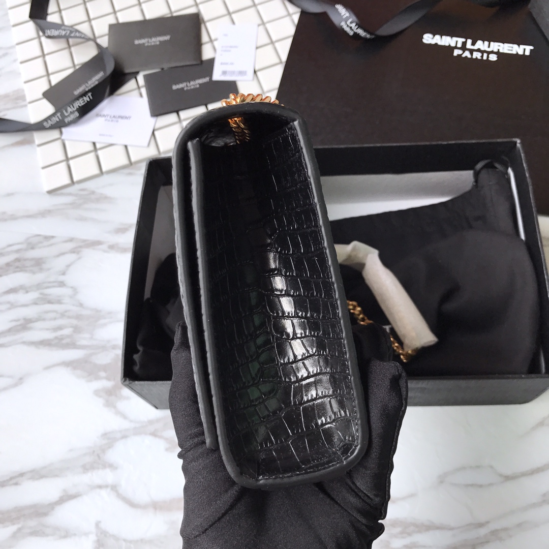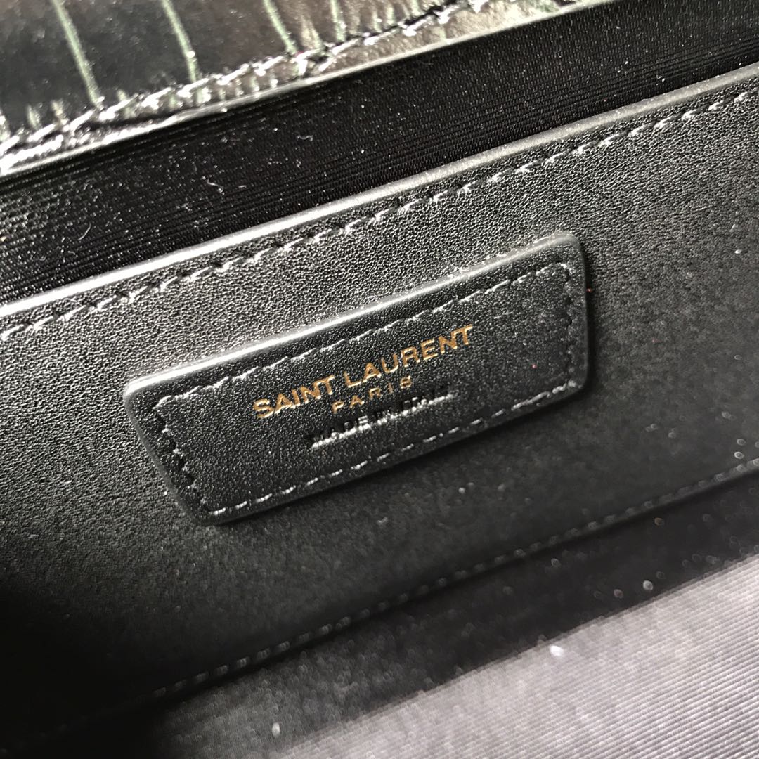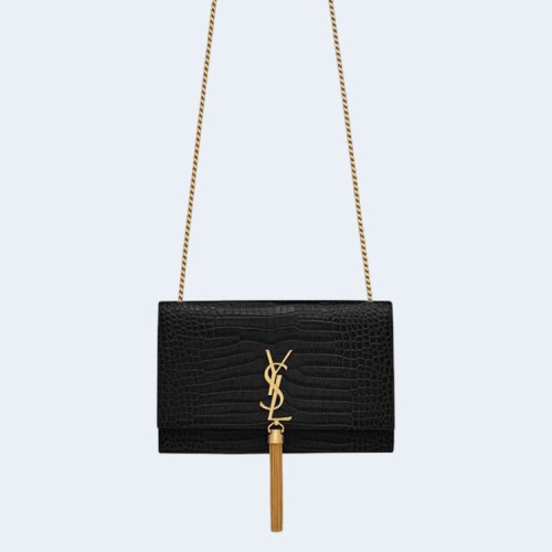생로랑 크로커다일 케이트 미디엄 태슬 백 블랙 골드