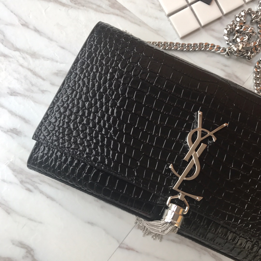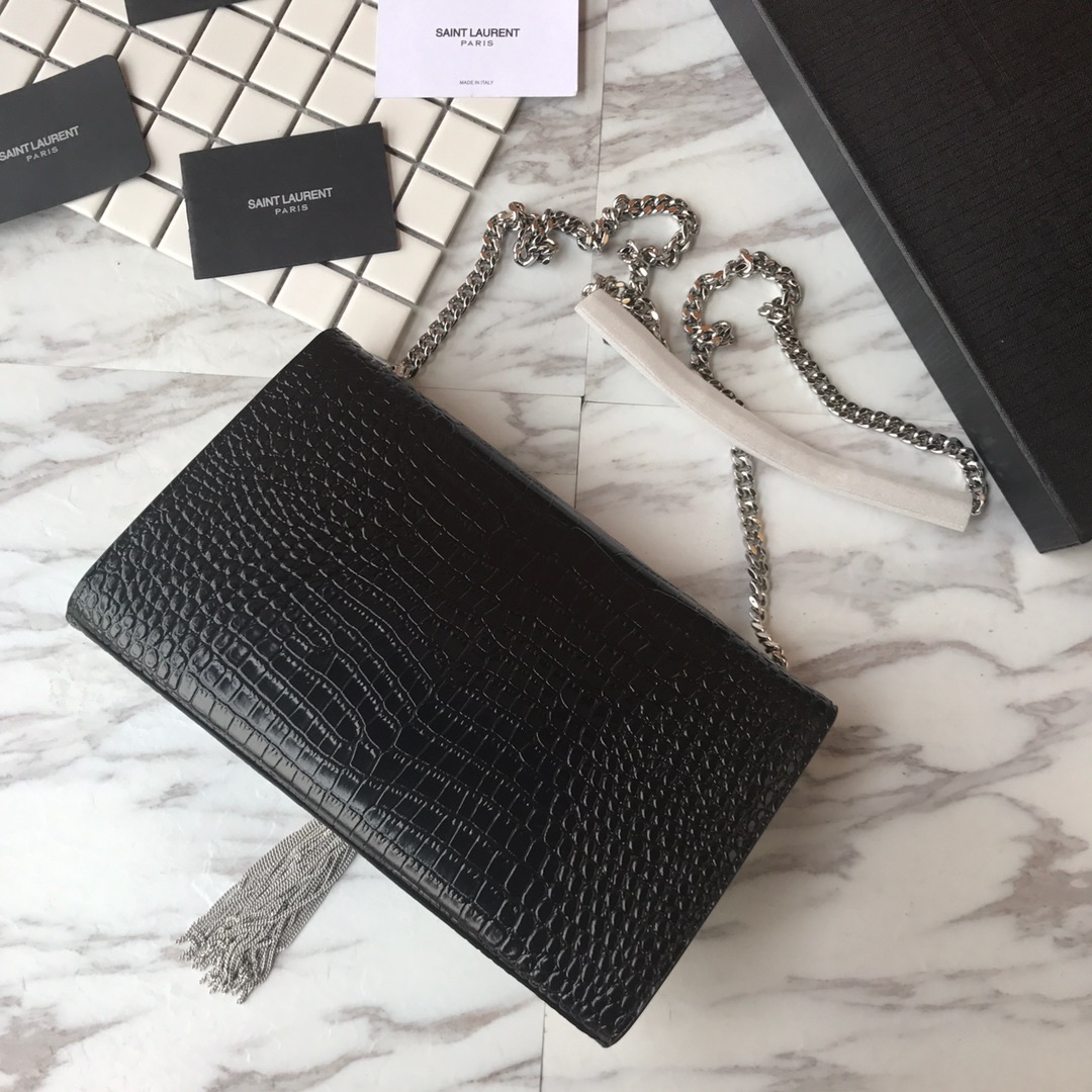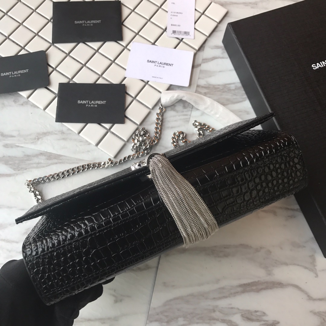 생로랑 크로커다일 케이트 미디엄 태슬 백 블랙 실버