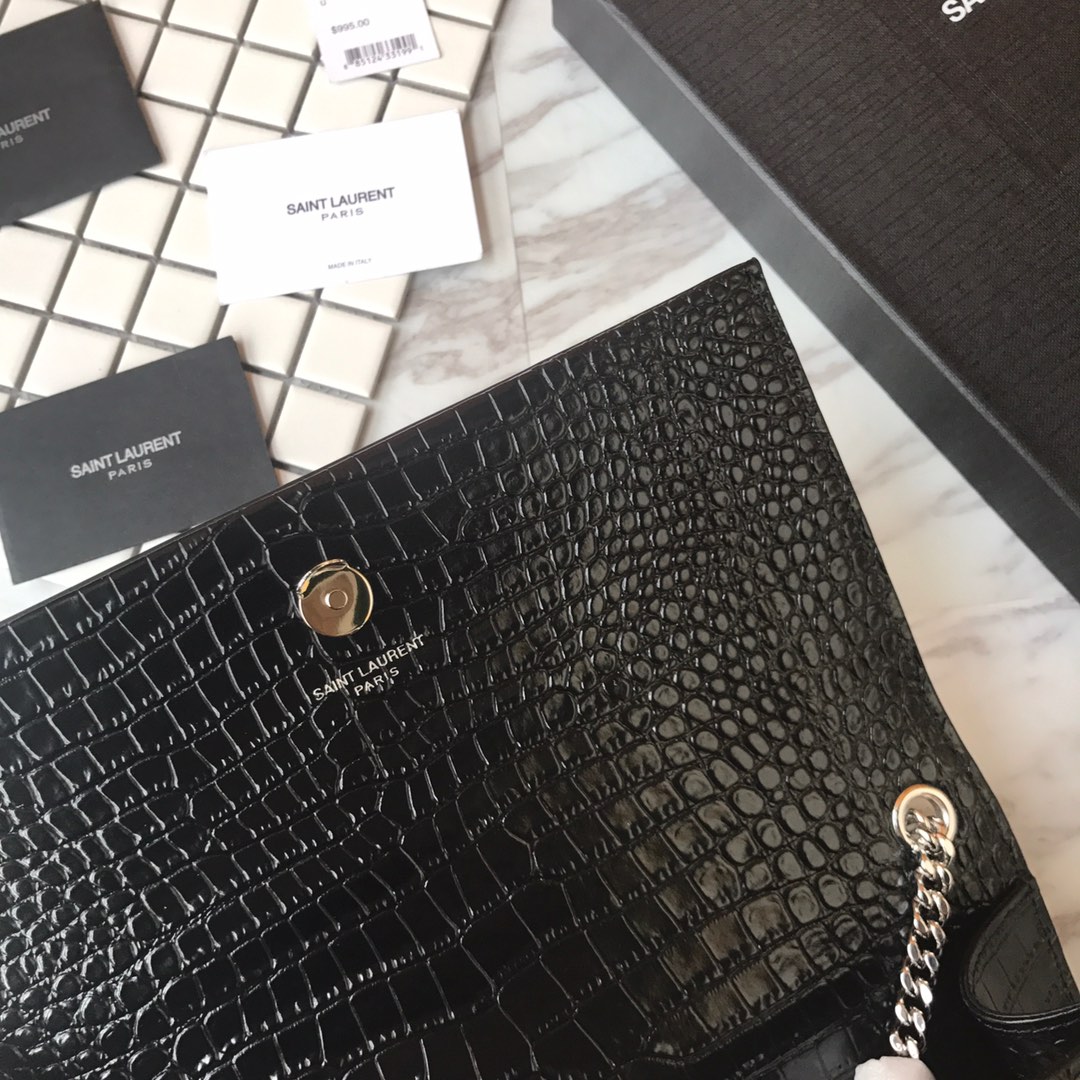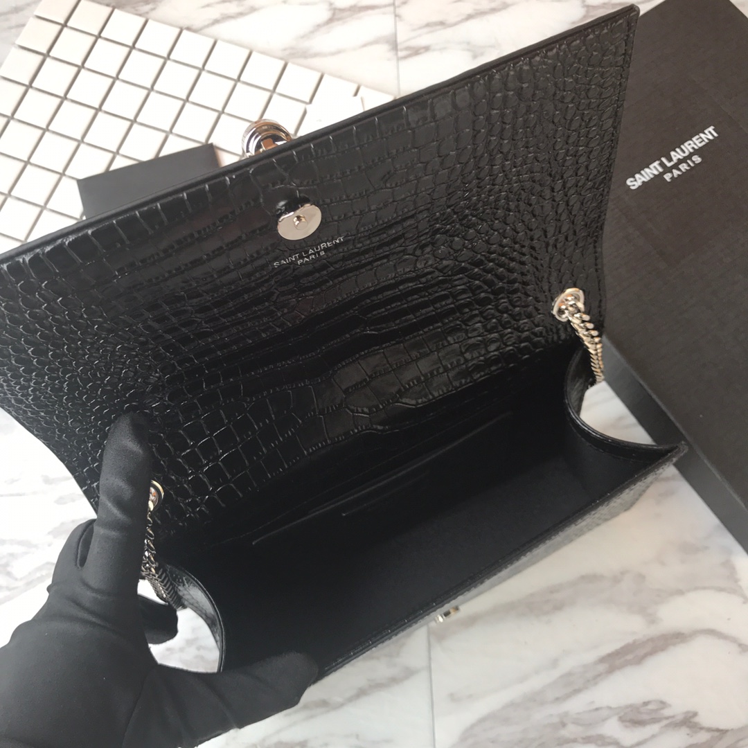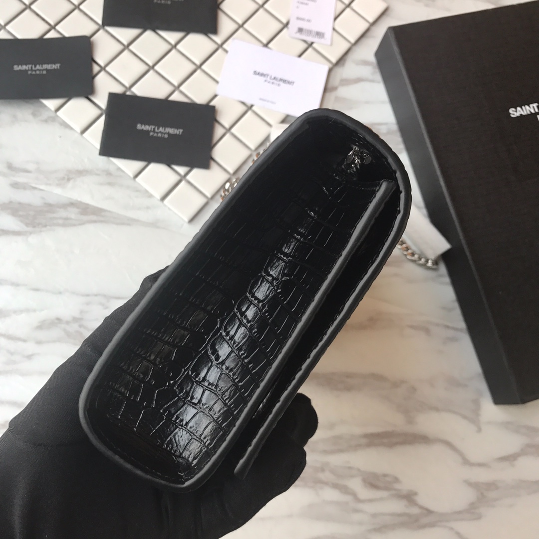 생로랑 크로커다일 케이트 미디엄 태슬 백 블랙 실버