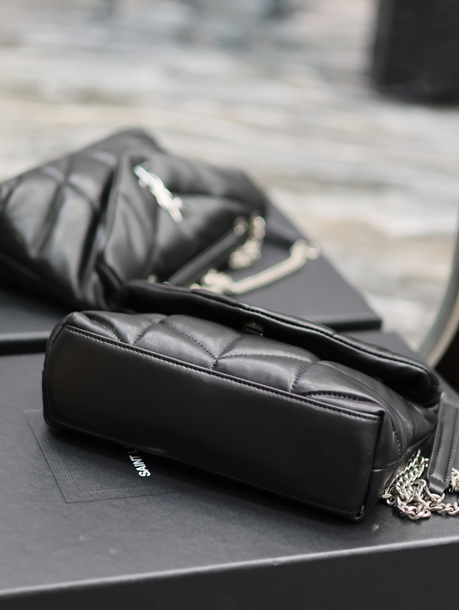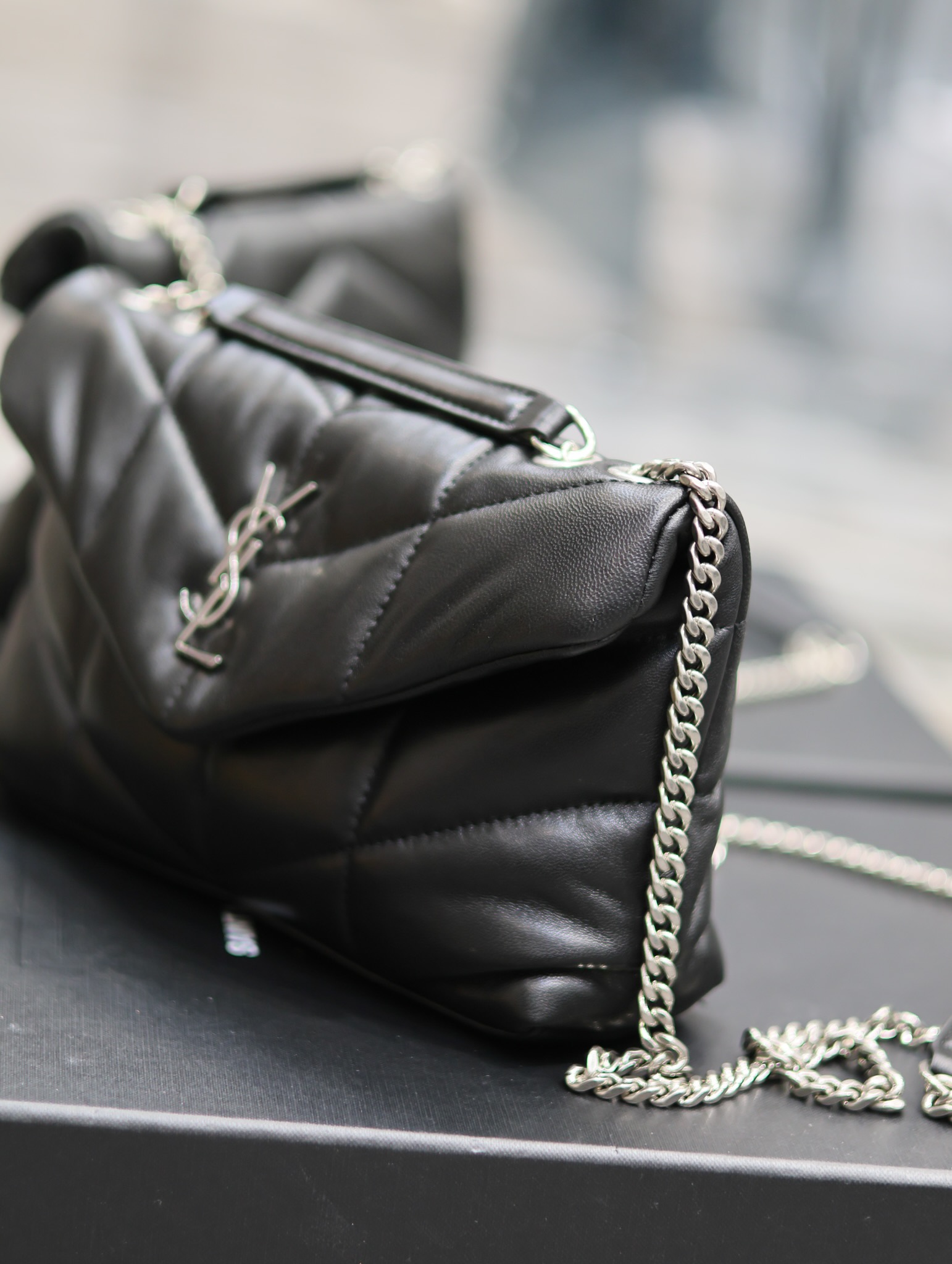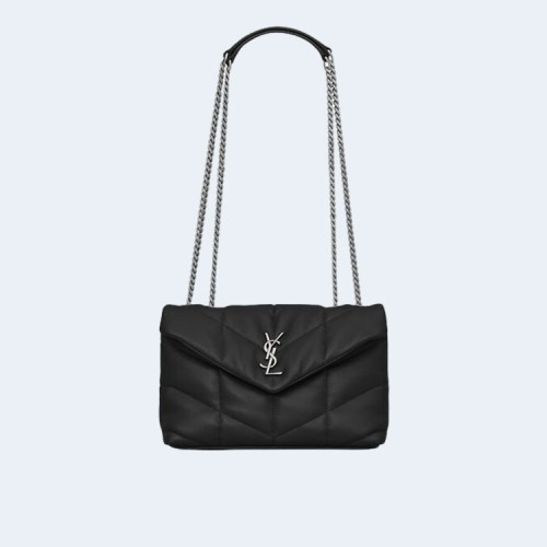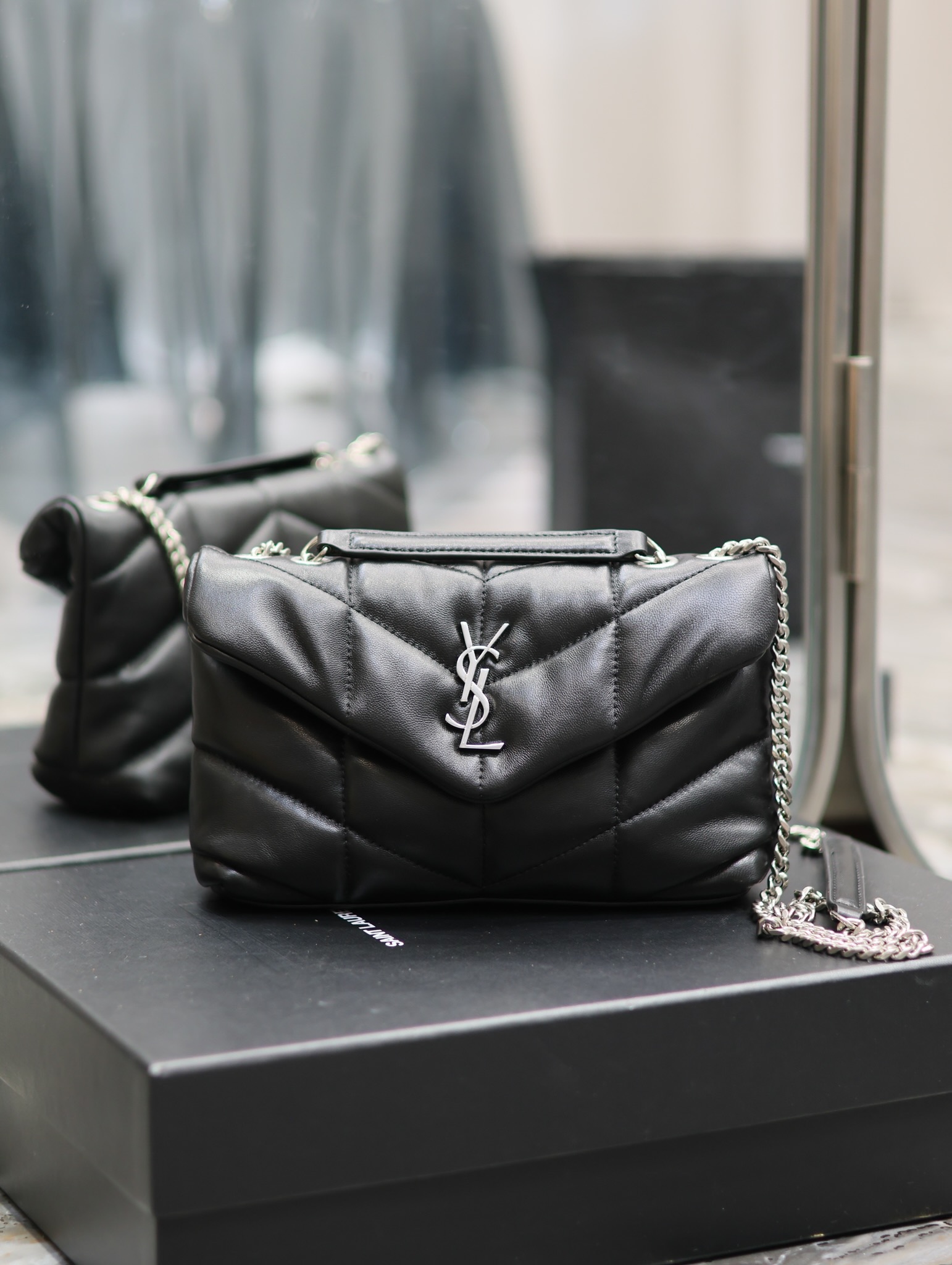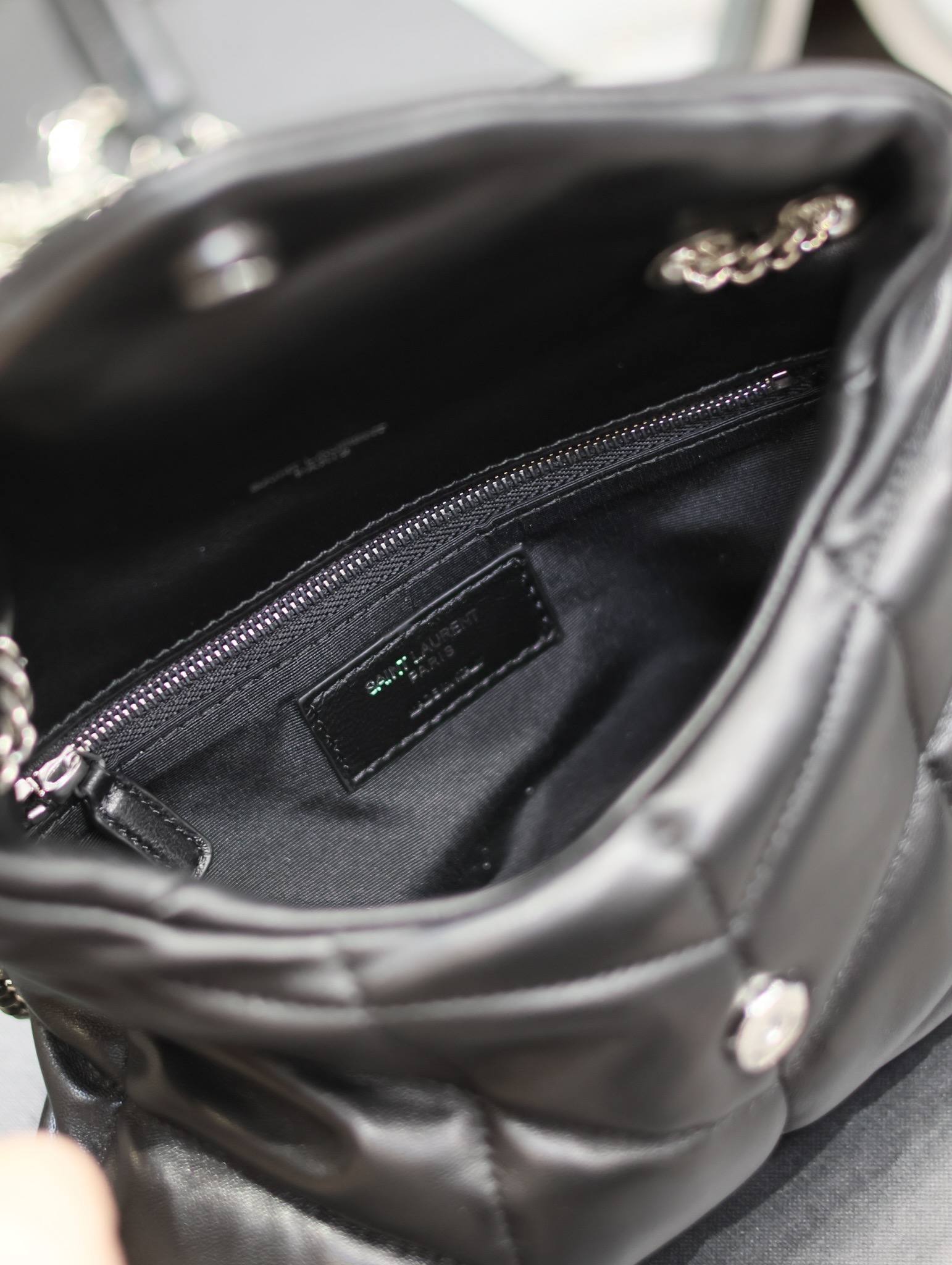 생로랑 퀄티드 PUFFER 토이 백 블랙 실버