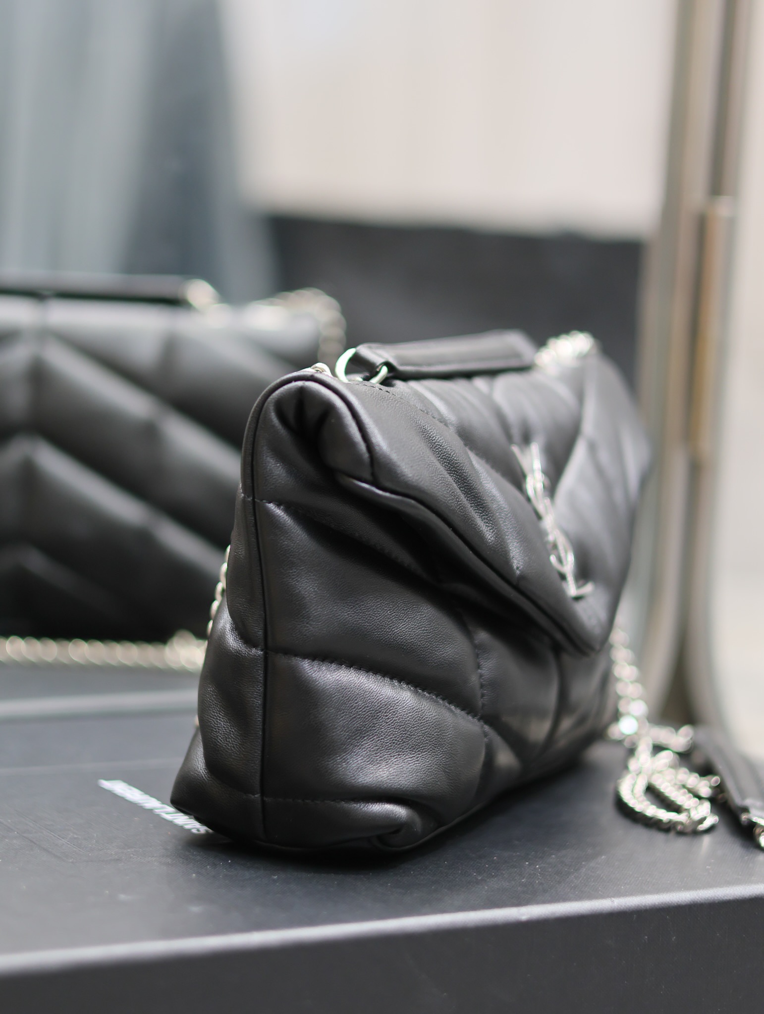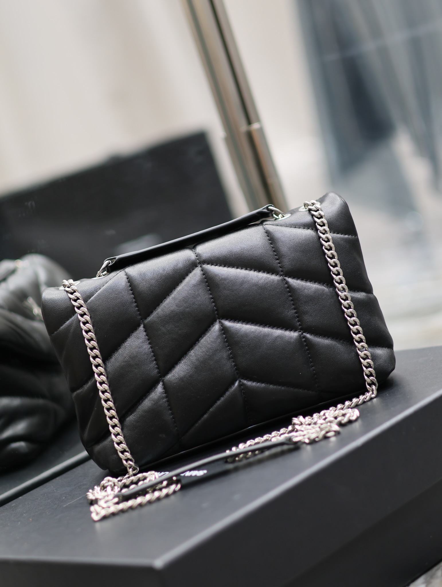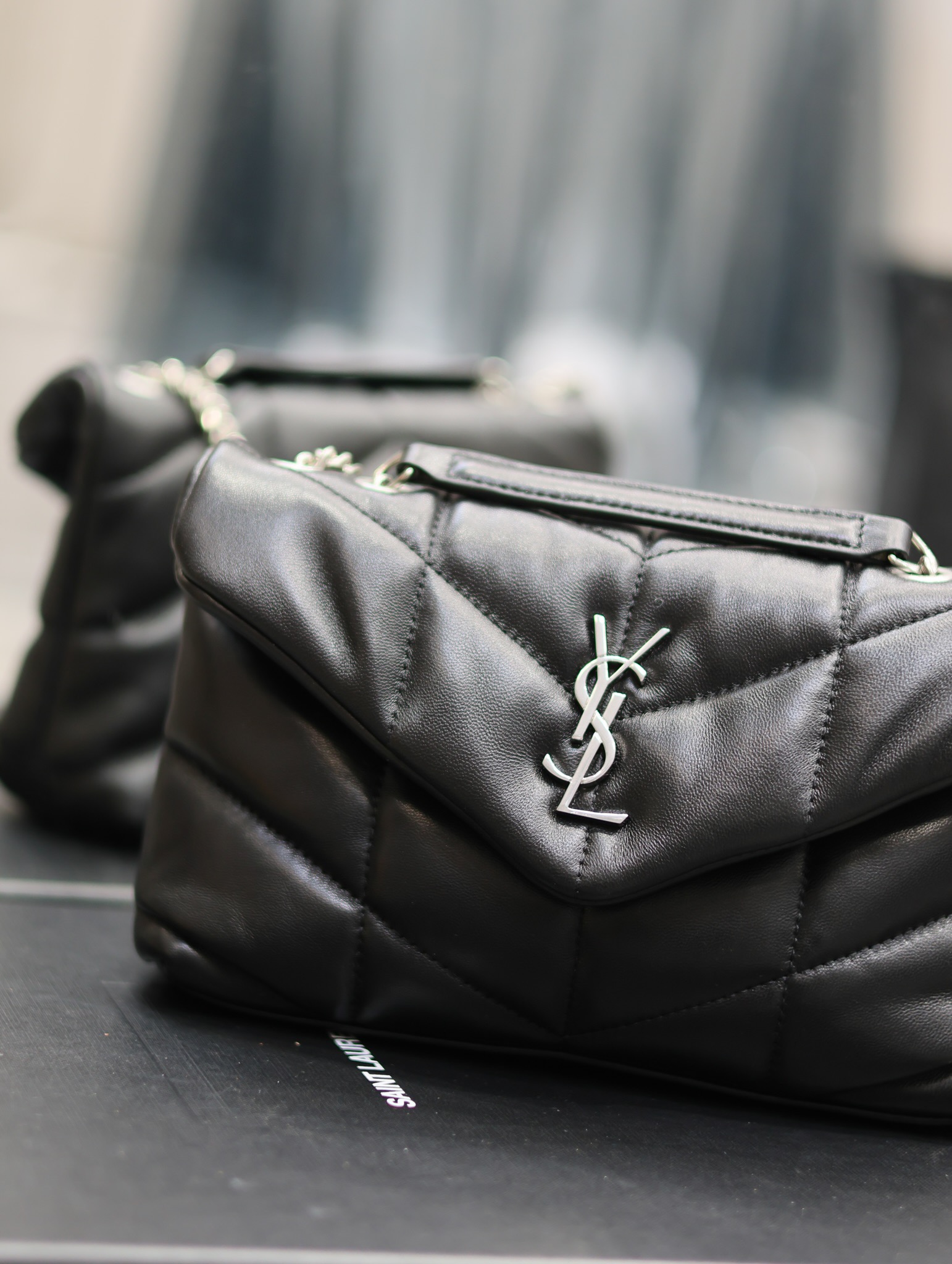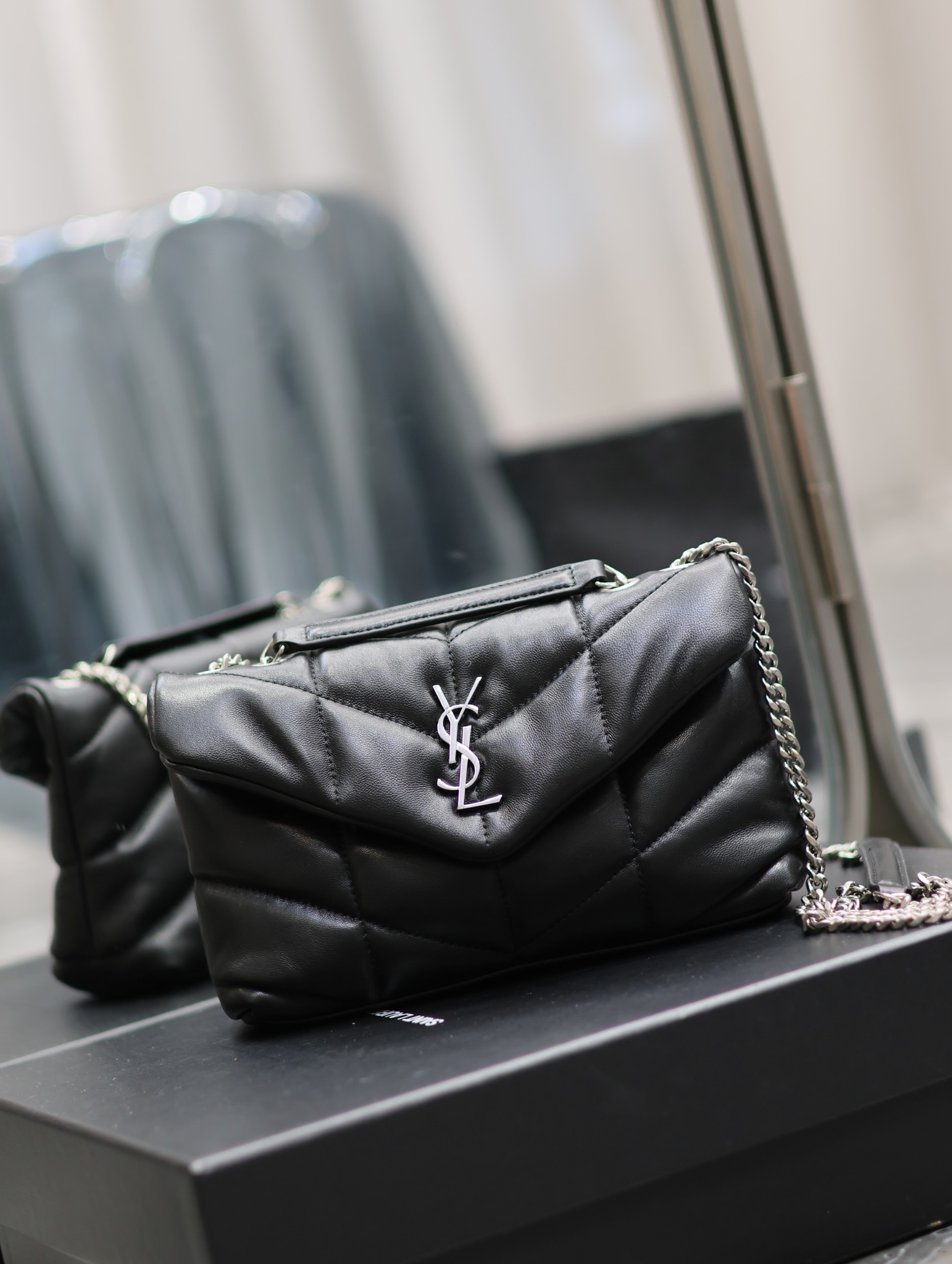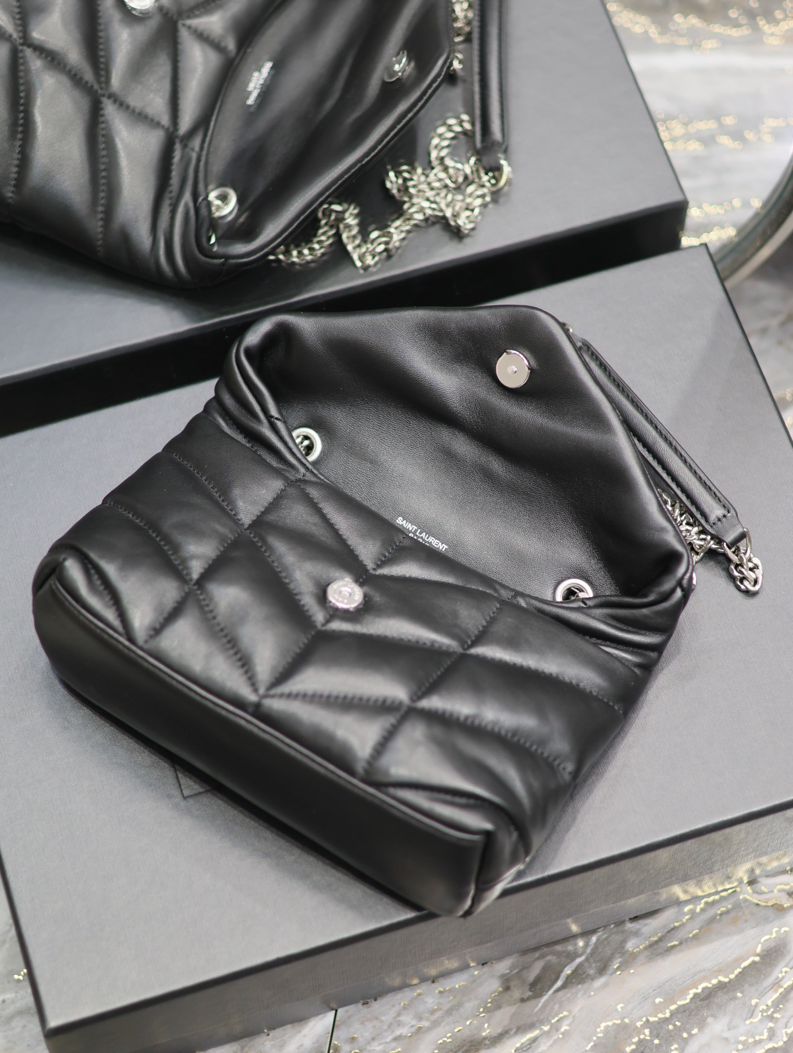 생로랑 퀄티드 PUFFER 토이 백 블랙 실버