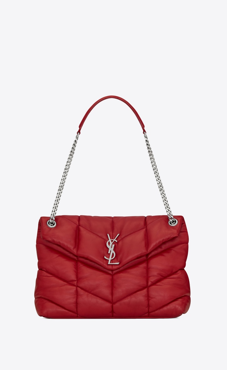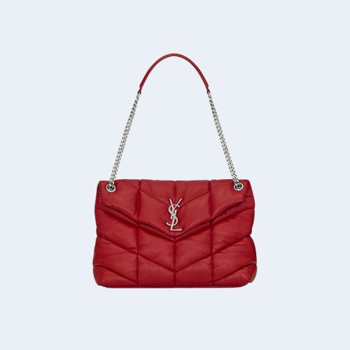 생로랑 PUFFER 레더 숄더백 레드 실버