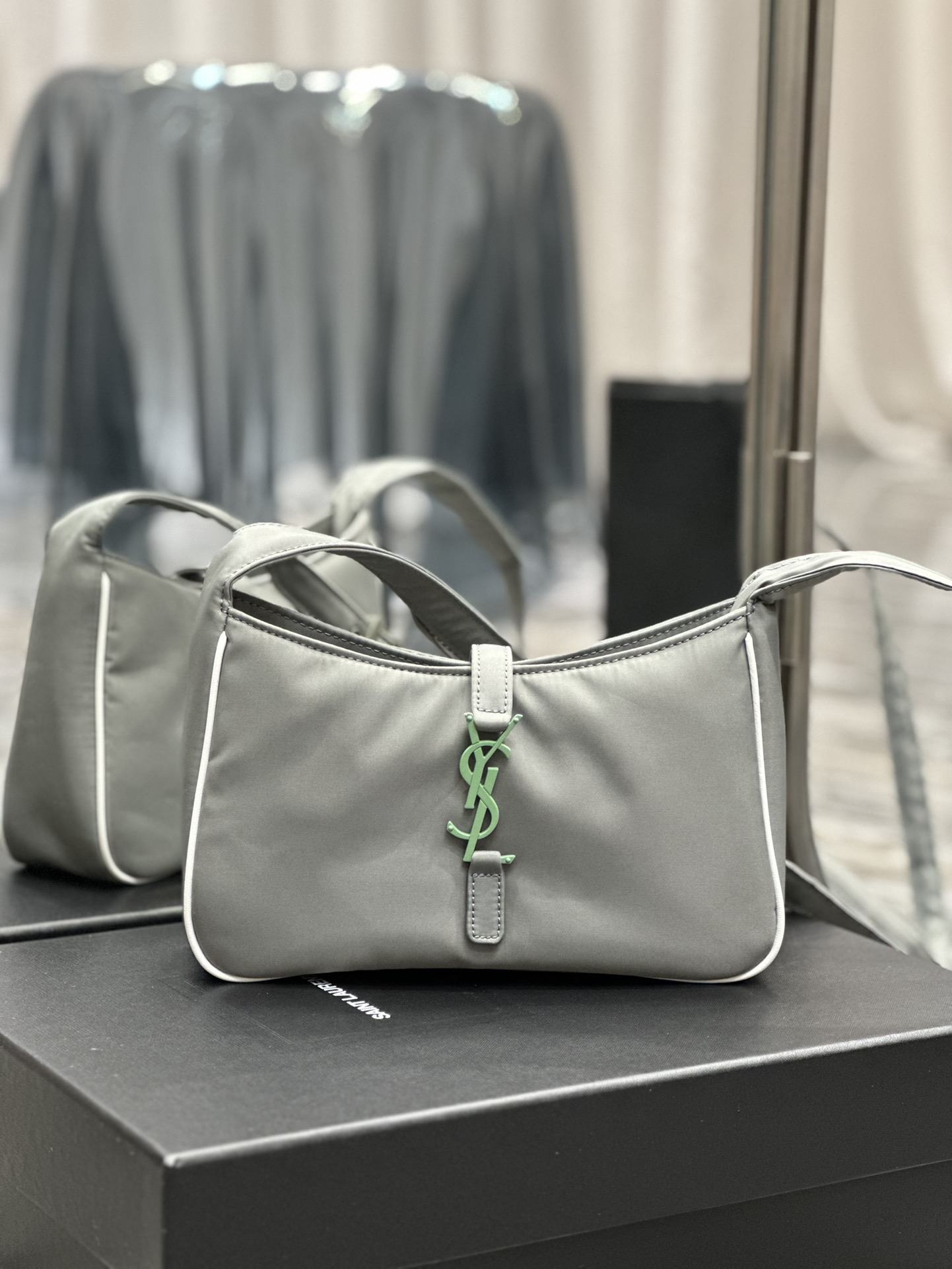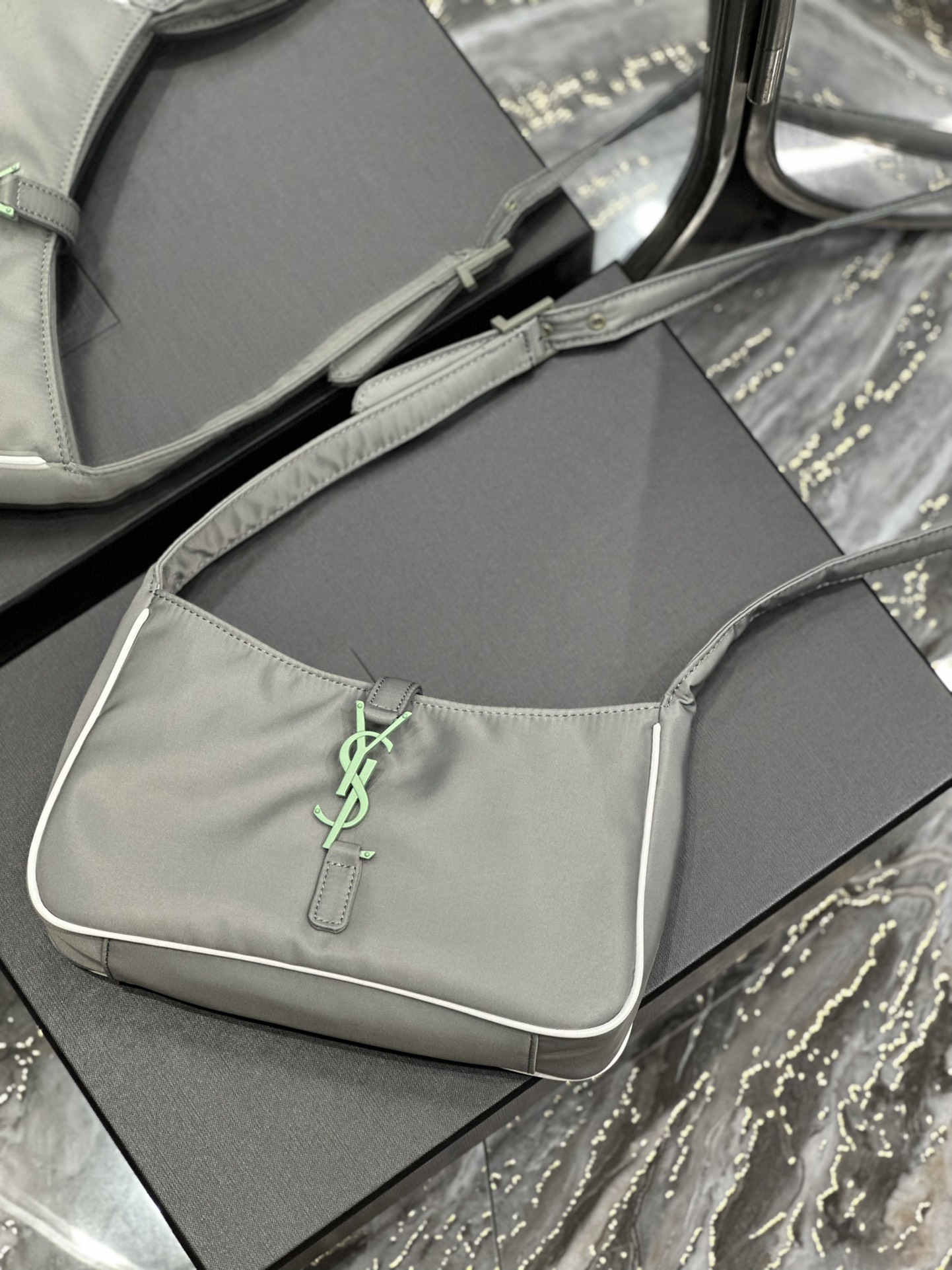 생로랑 LE 5 A 7 에코닐 크로스백 그레이 그린