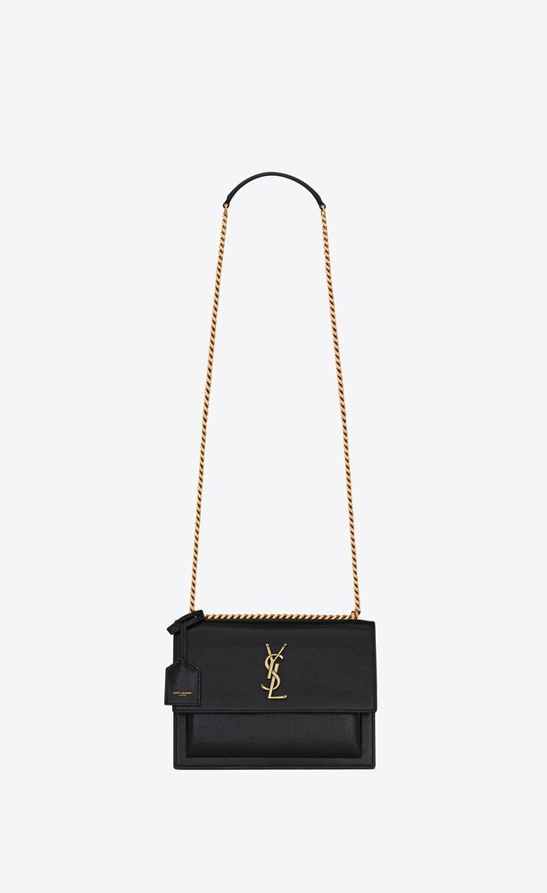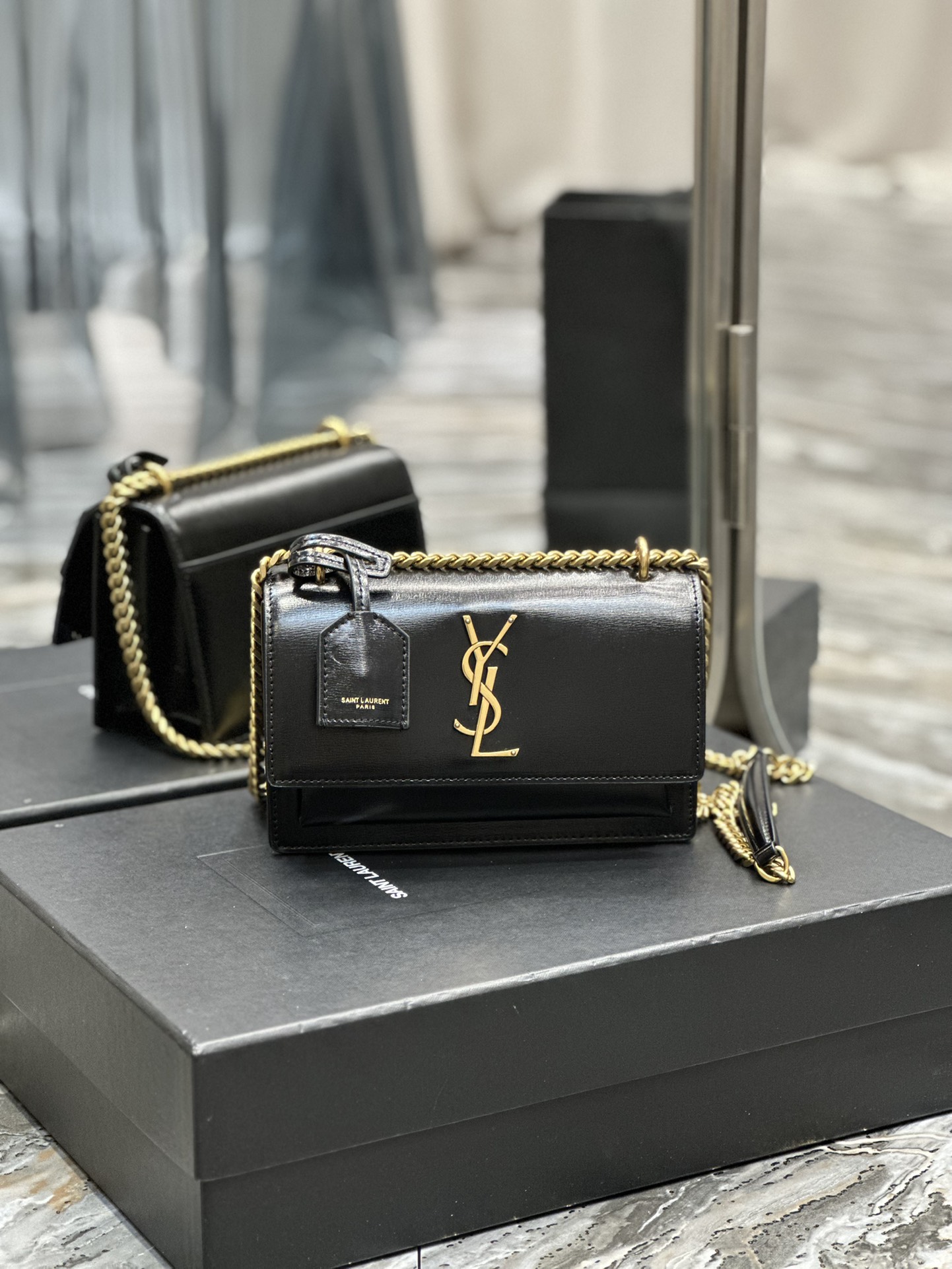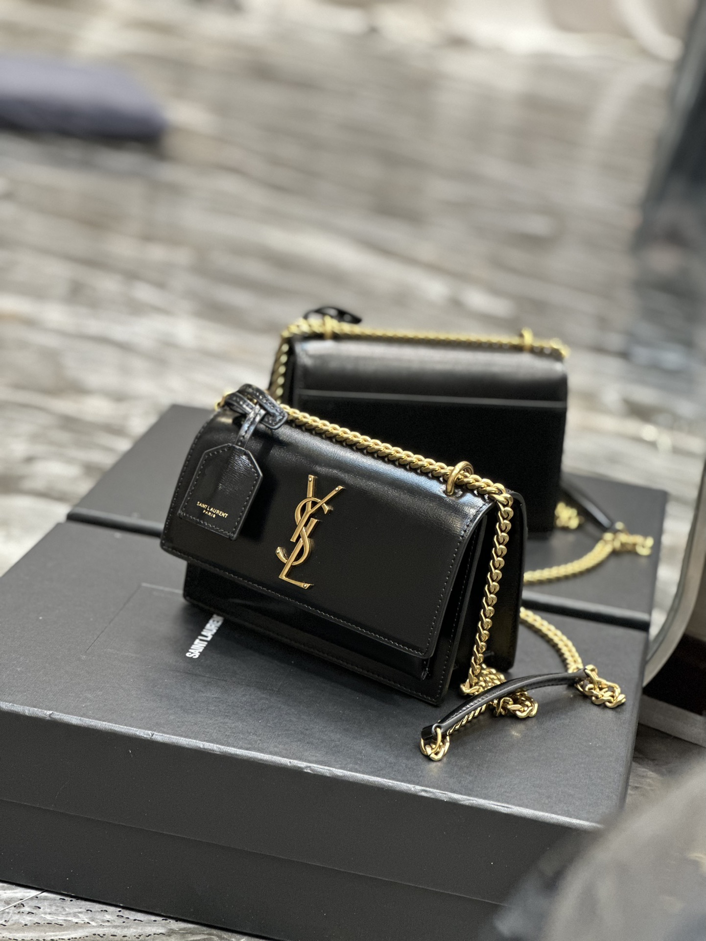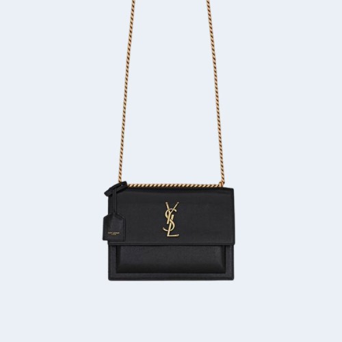 생로랑 브러쉬드 SUNSET 스몰백 블랙 골드