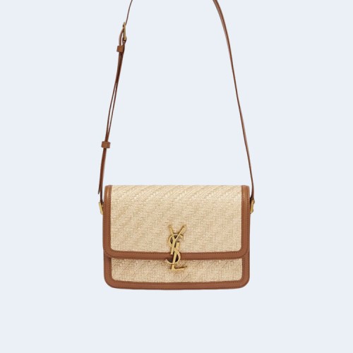 생로랑 솔페리노 로고 라피아 스몰 숄더백