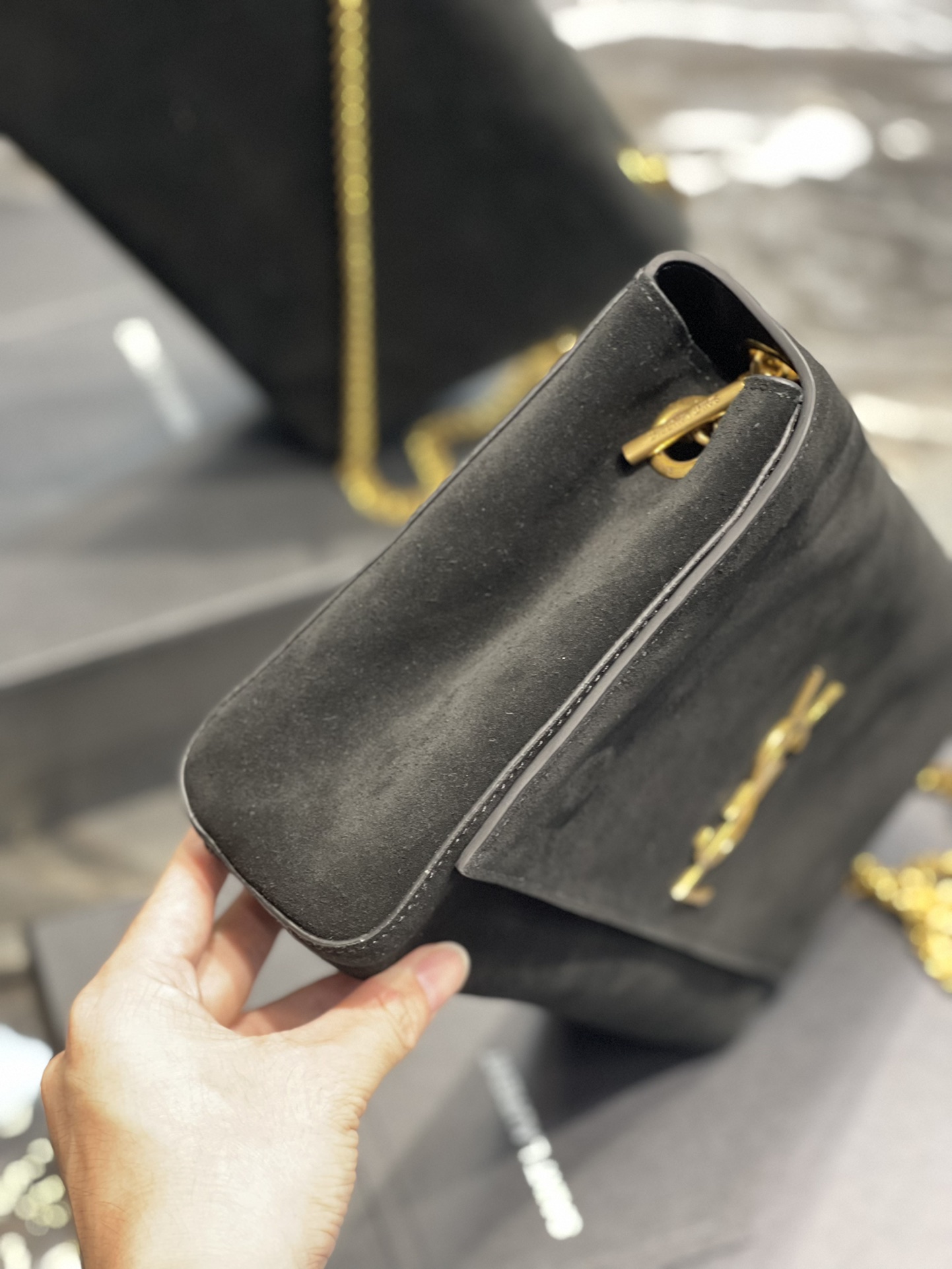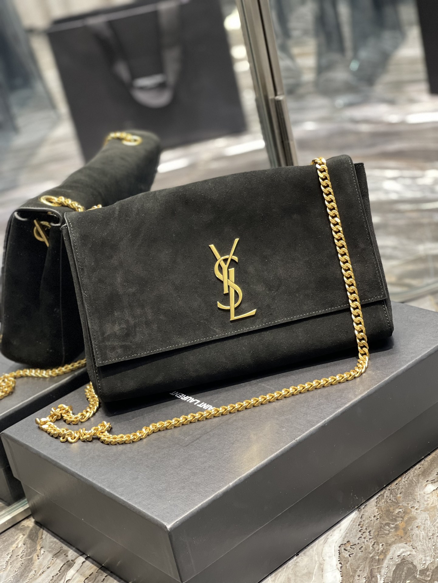 생로랑 미디움 스웨이드 리버서블 양면 케이트 백 블랙