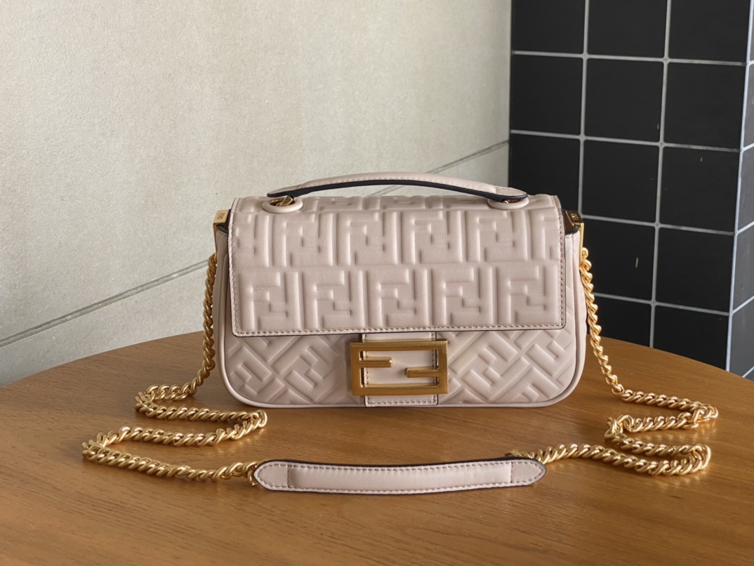 펜디 바게트 미디엄 체인 백 베이지